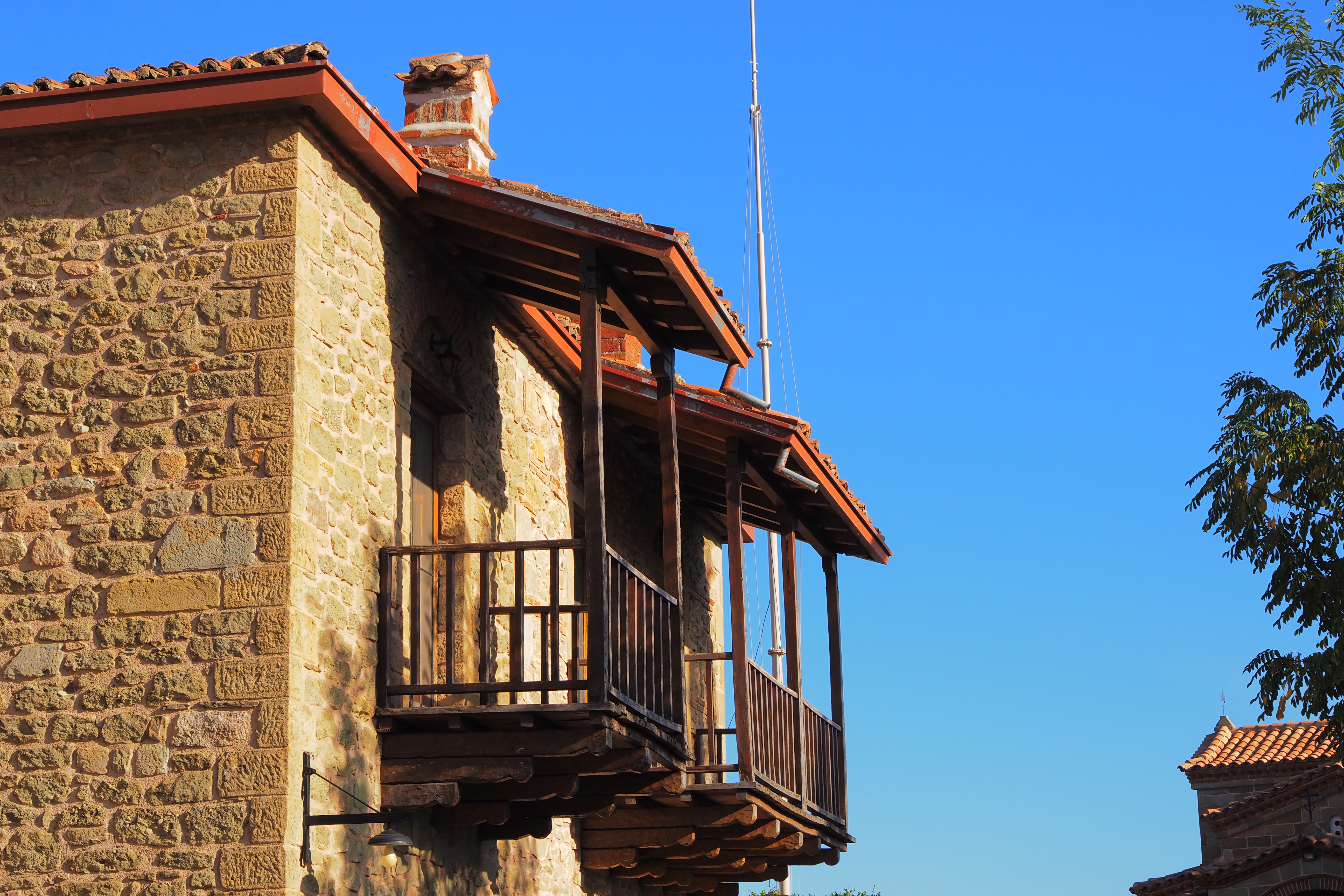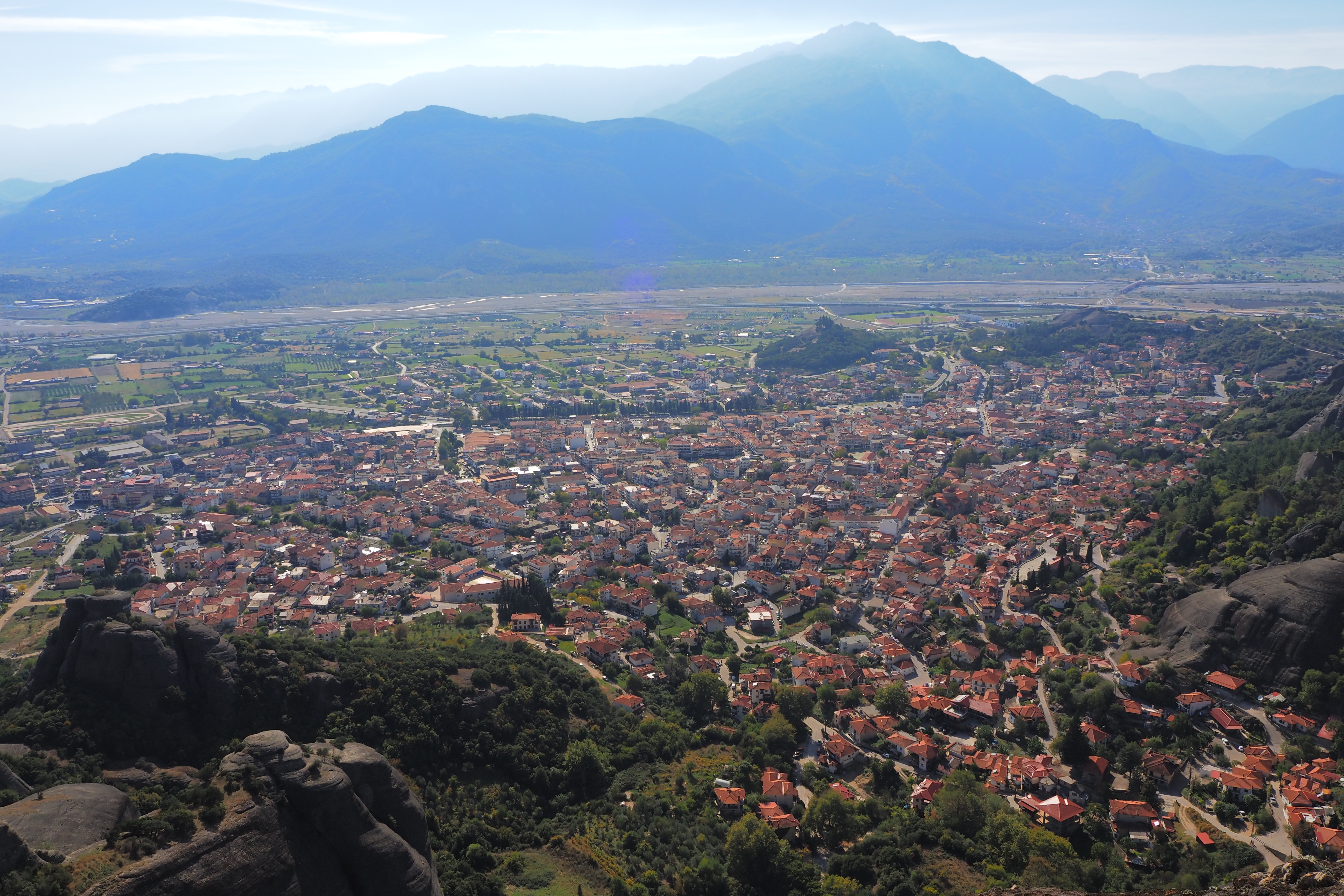 修道院の南西側に突き出したバルコニーから、Kalabaka の街が全部画角におさまる。