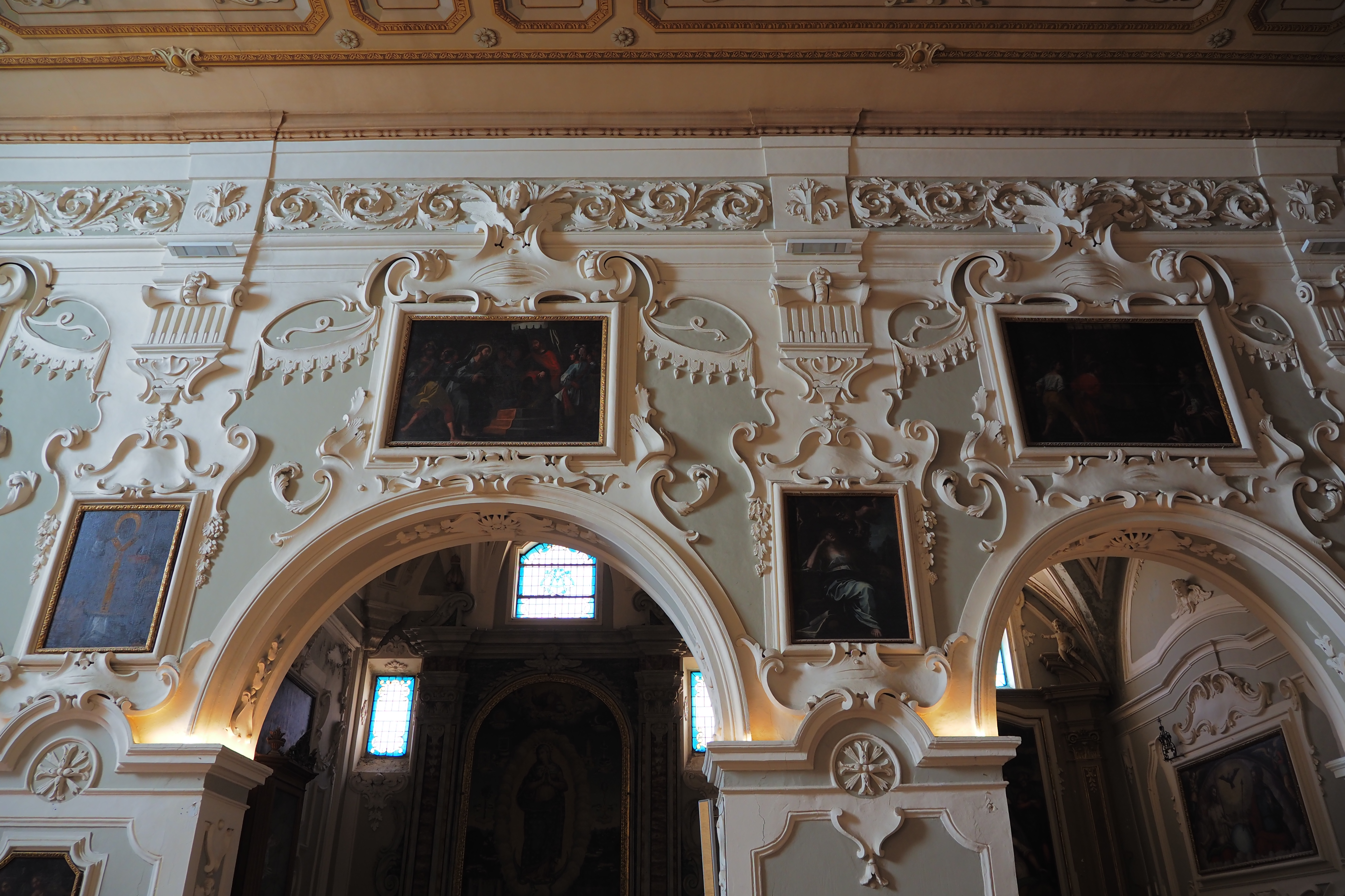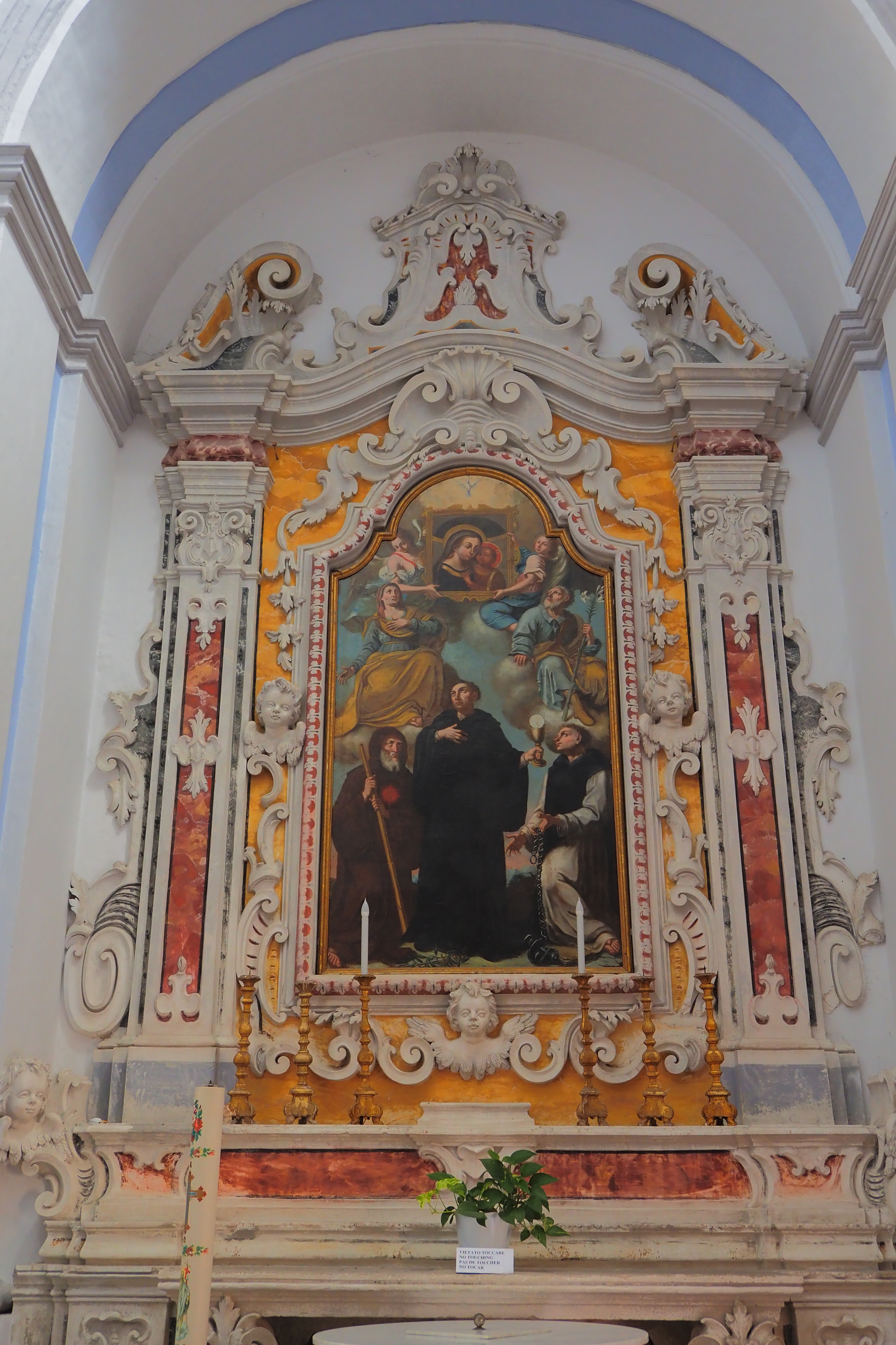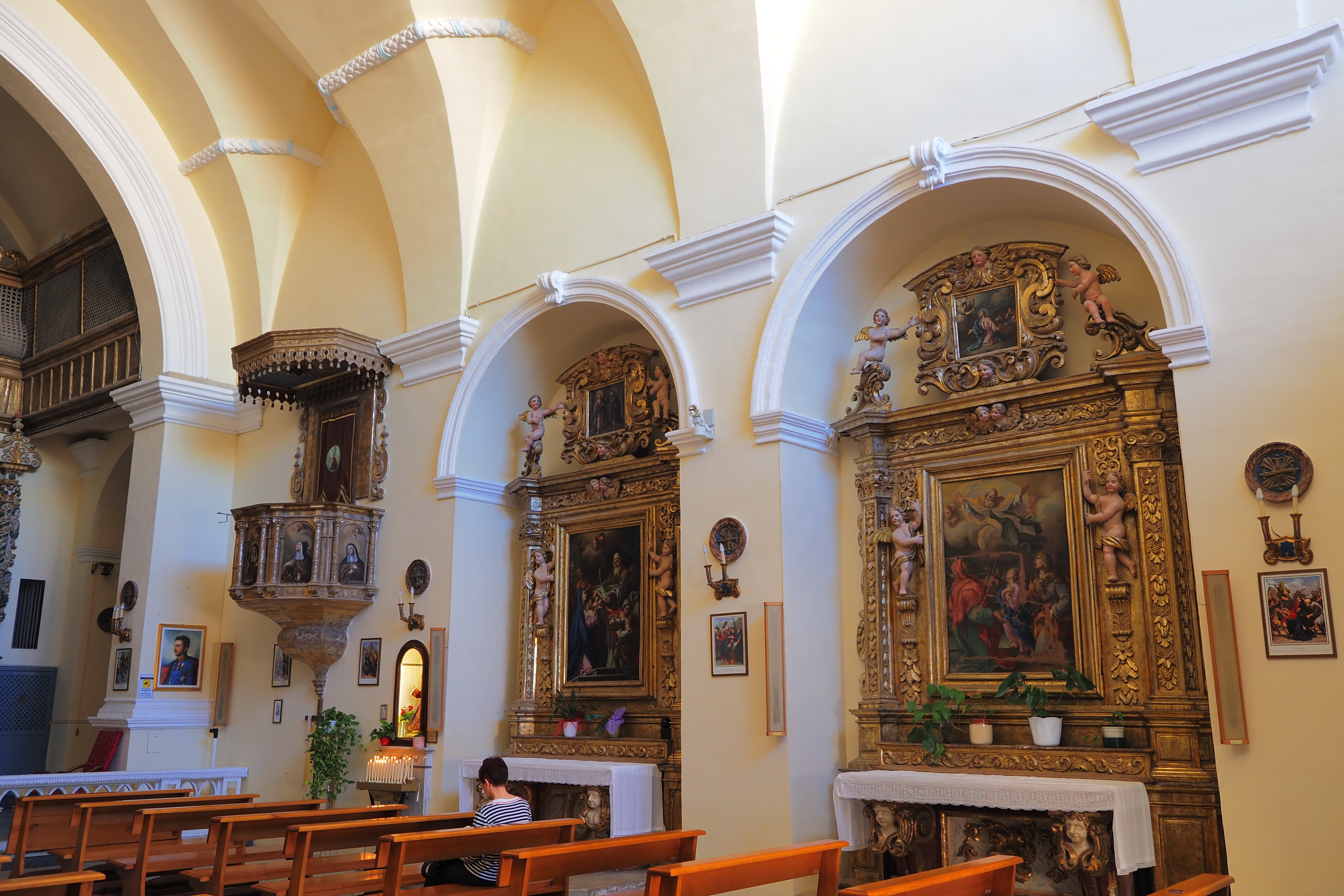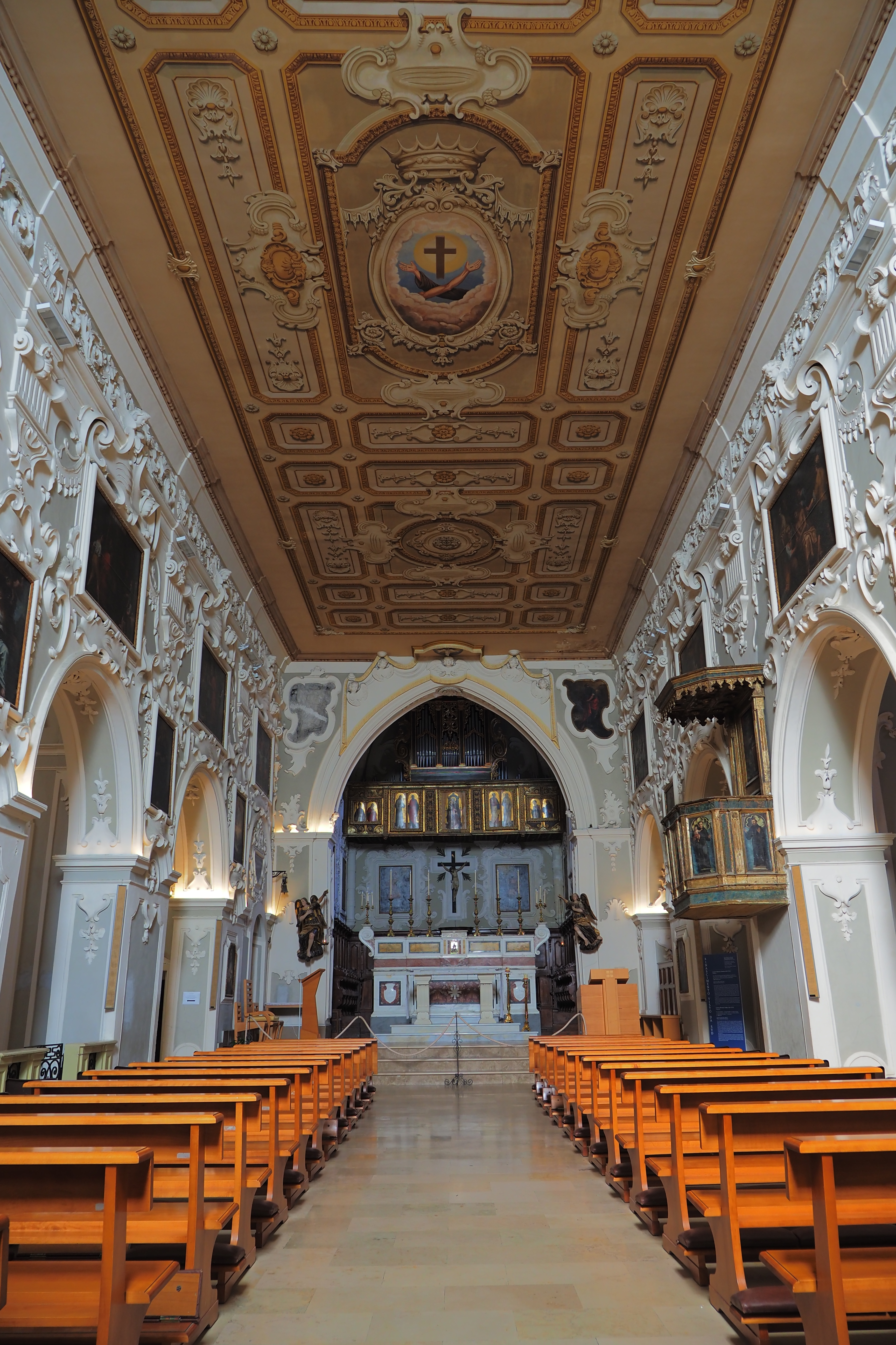 1734年の地震で崩壊した後、再建されている。ファサードは後期ルネサンス様式からバロック様式への過渡的な雰囲気。