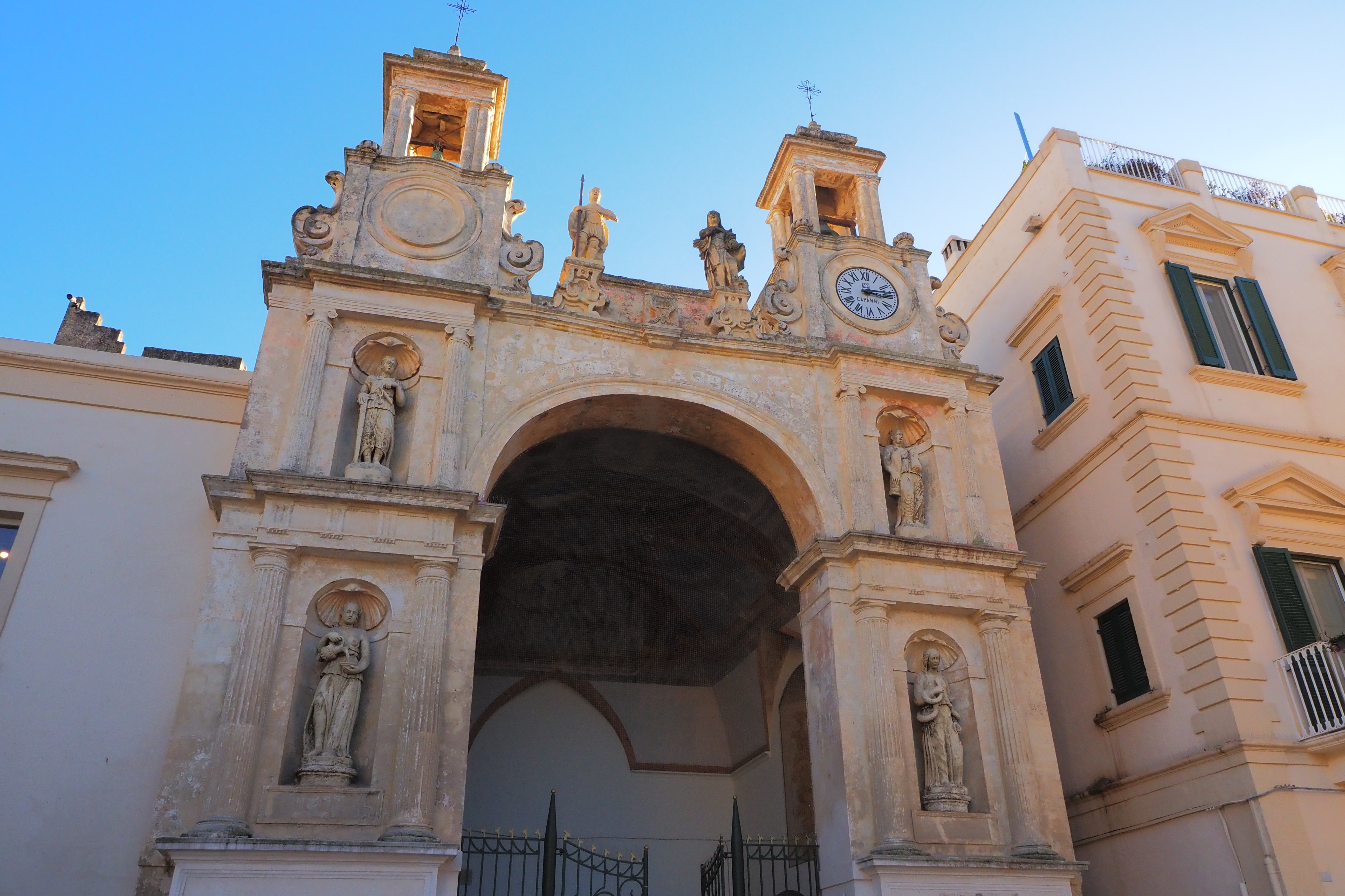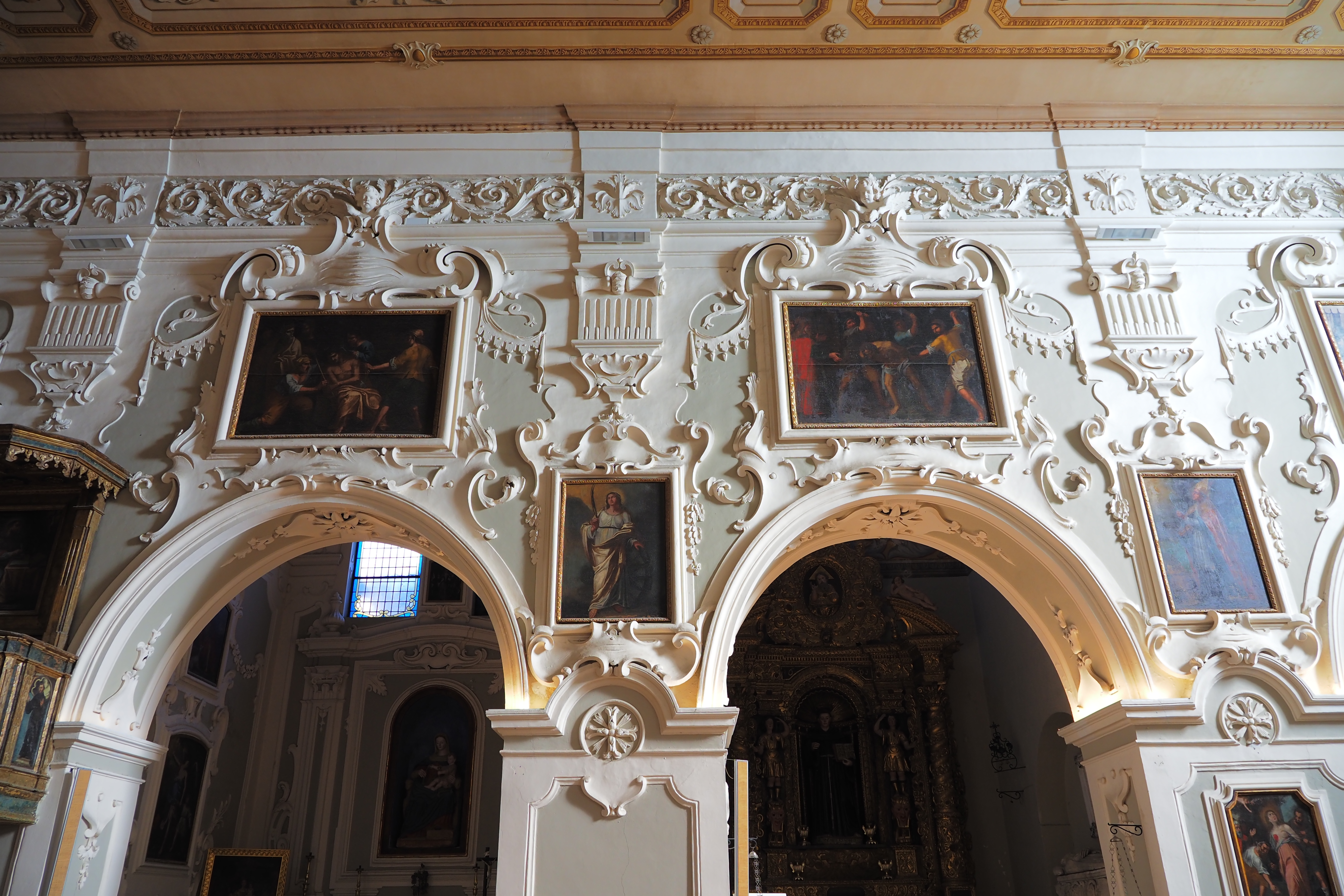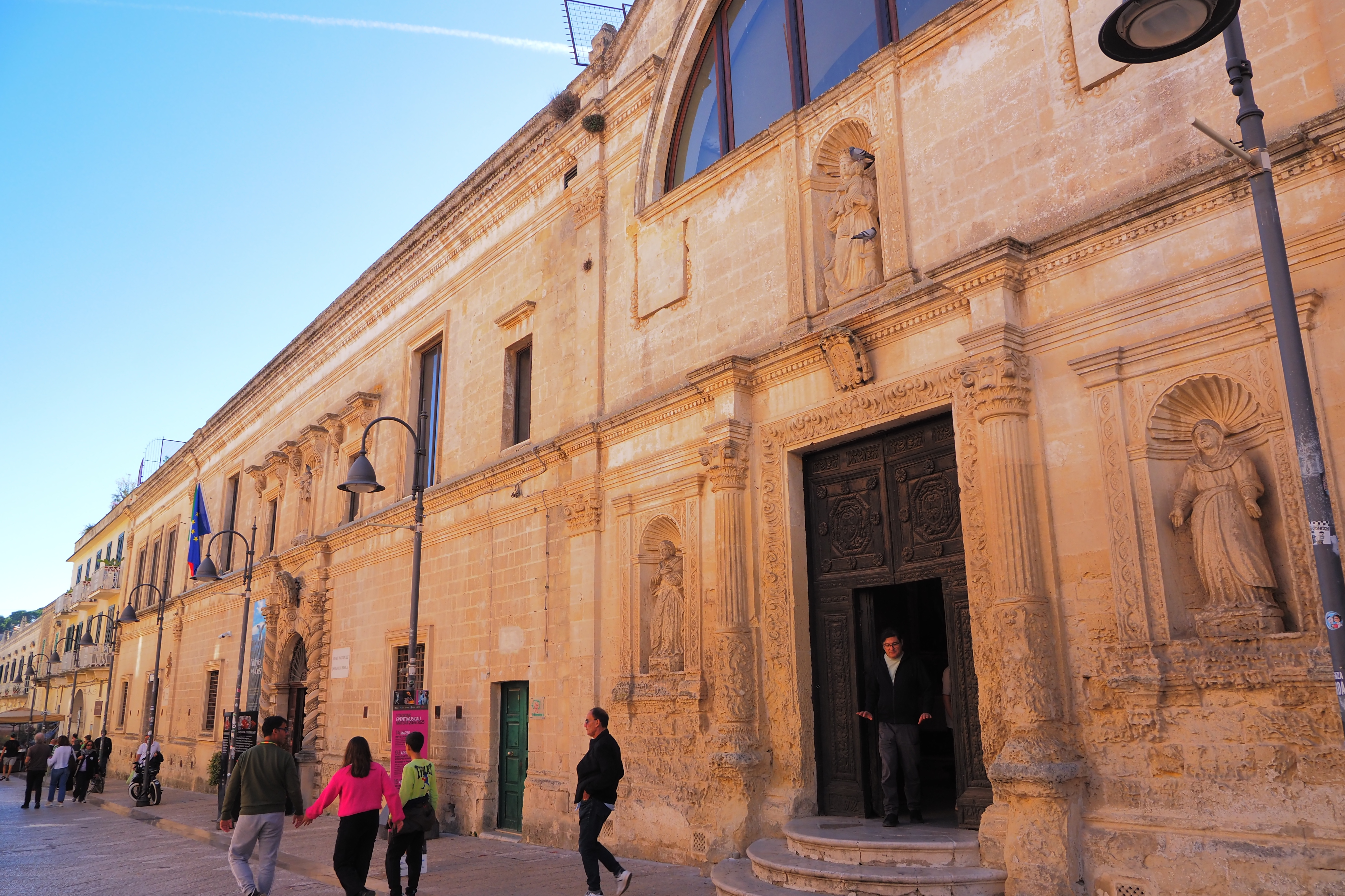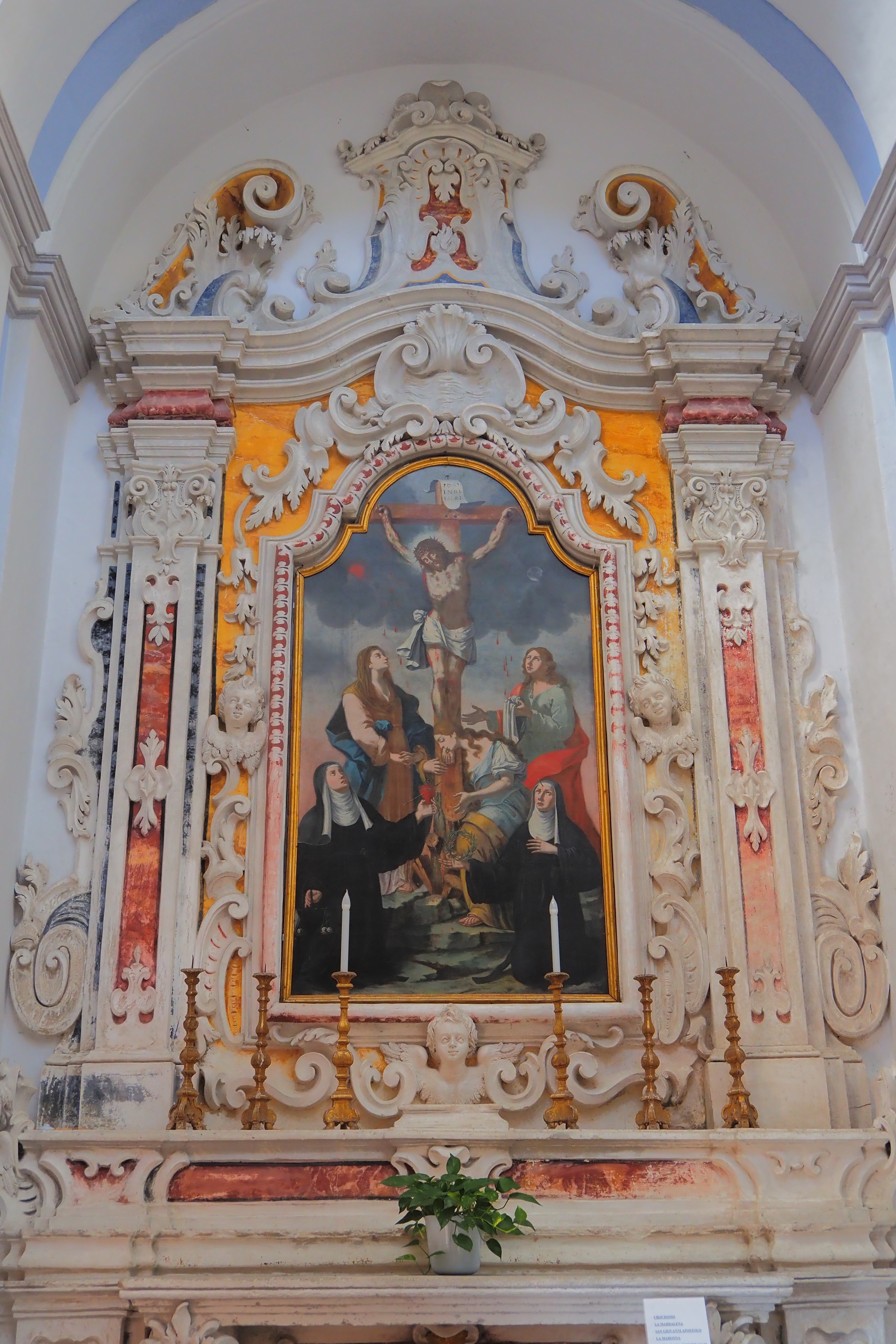 1734年の地震で崩壊した後、再建されている。ファサードは後期ルネサンス様式からバロック様式への過渡的な雰囲気。