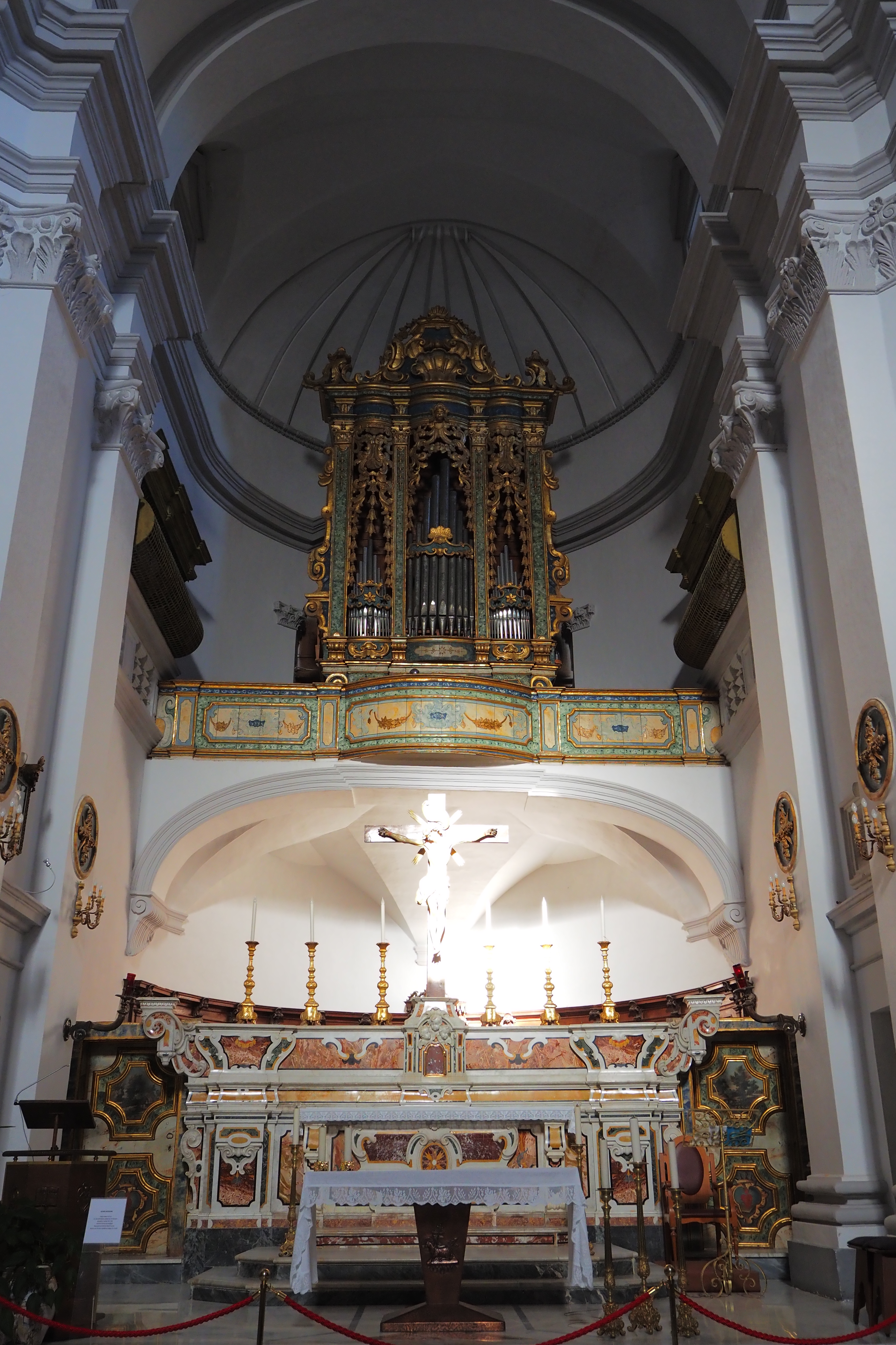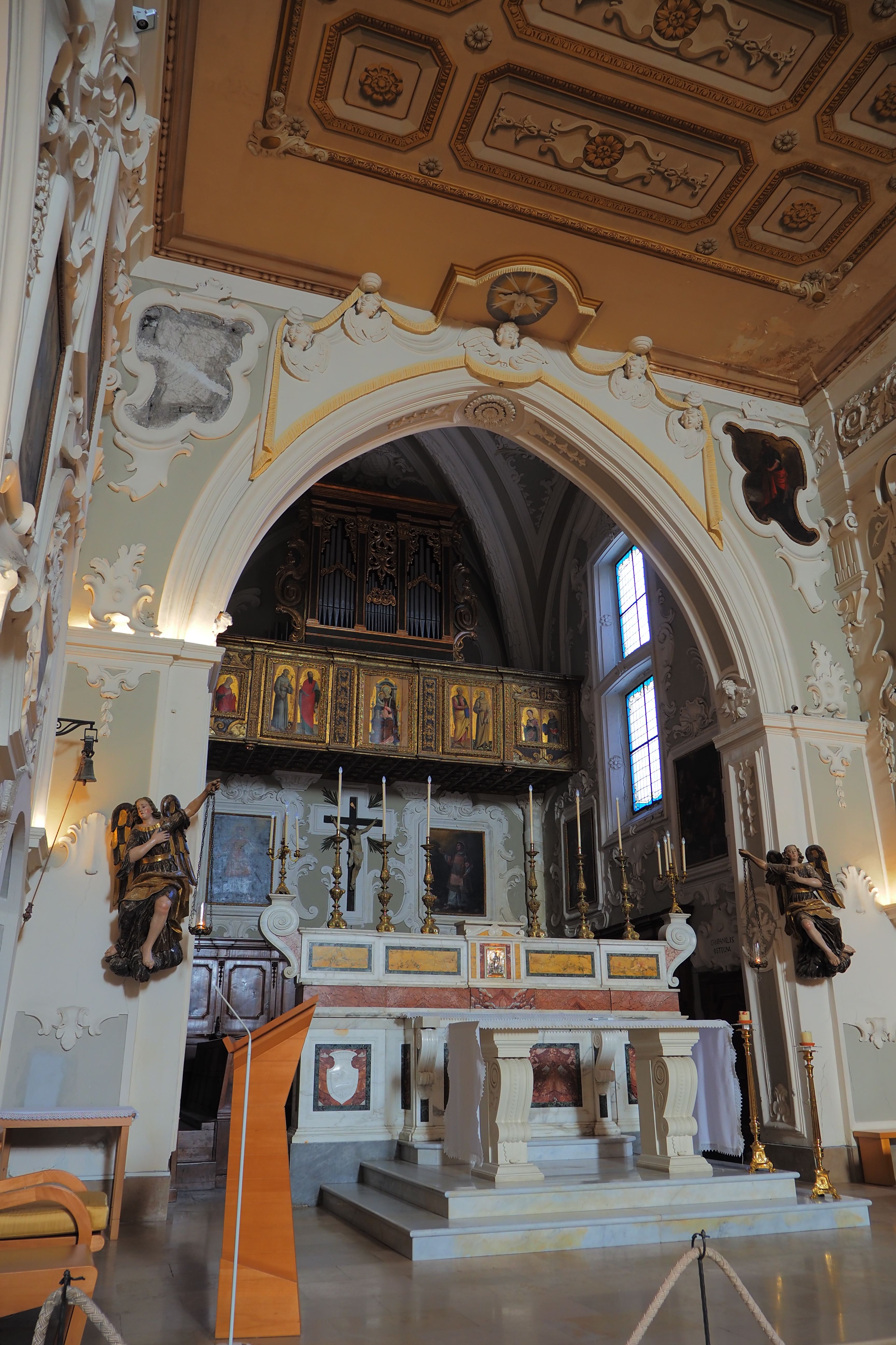 上部には絢爛に装飾された1749年製パイプオルガンが設置されている。