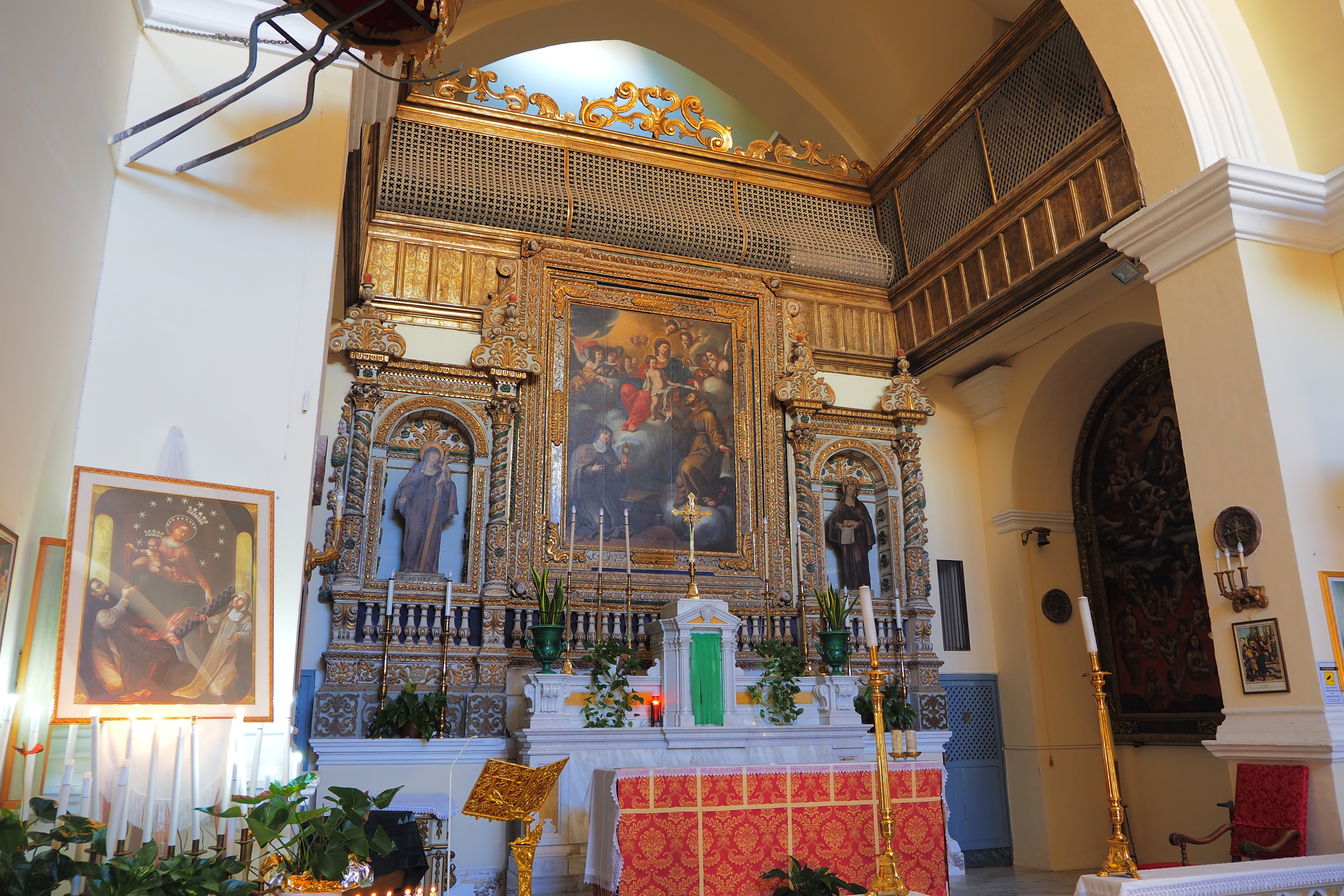 側礼拝壁龕に置かれたサイドアルター。さっきも言ったけど、ひとつひとつが小さい教会の主祭壇レベルに豪華だ。