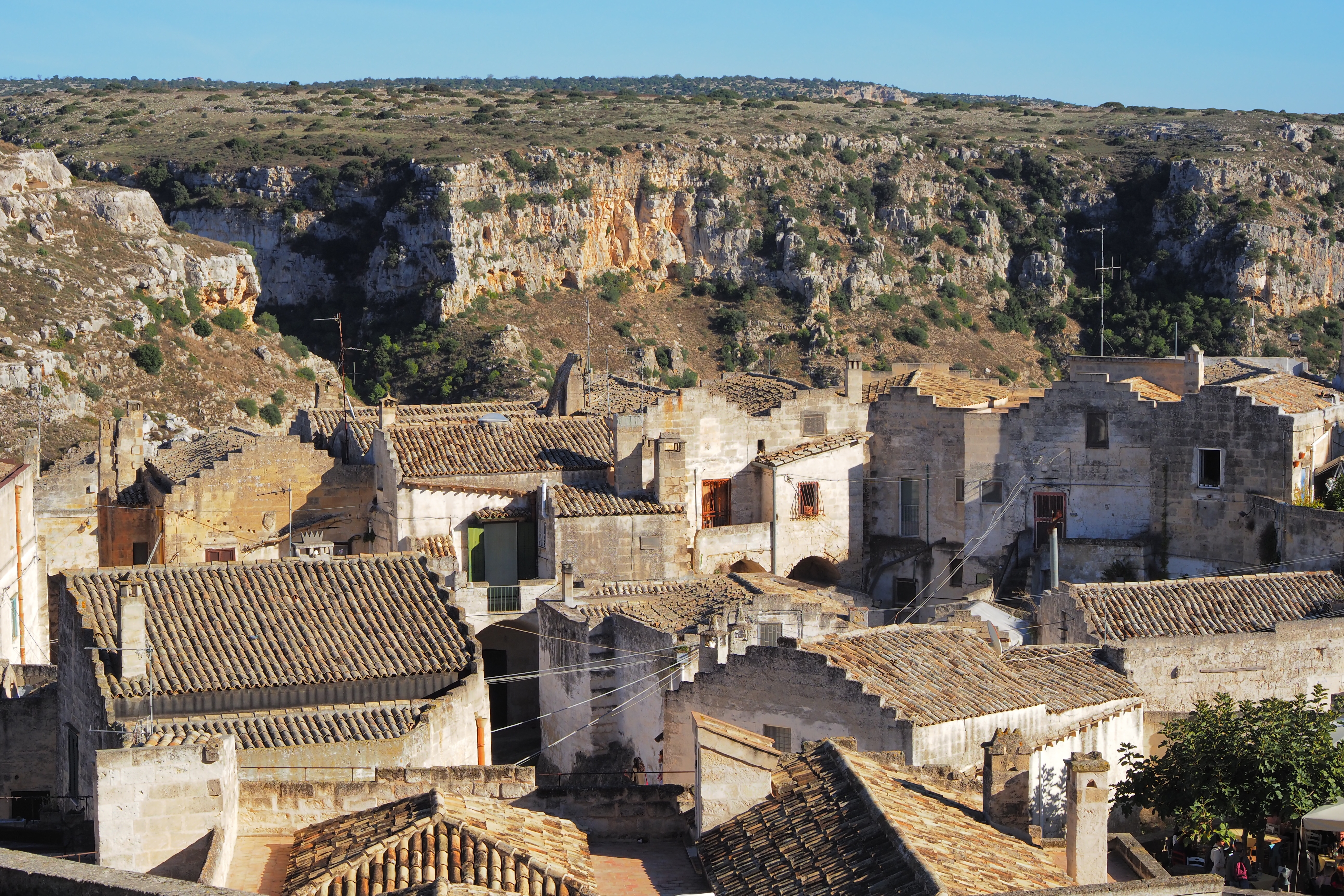 サッシ旧市街の東側に広がる 深いGravina; グラヴィナ渓谷。