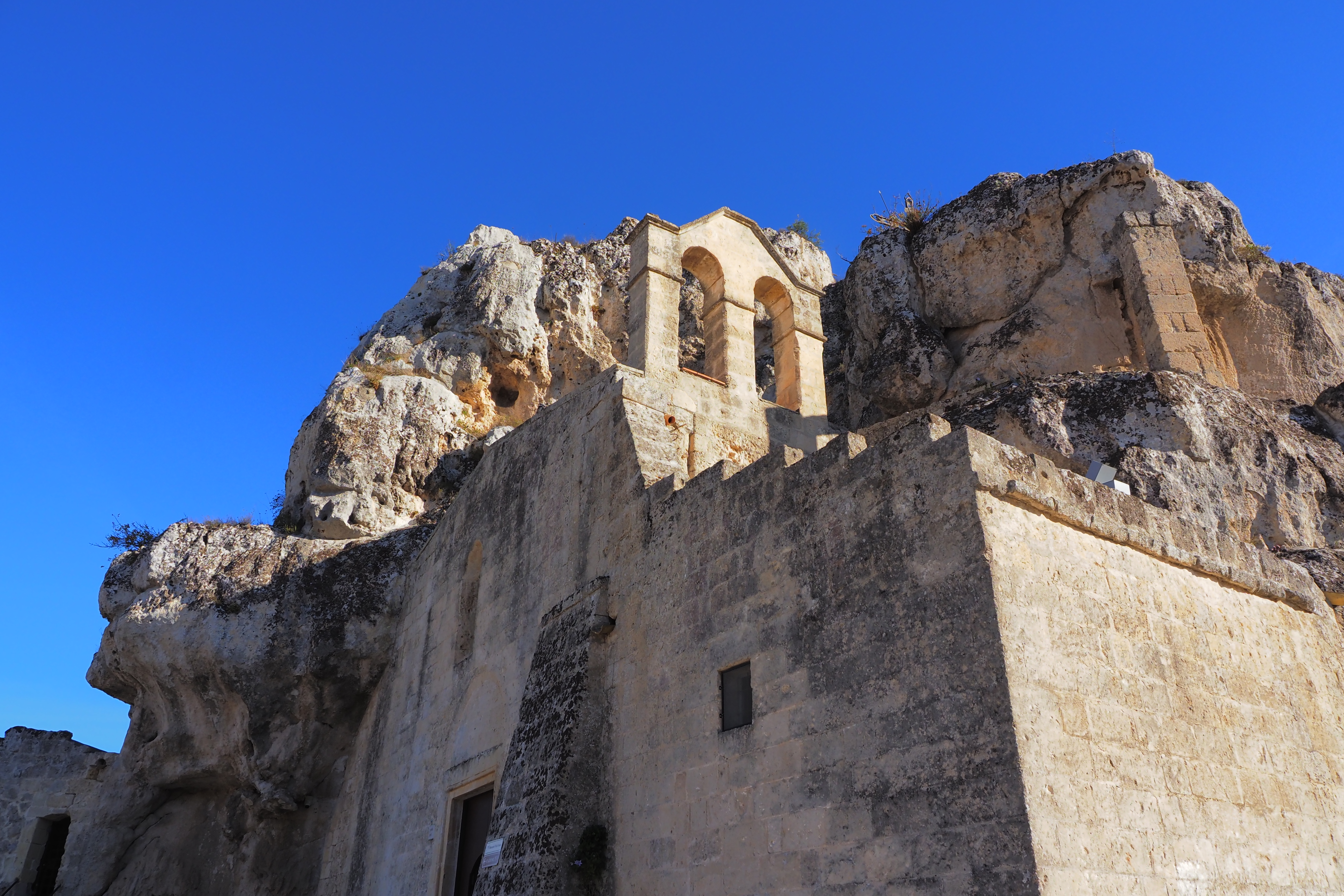 完全に岩と一体構造の Chiesa Rupestre di Santa Maria di Idris.