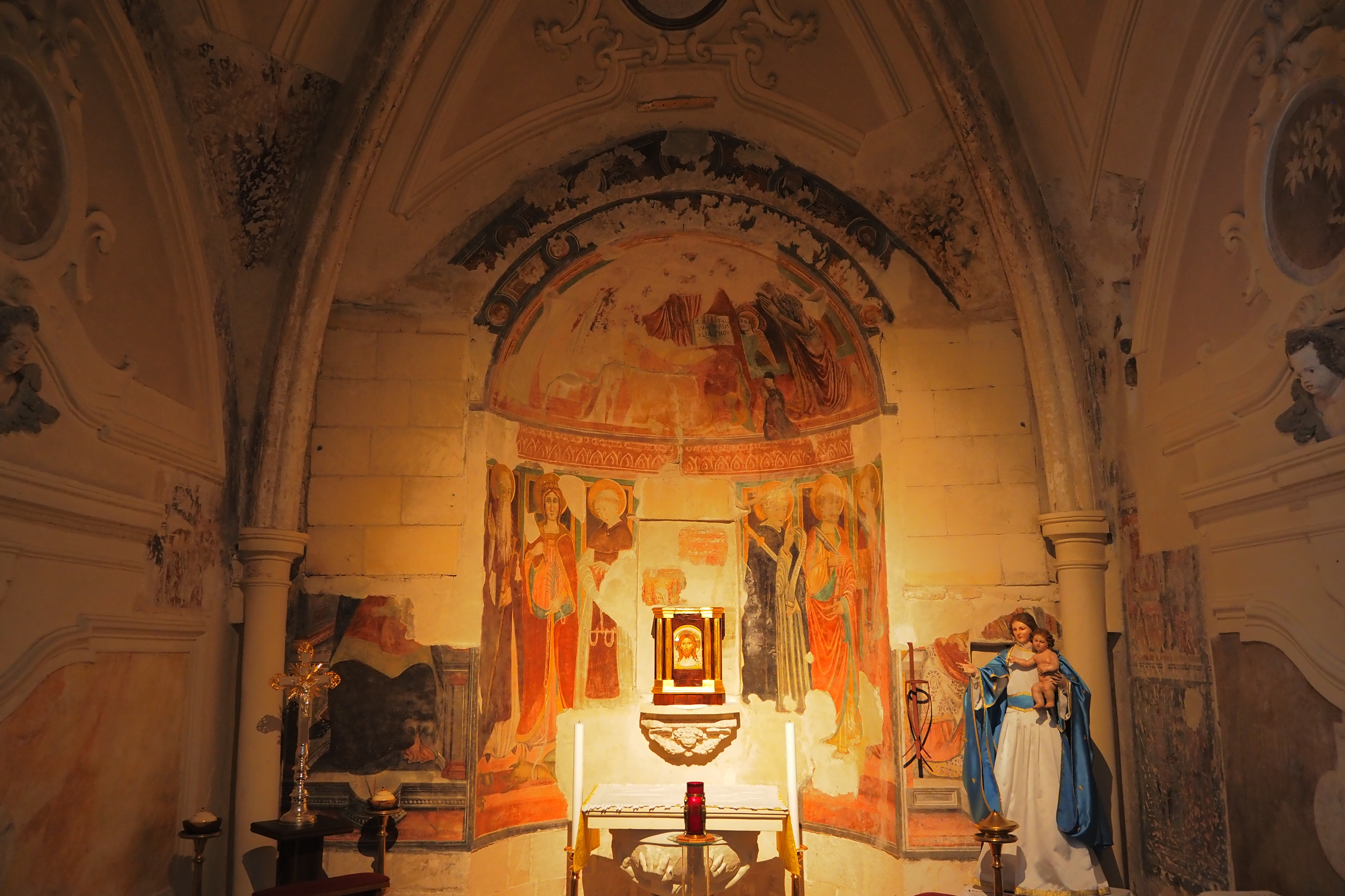 祭壇のところに見えるテンペラ画は15世紀のもの。