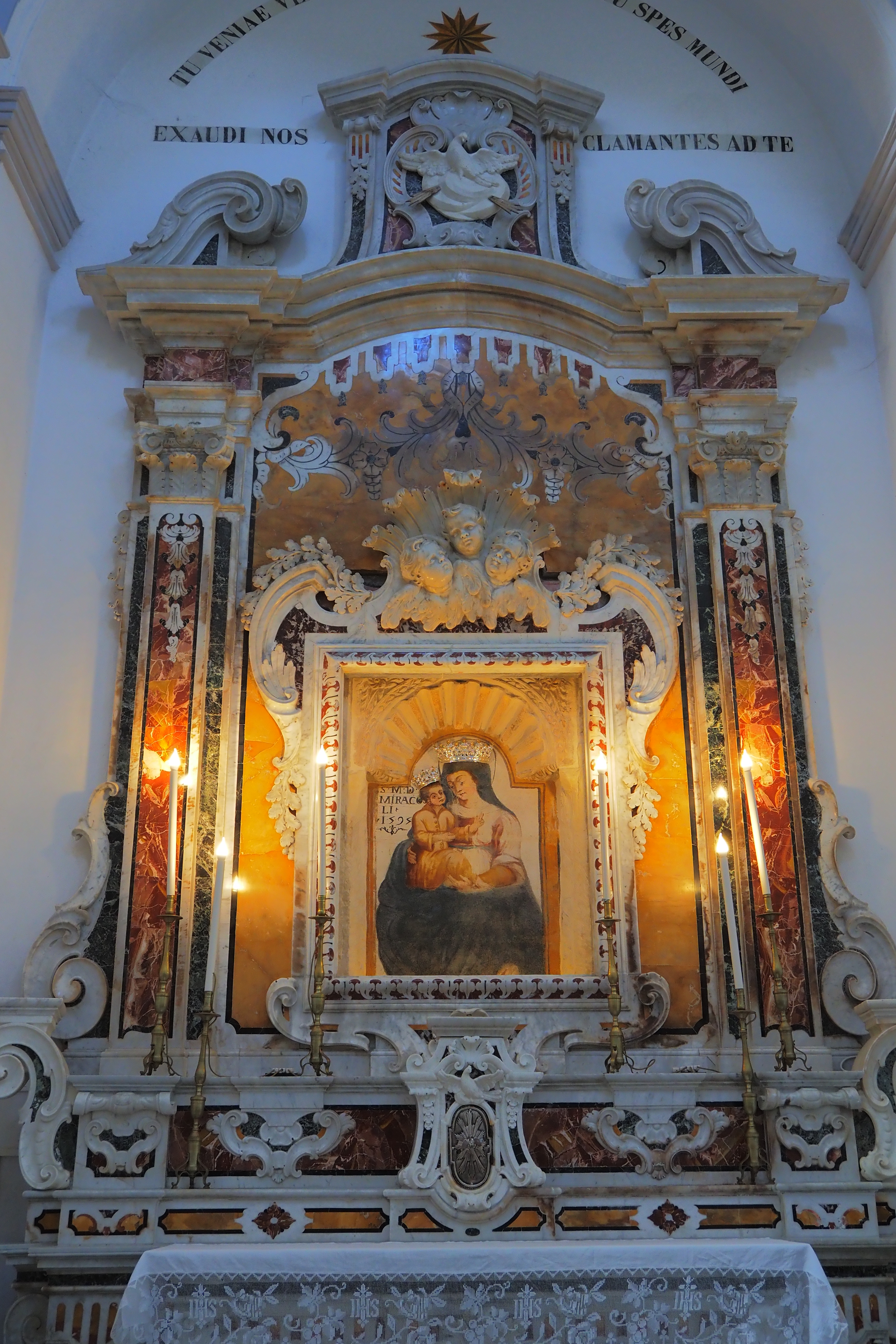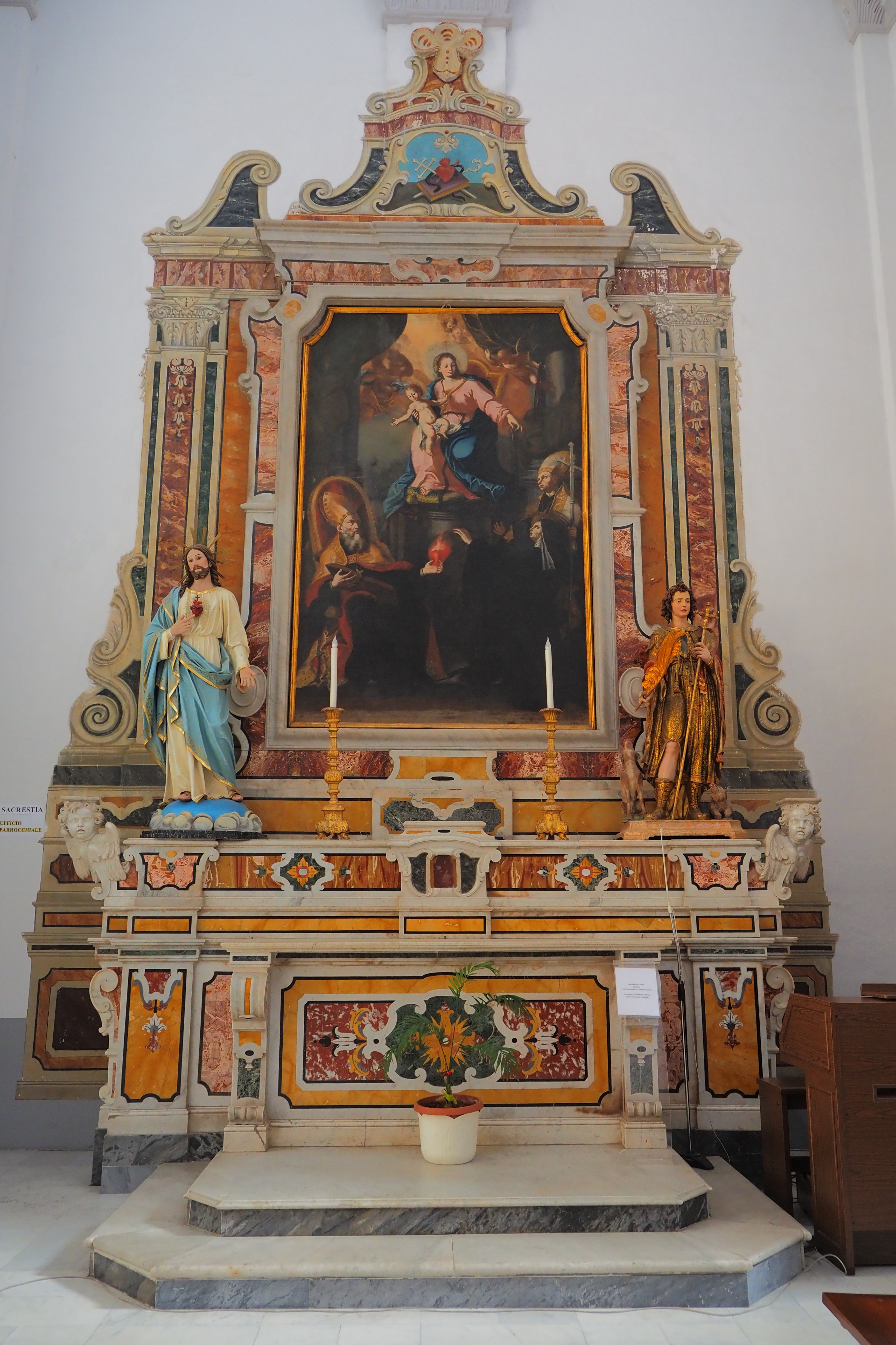 主祭壇は1748年に製作されたロココ様式の大理石製、