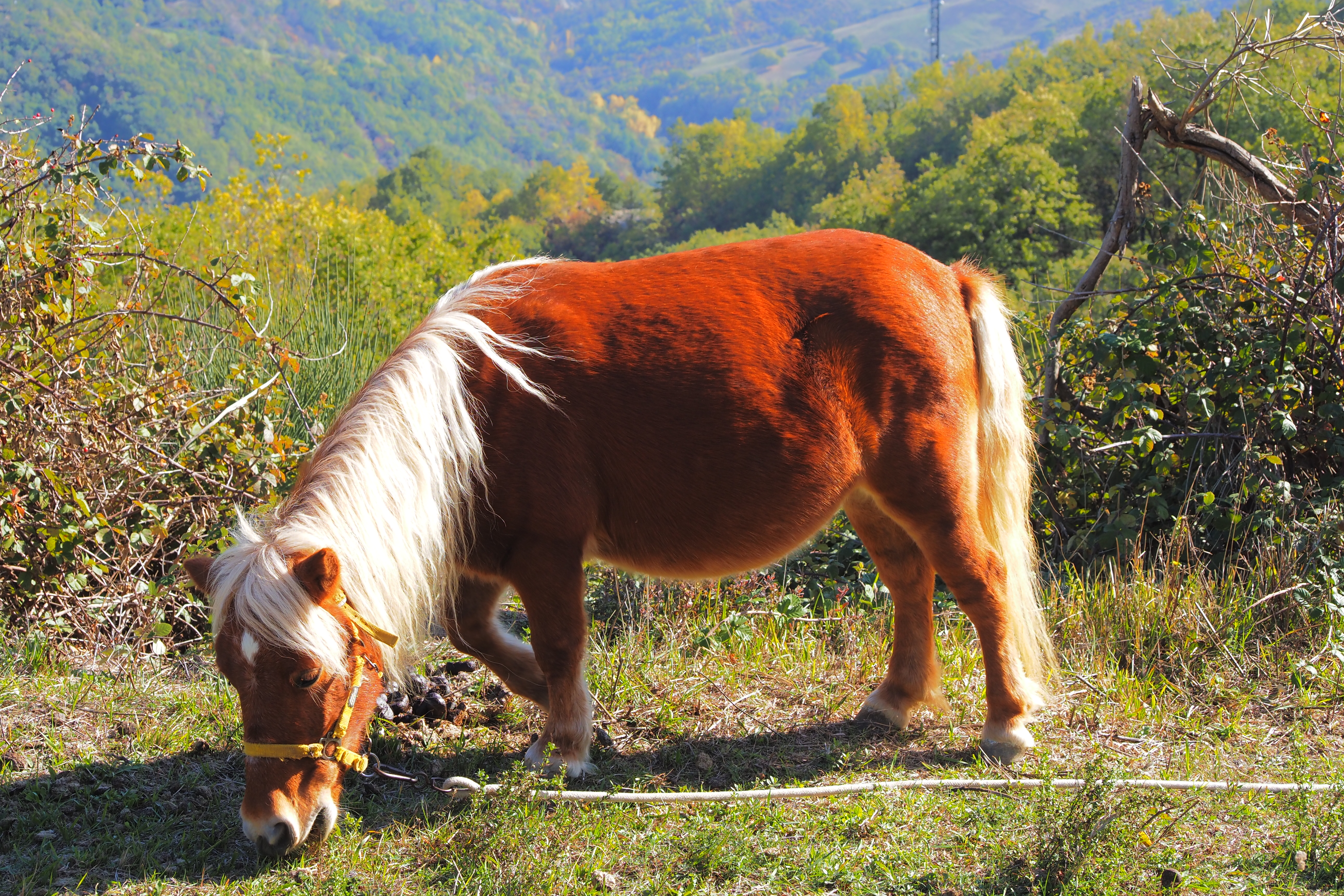 道脇で草を食むポニーを眺めながら進む ポテンツァの田舎道、いいわぁ。