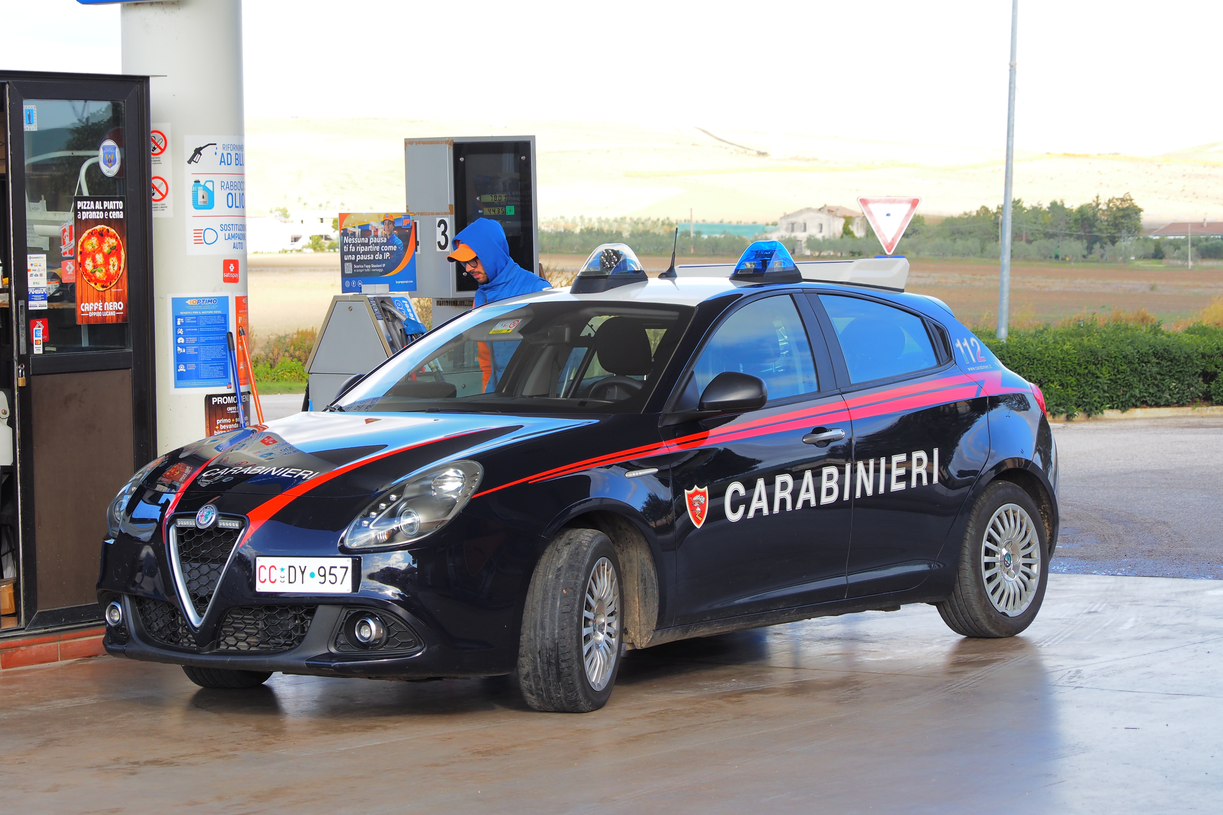 イタリアには警察機構が2つあって、ひとつはいわゆる日本の警察と同じような文民警察の Polizia; ポリツィア 、もうひとつが国防相管轄の国家憲兵 カリビニエリ。なのでこのパトカー(と呼んでいいのか分からんけど)に乗ってるのは、警察官というより軍人さんなのだ。