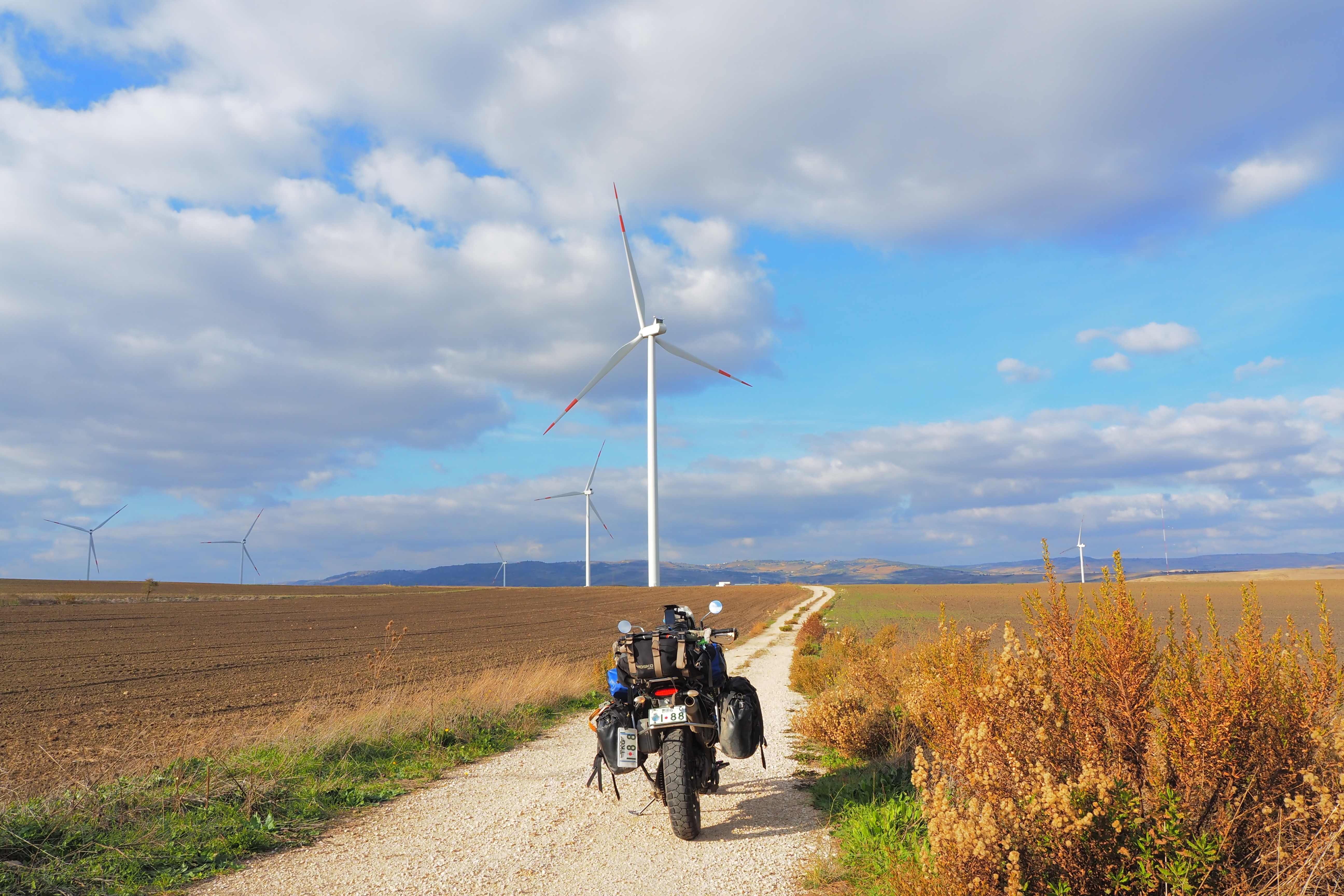 巨大な風車がまわる 広大な耕作地帯を通り過ぎる。