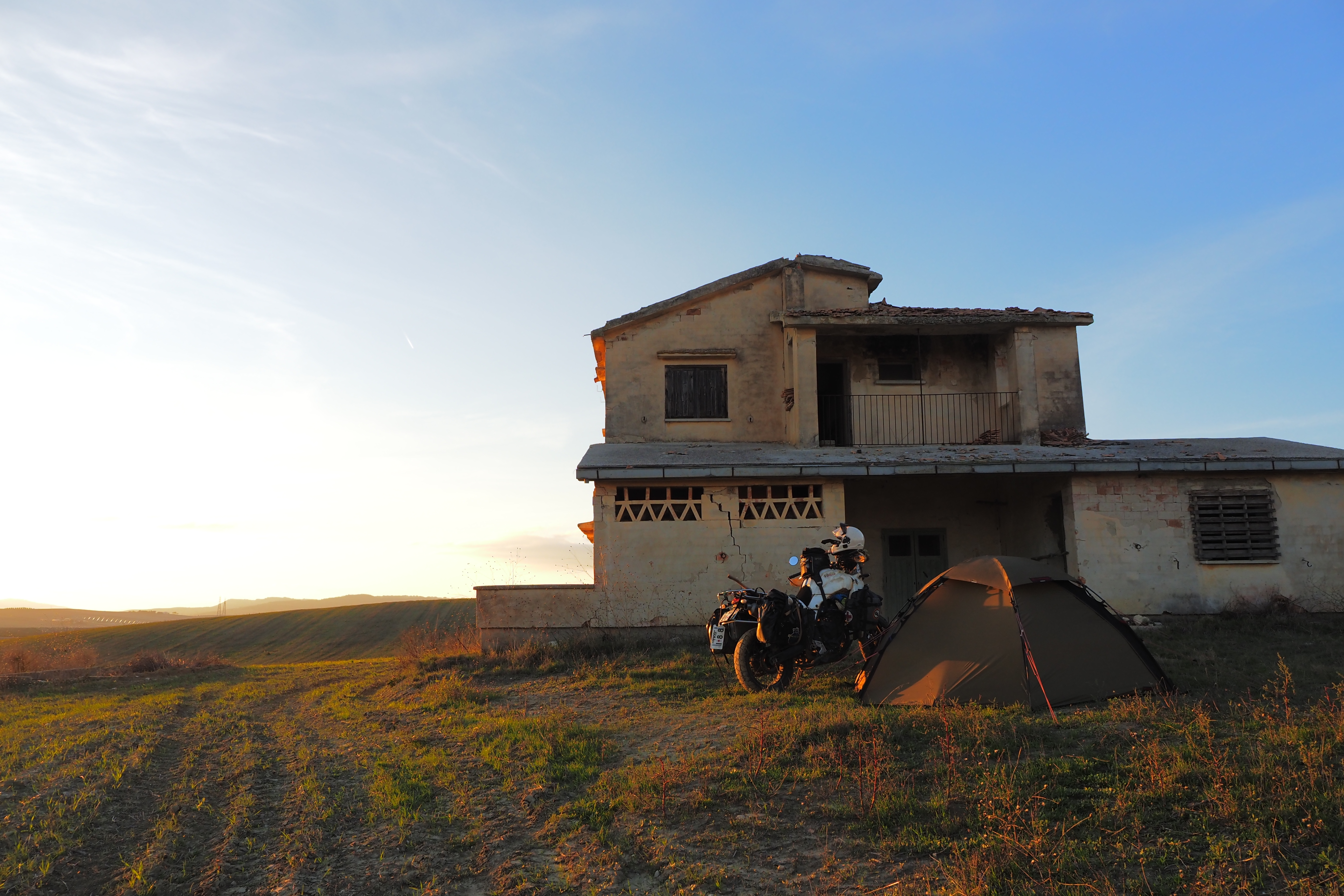 廃屋内に誰も住み着いてるやつがいないか確認して、暗くなる前にテントを設営。