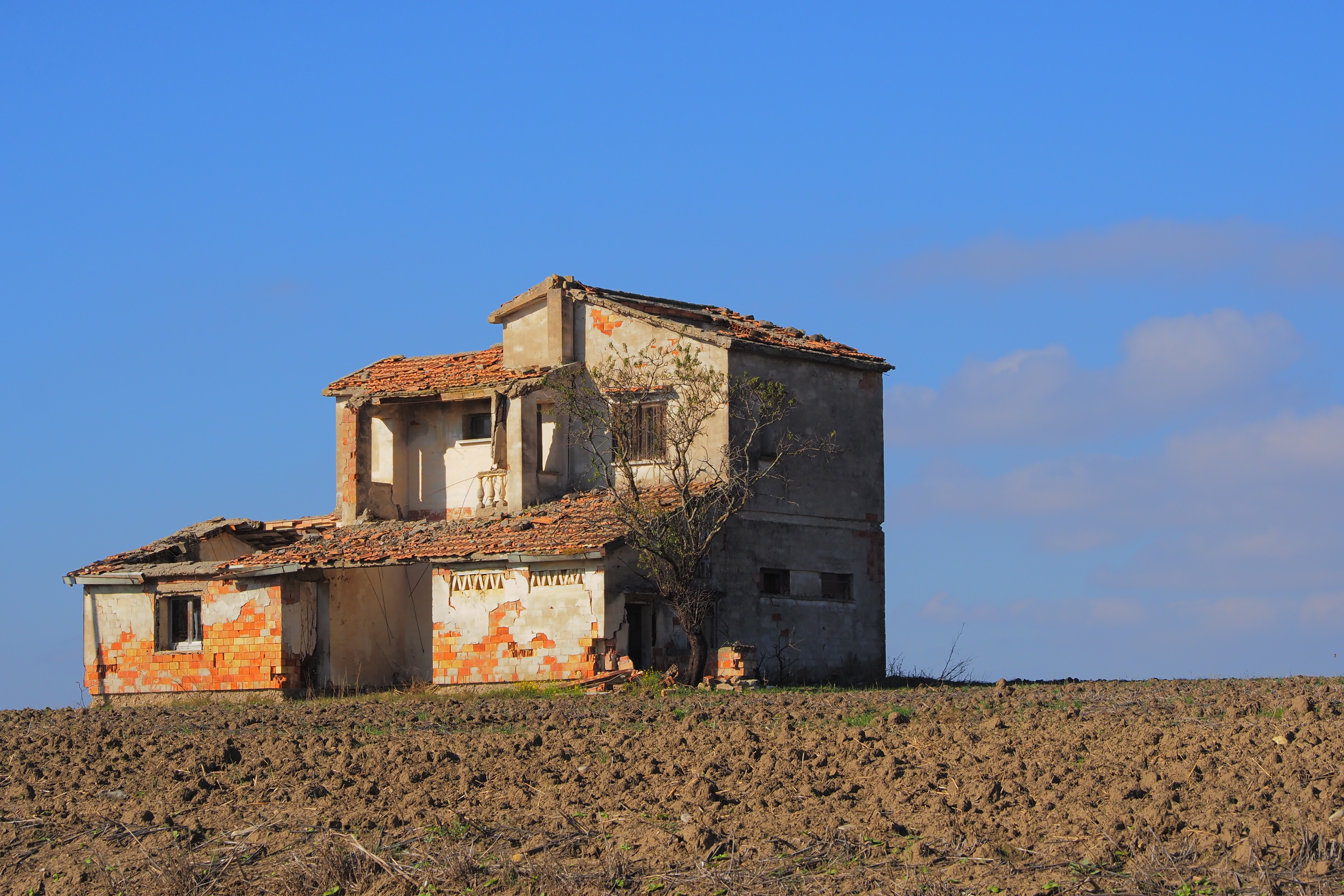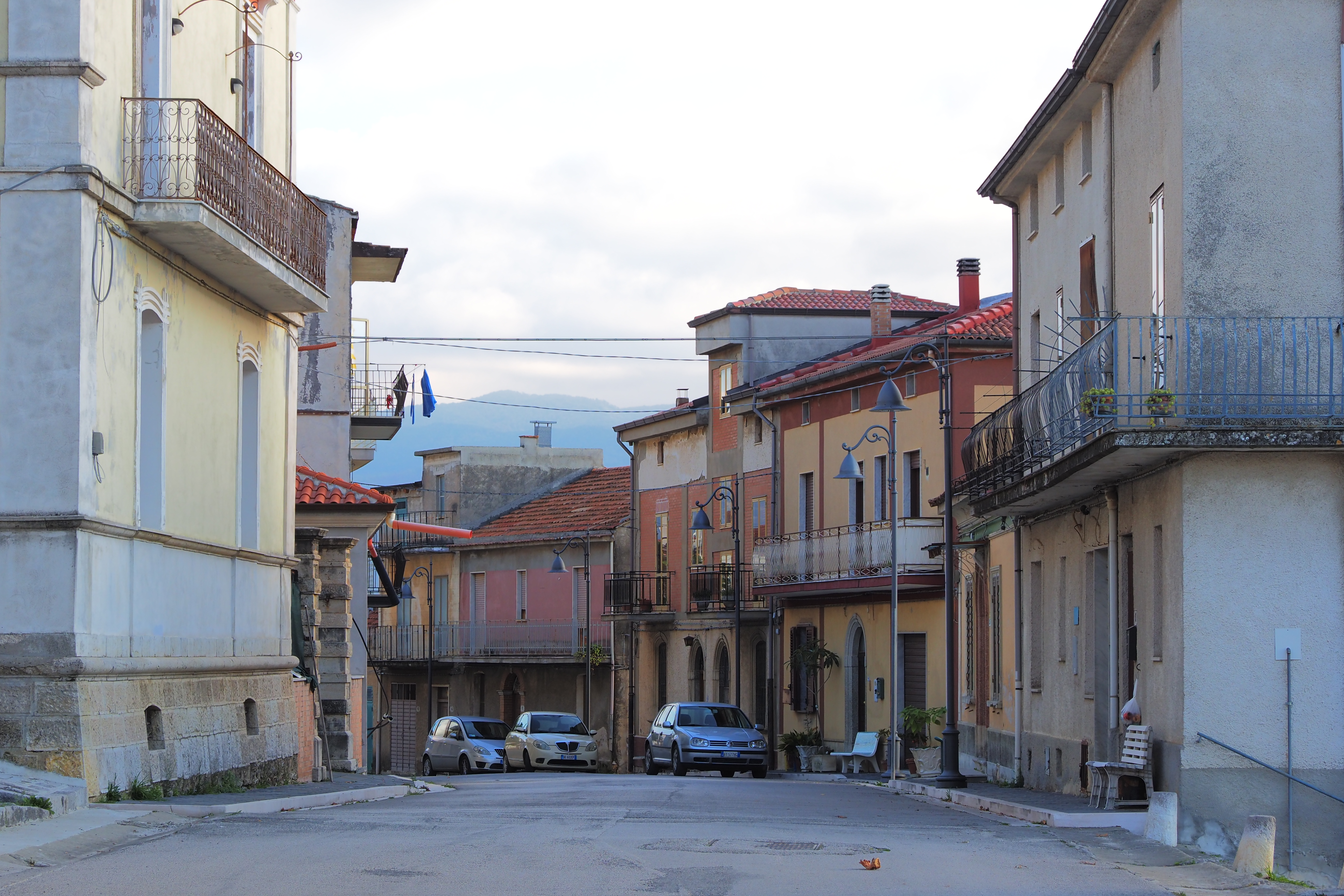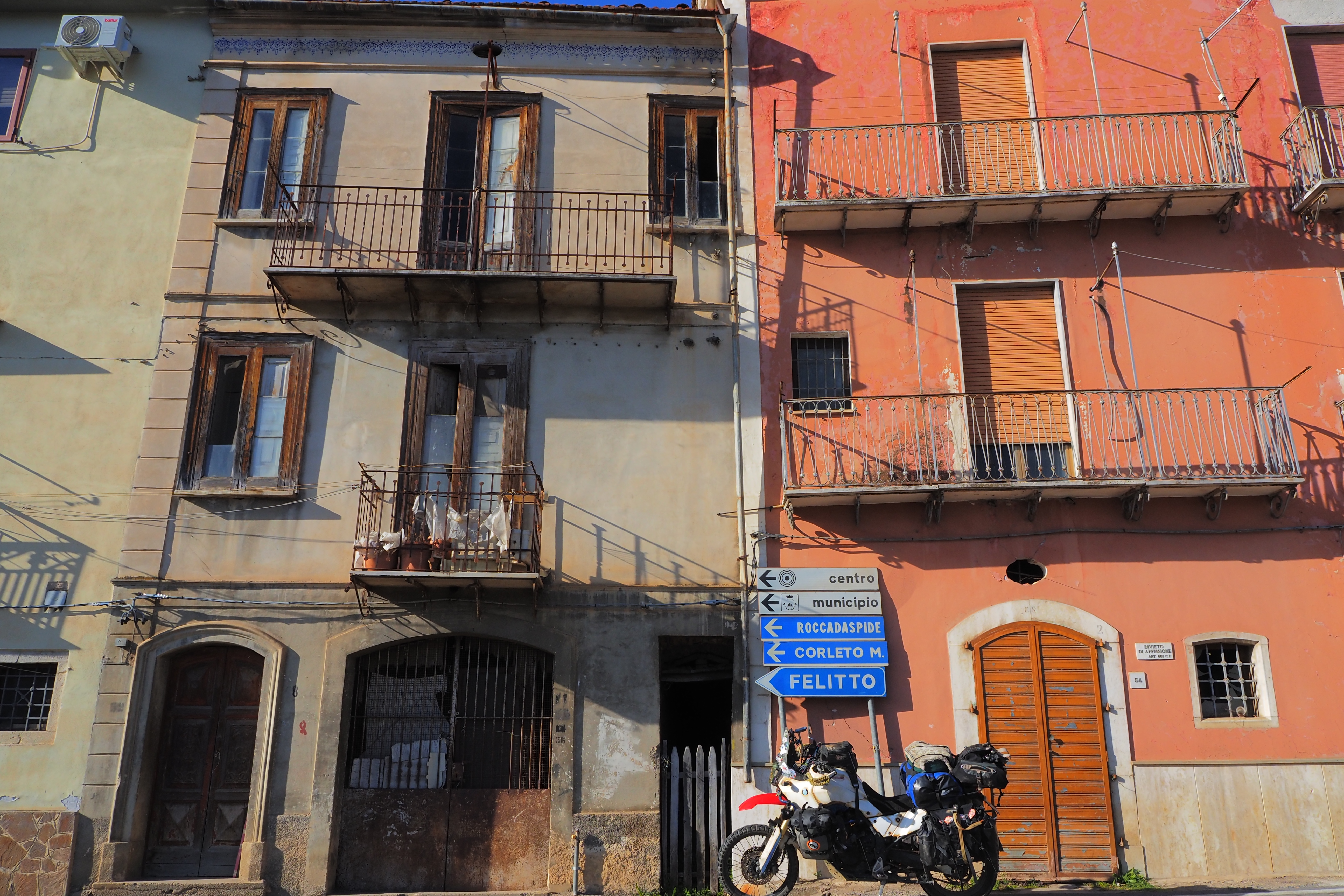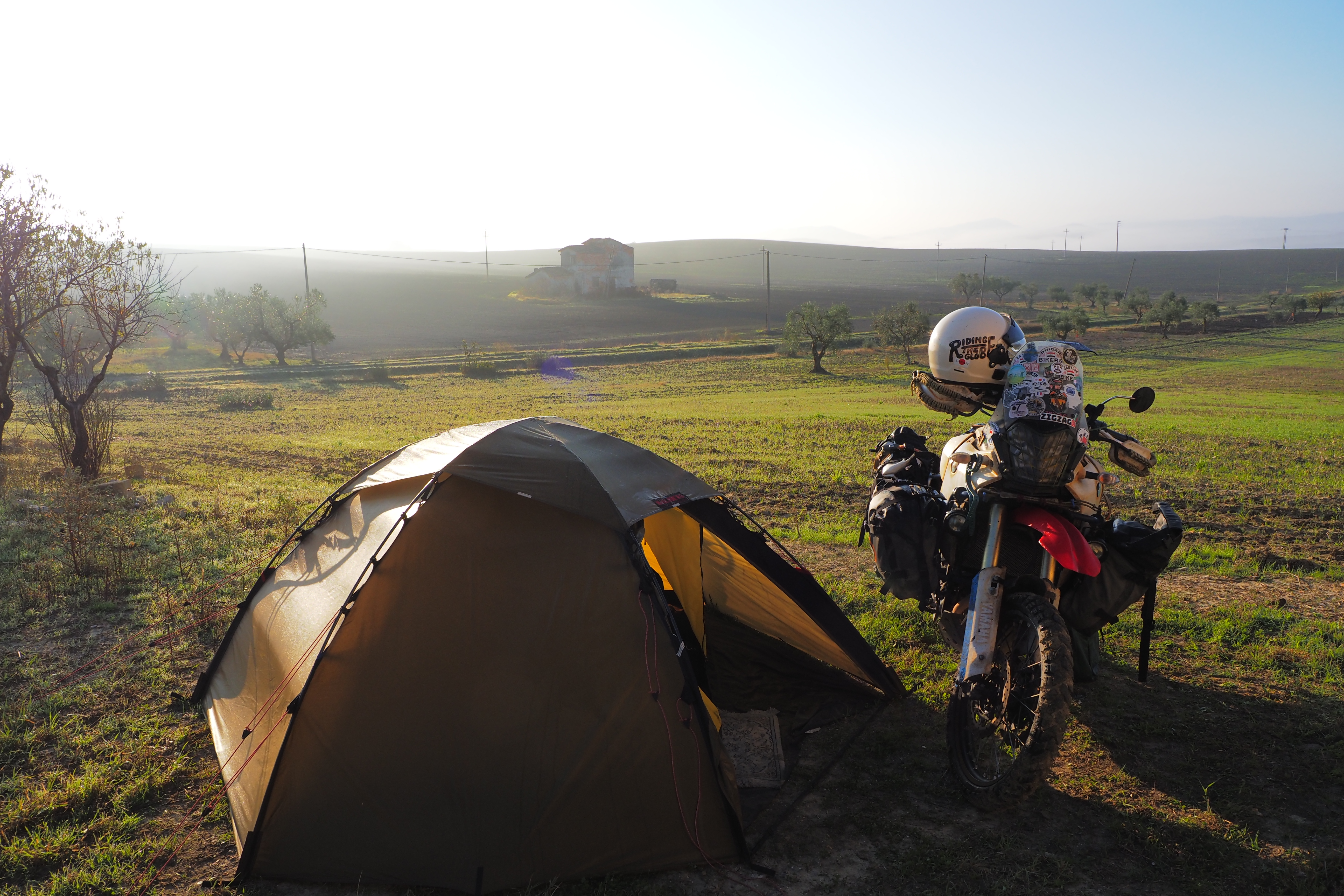 朝、Taccone; タッコーネ近くの廃屋群が集まる農道にて目を覚ます。