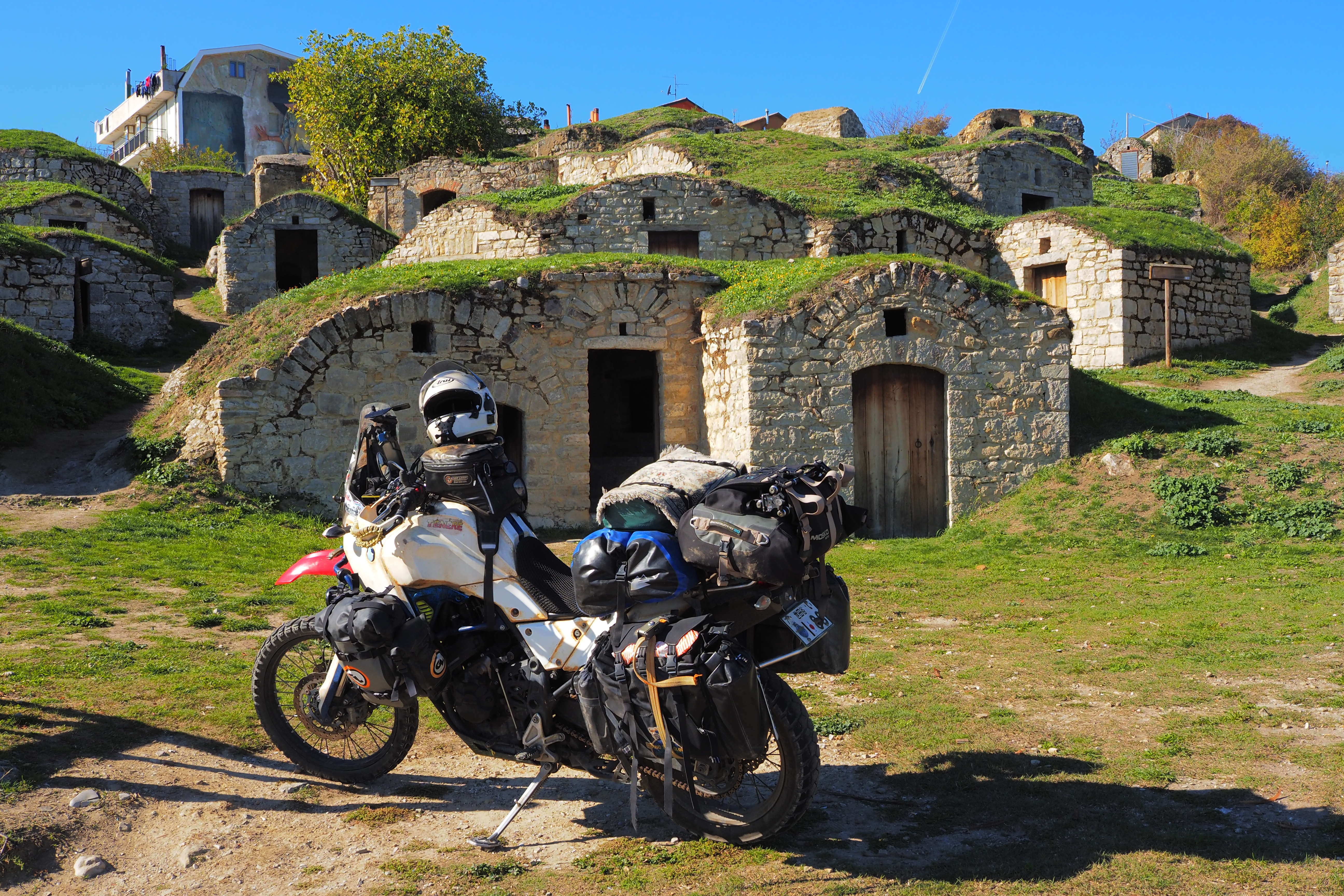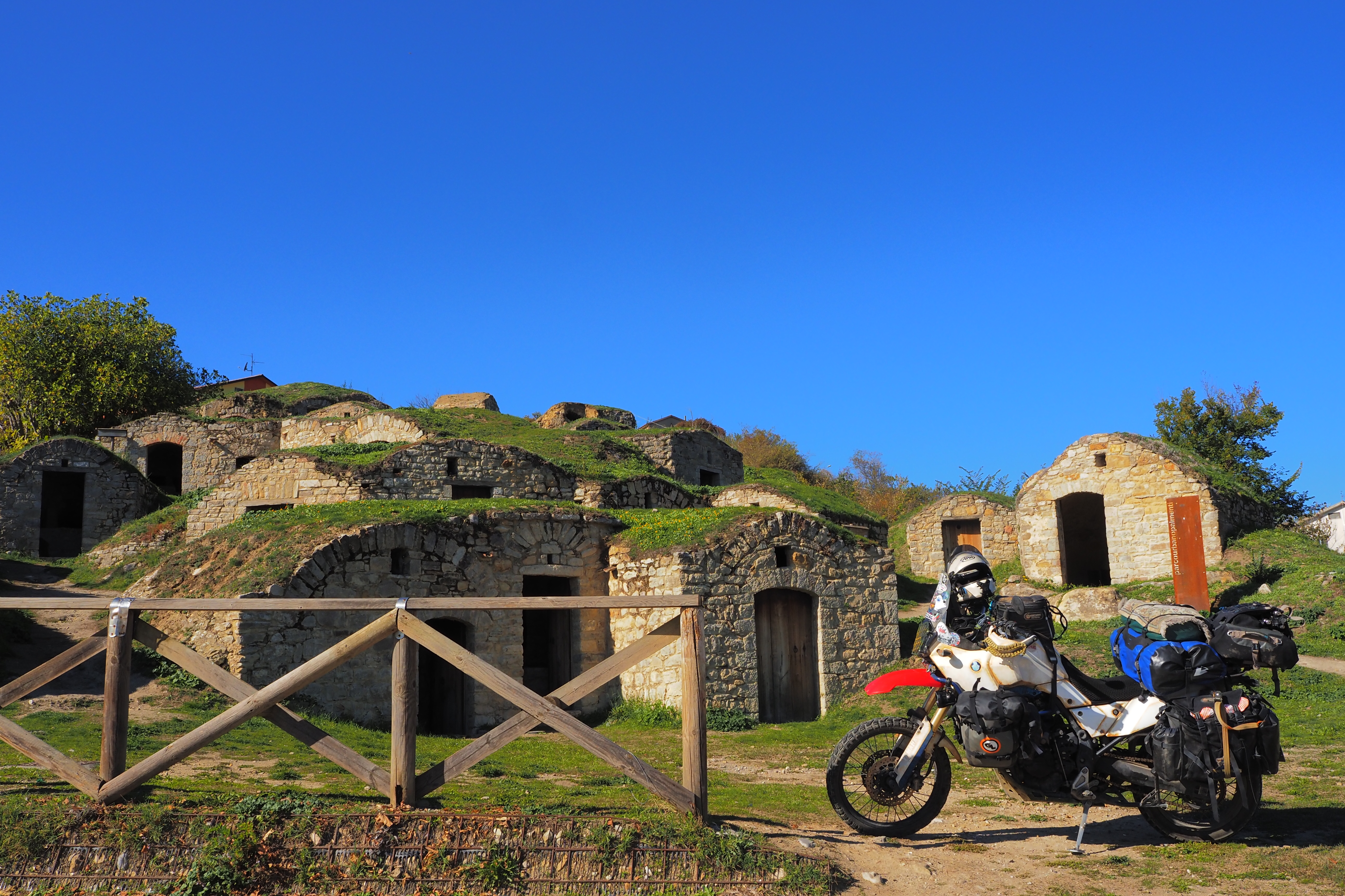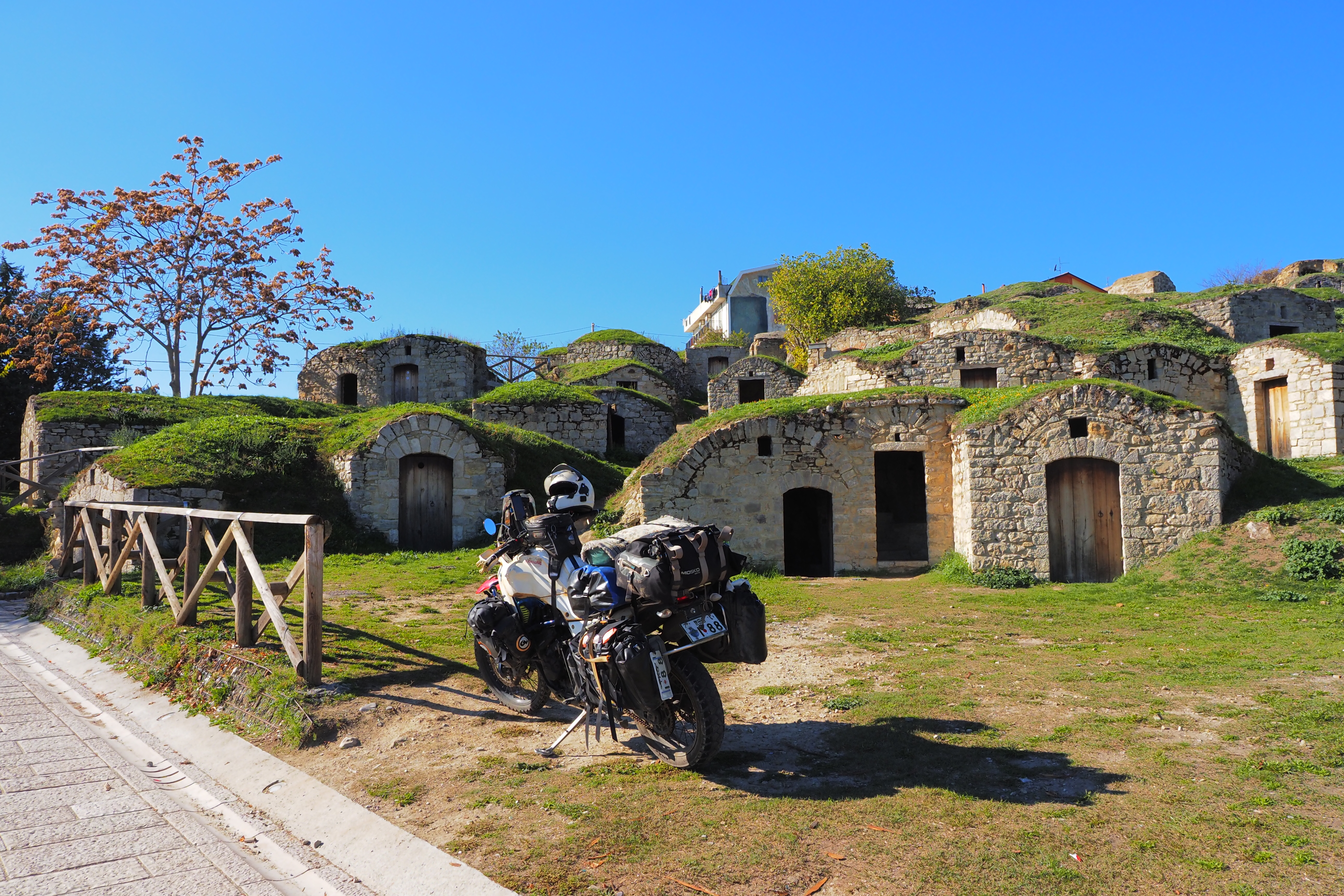 だいたい20kmちょい走っただろうか、ポテンツァ県の中北部 まるでホビットの家みたいな小屋が連立する場所にやってきた。