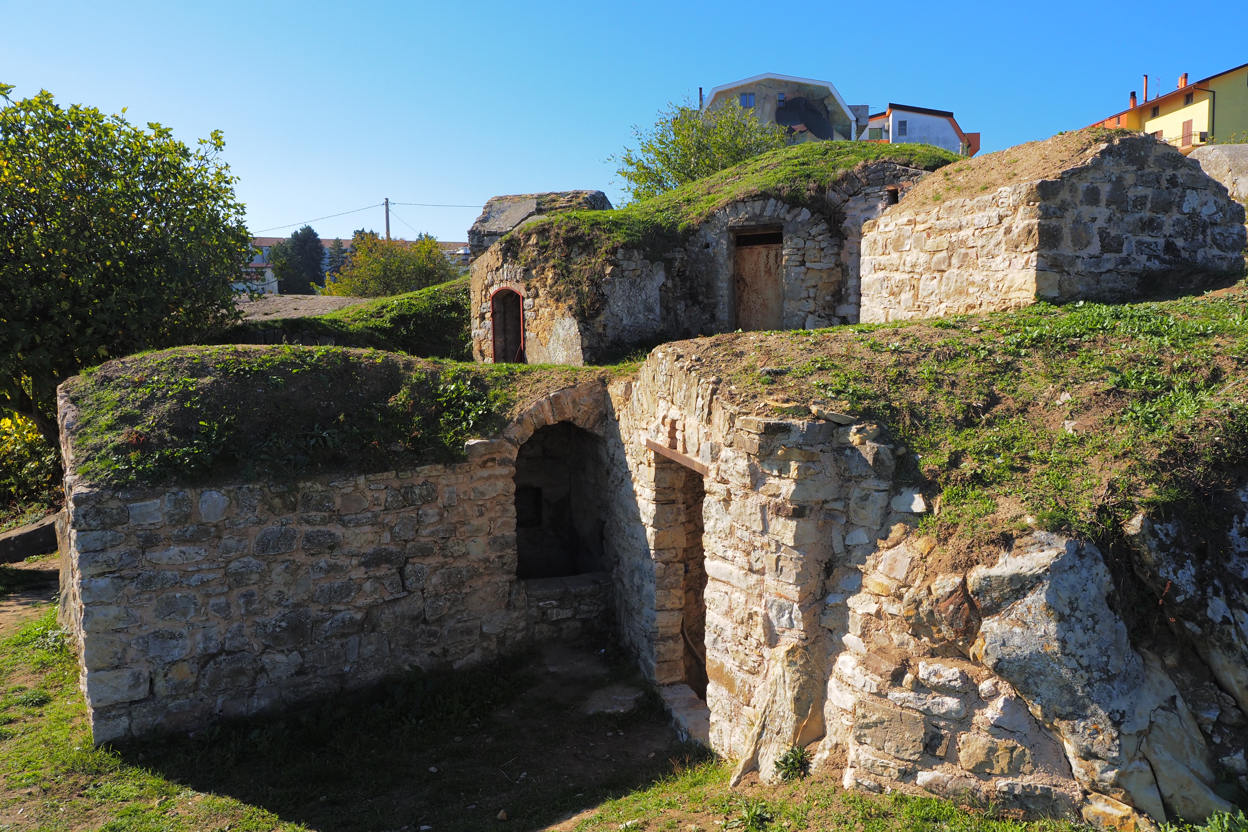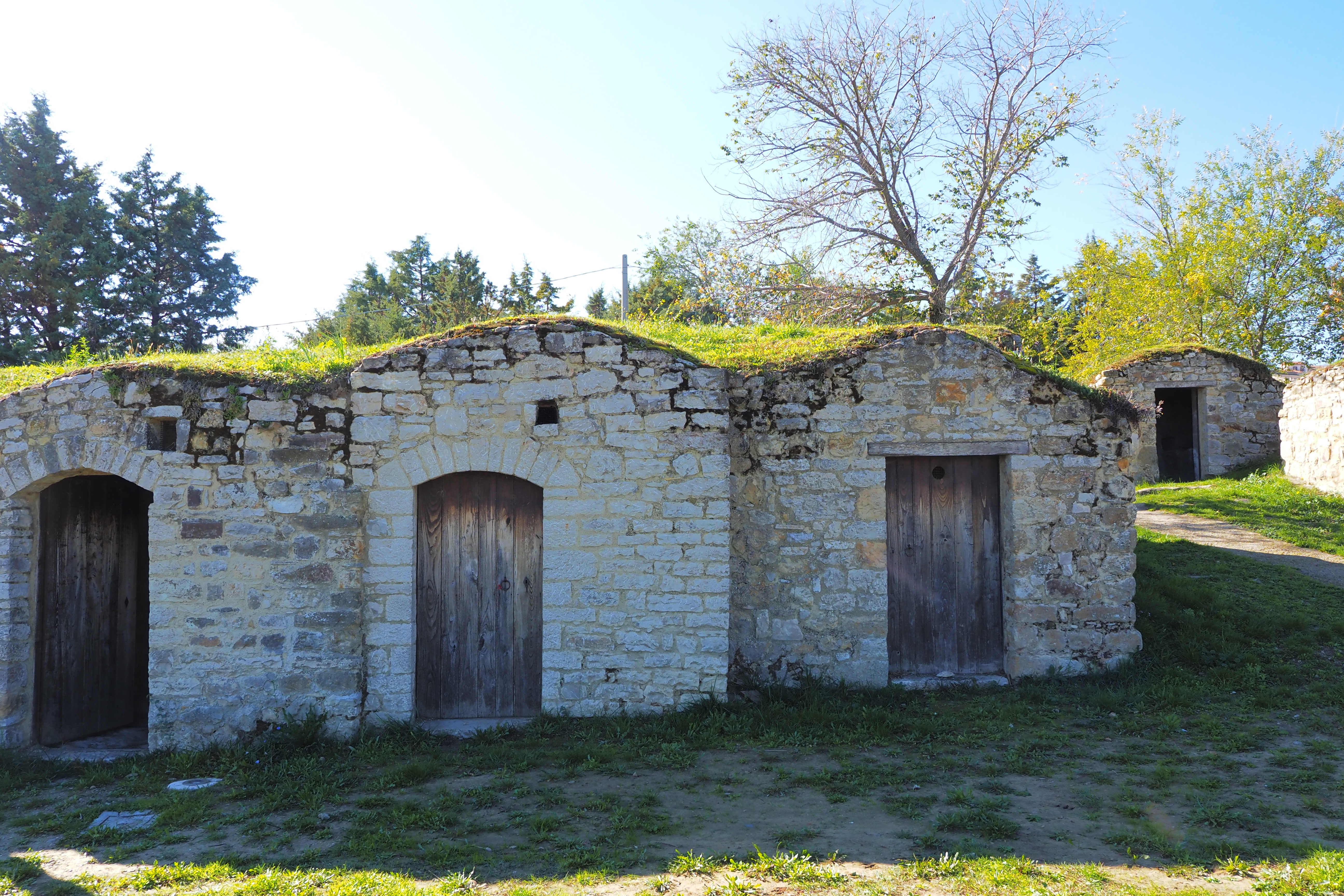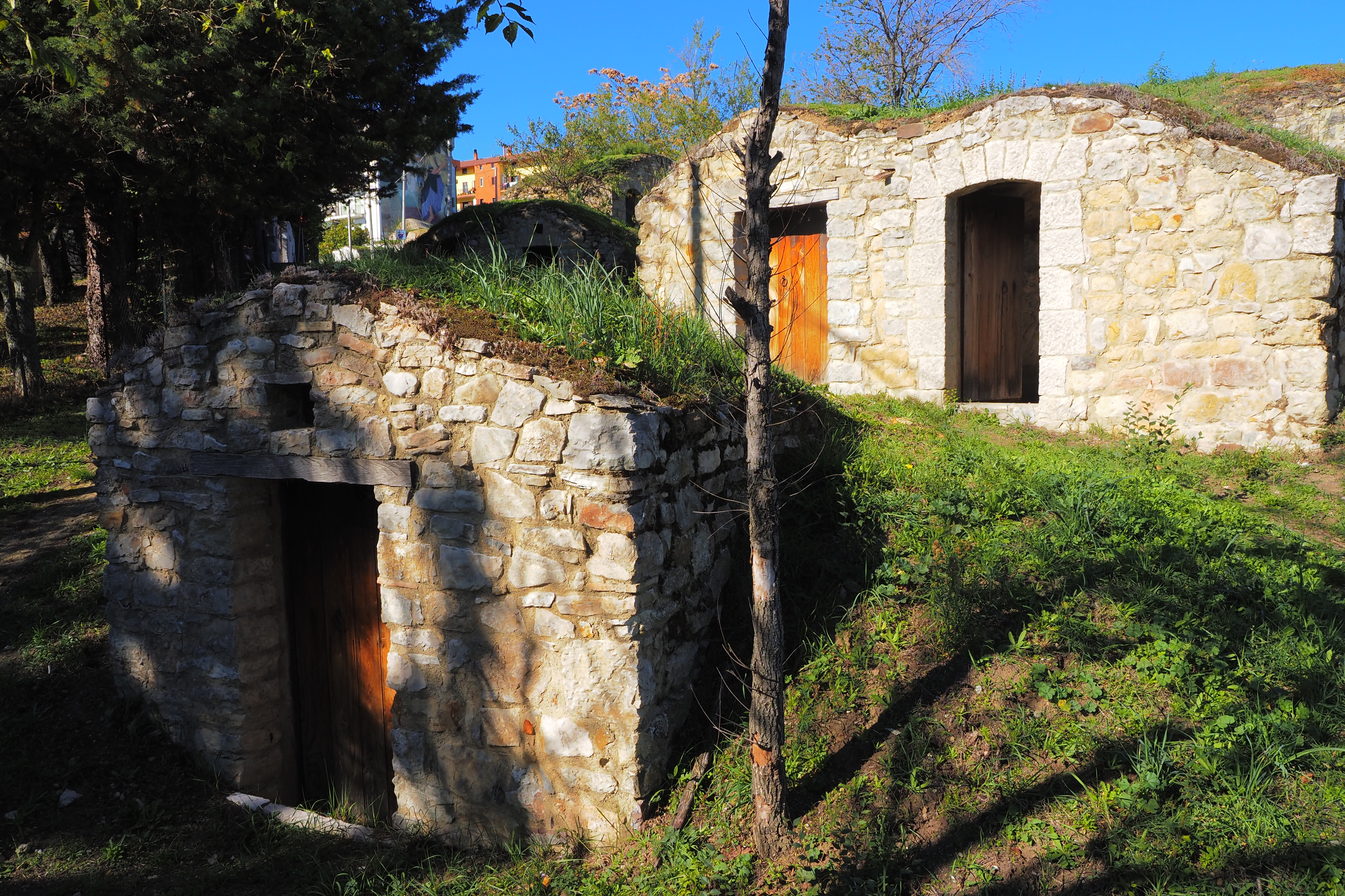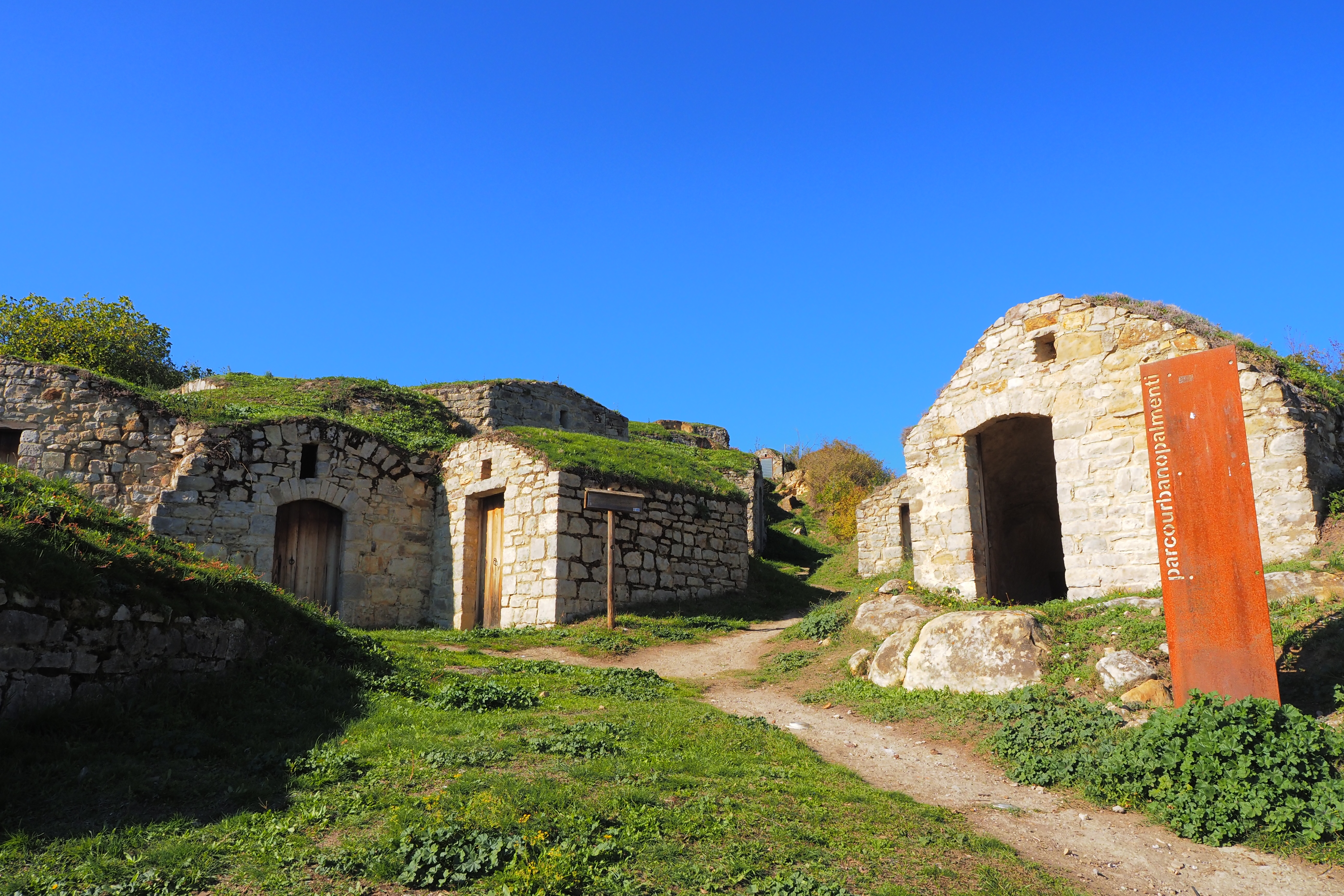 ここは、Parco Urbano dei Palmenti; パルメンティ都市公園 とよばれる一画で、芝張りの屋根をのっけた石造りの蔵が密集している。