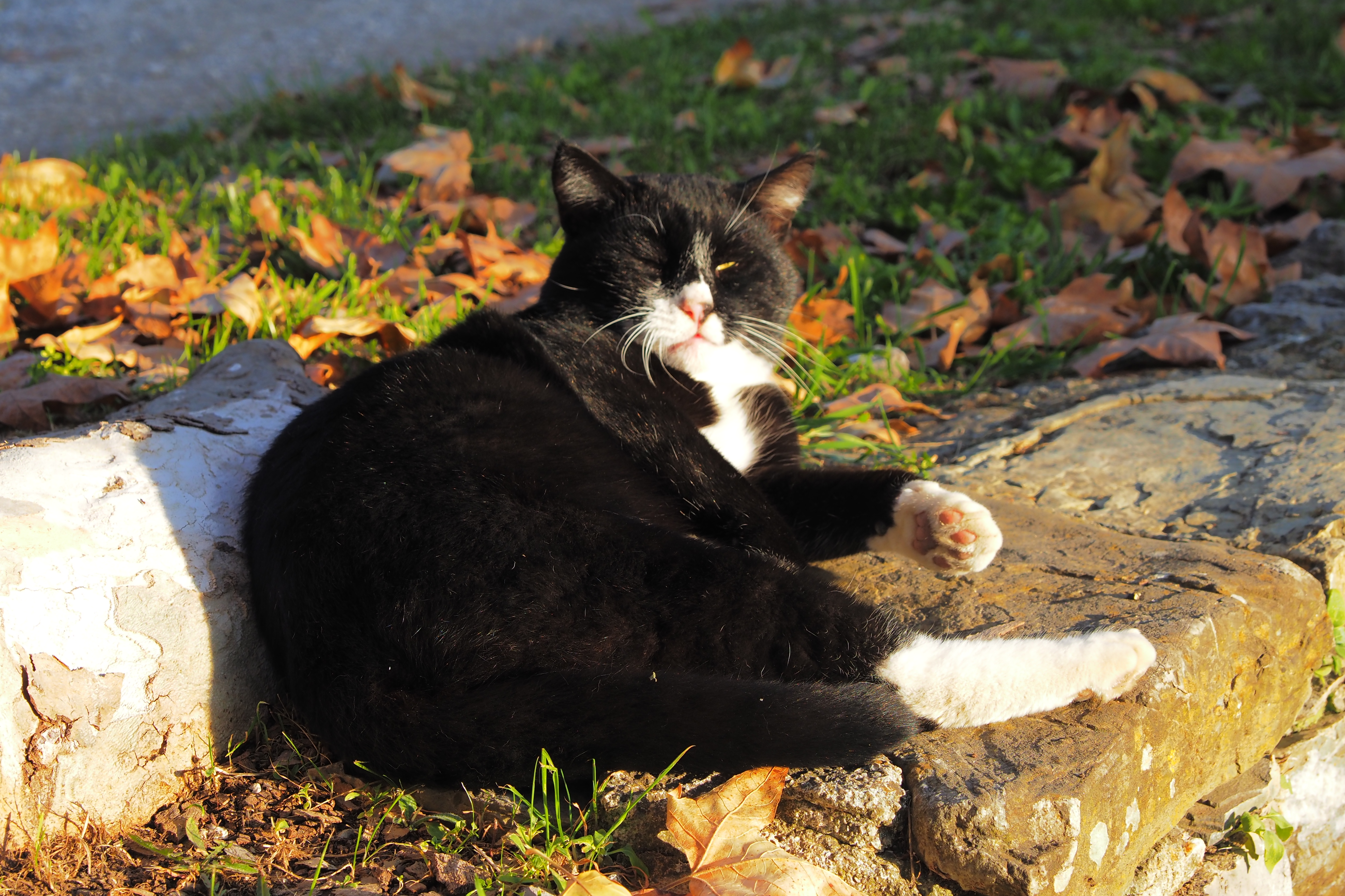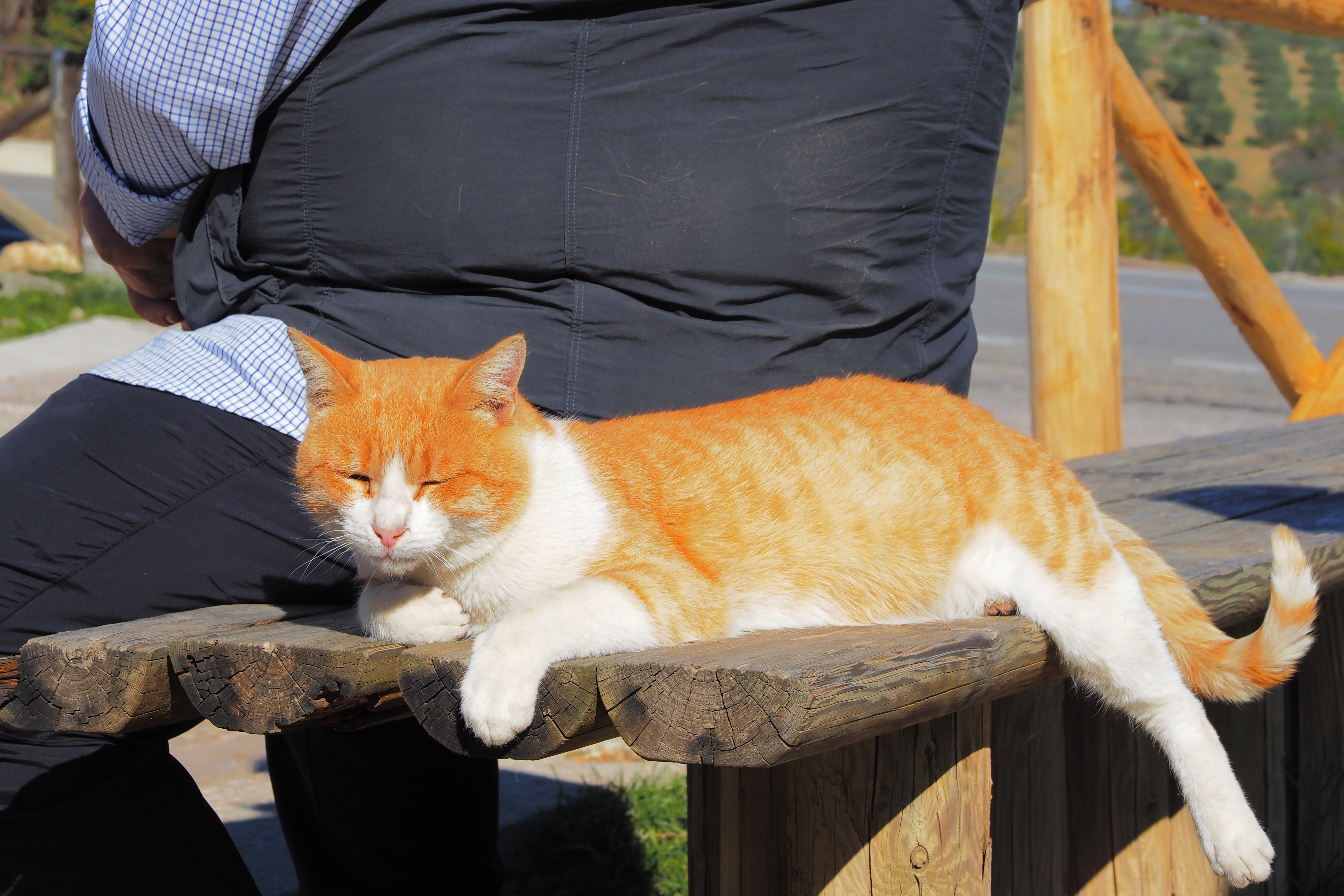 ドラゴンボールのカリン様みたいなデブ猫が、なんだぁおめぇはぁ? というような表情でこっちを見てる。