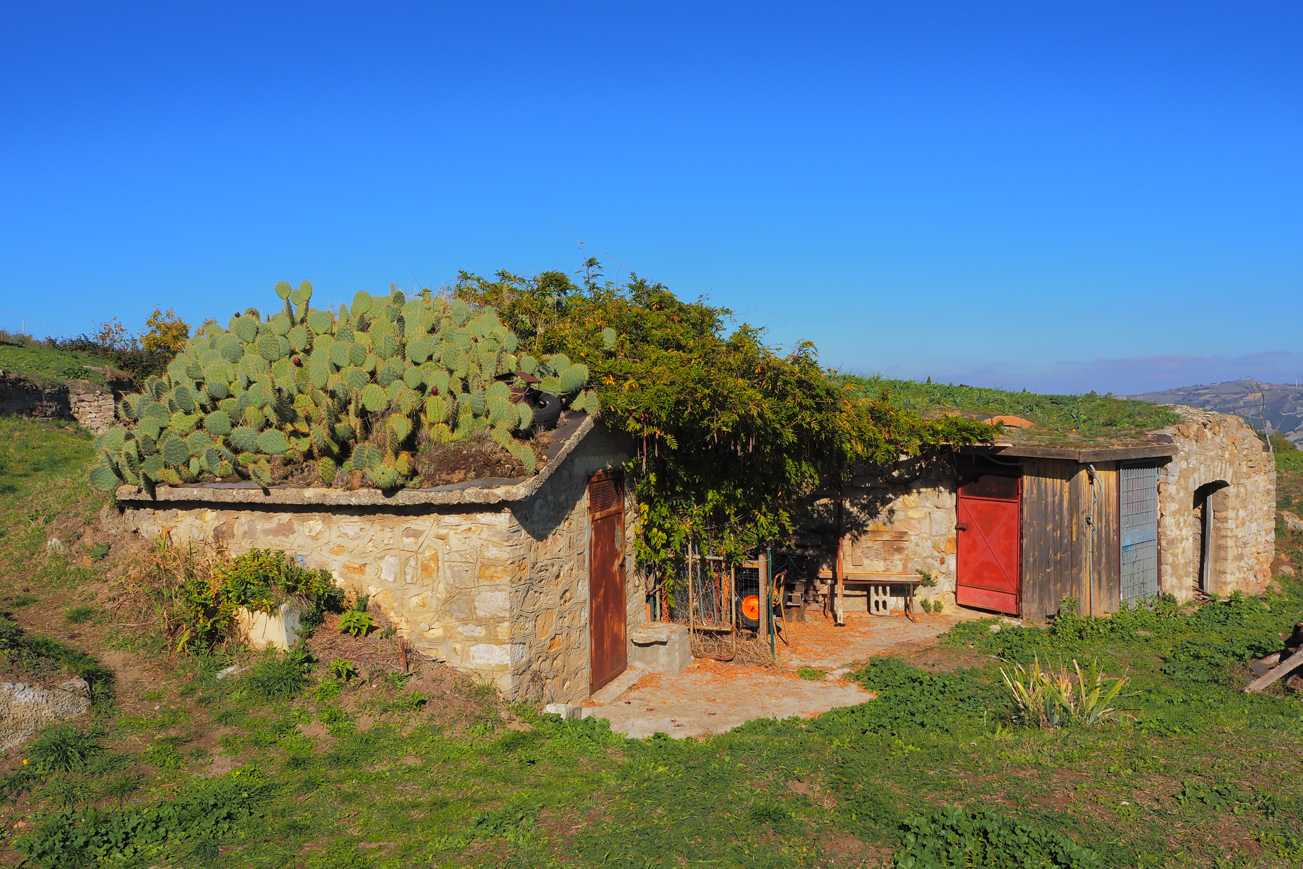 サボテンに覆われた屋根ってのも、なかなか他に類がなさそうな。