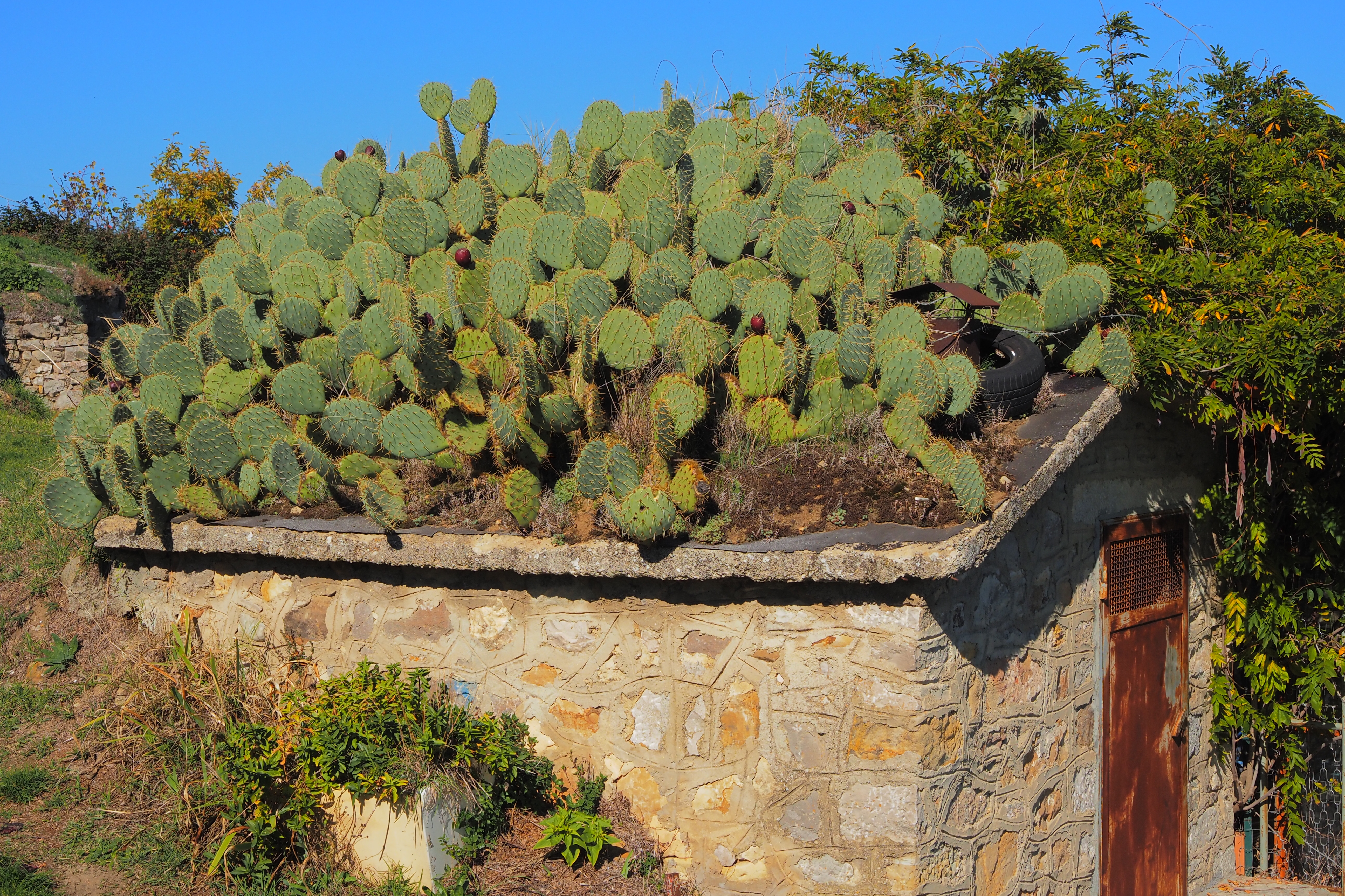 屋根に自生してるウチワサボテンたち。