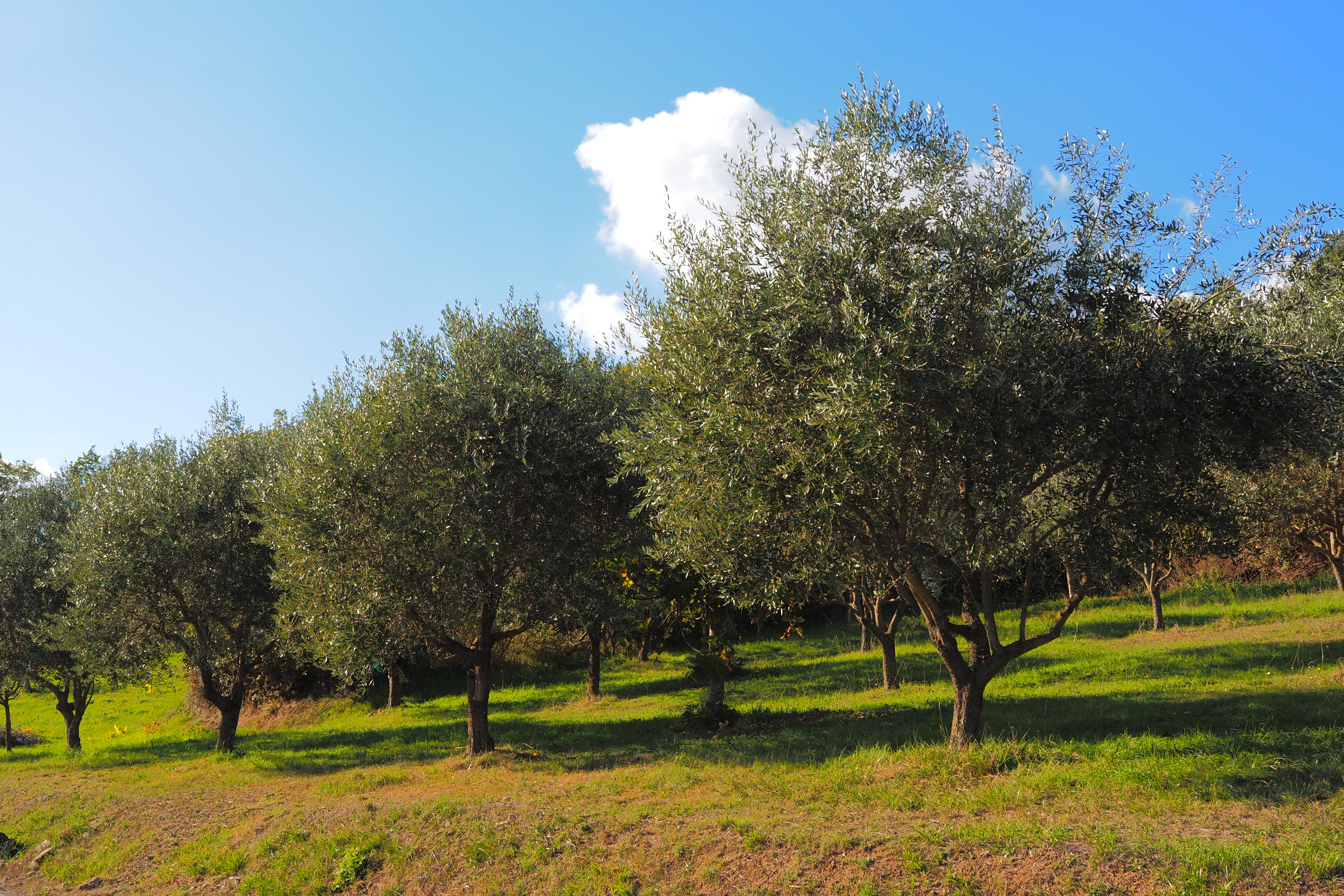 オリーブ畑とブドウ畑が連綿とつづくのをヘルメットの中から眺める。