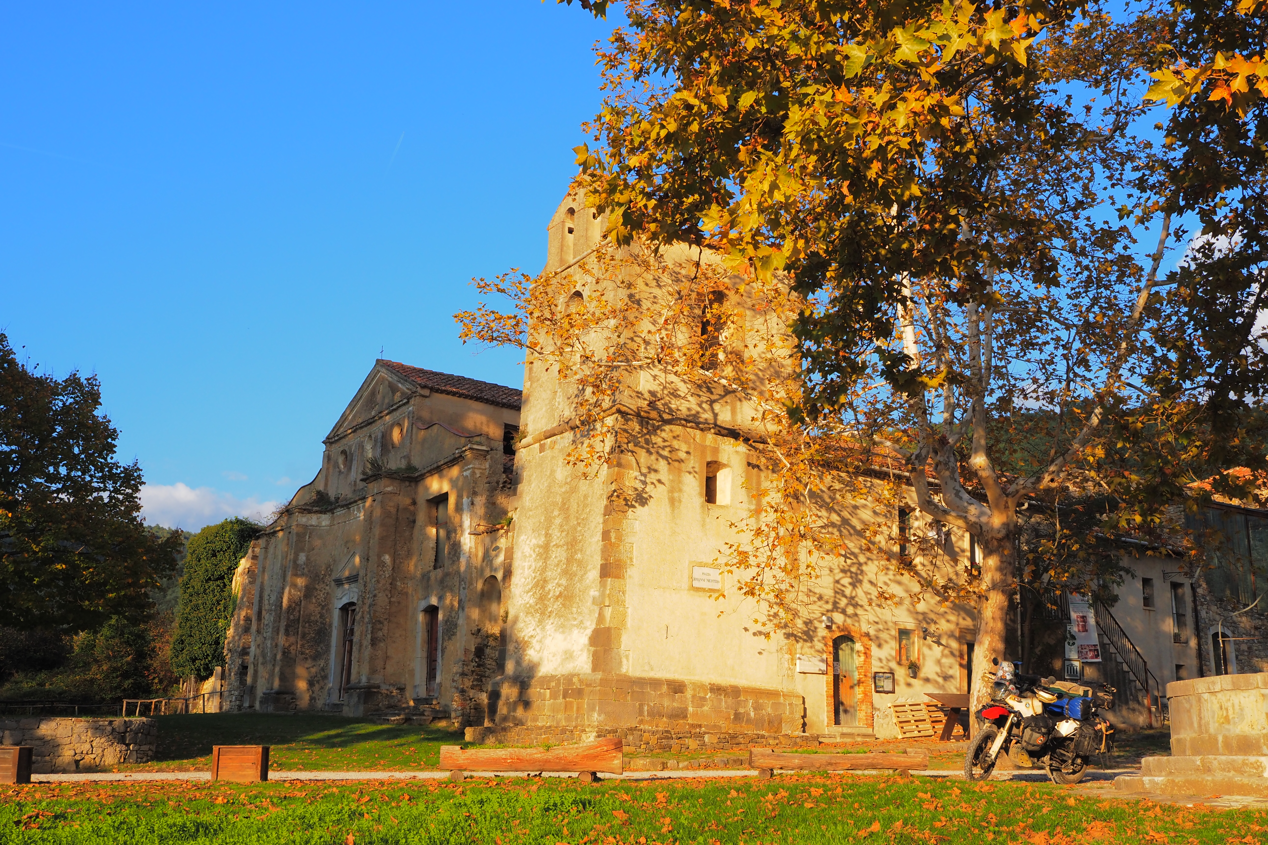 実はロシーニョ・ベッキアは世界遺産に登録されている Parco Nazionale del Cilento, Vallo di Diano e Alburni という国立公園の一部になっているから、基本的には野営不可なわけだけど、新市街にいた地元のおじいちゃんに身振り手振りでテント張っていいか と聞くと、「だーれも気にしねぇよ~」という感じだった、あくまで希望的観測だけど そんな感じだったから 野営させてもらうことにした。