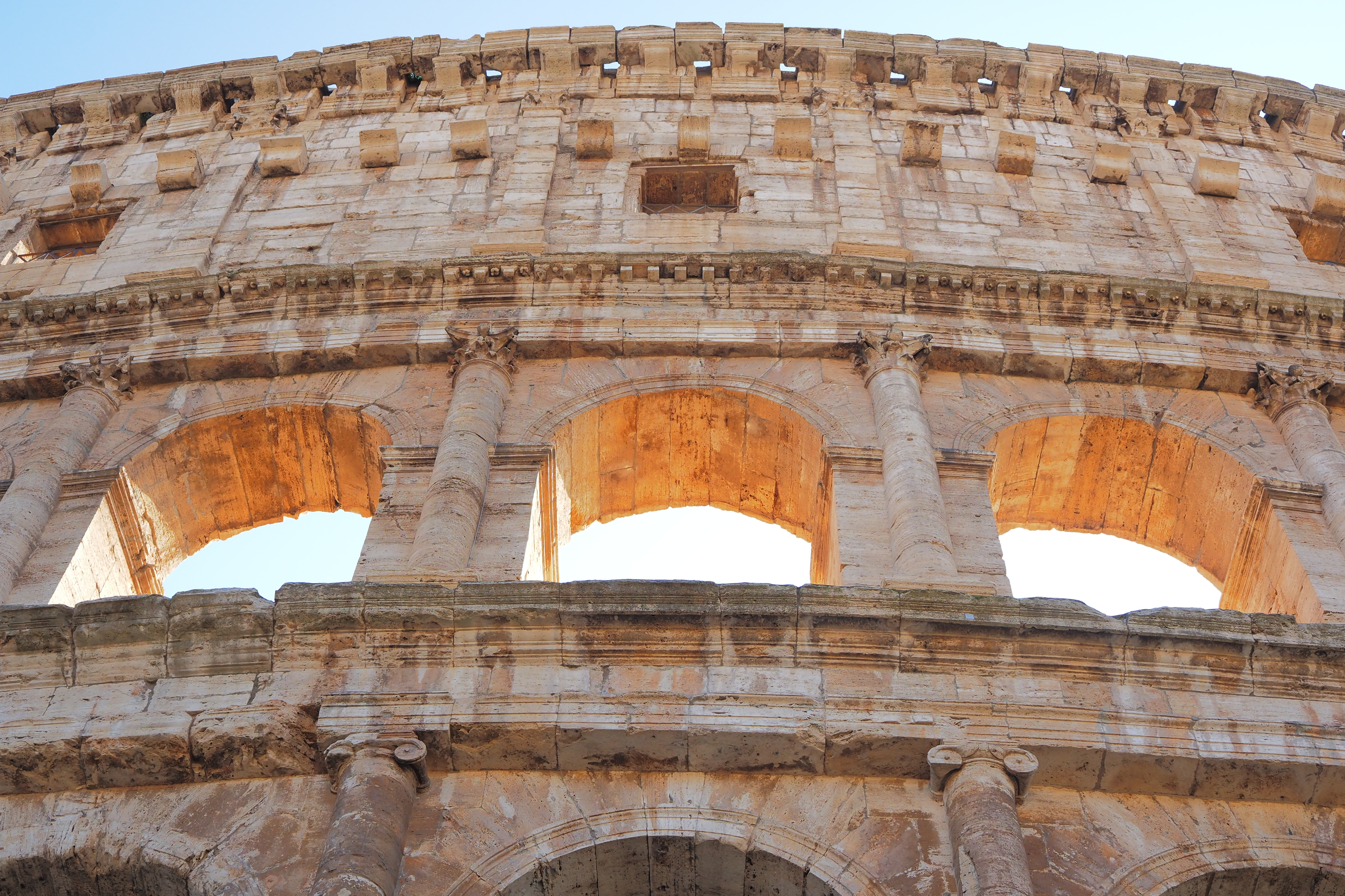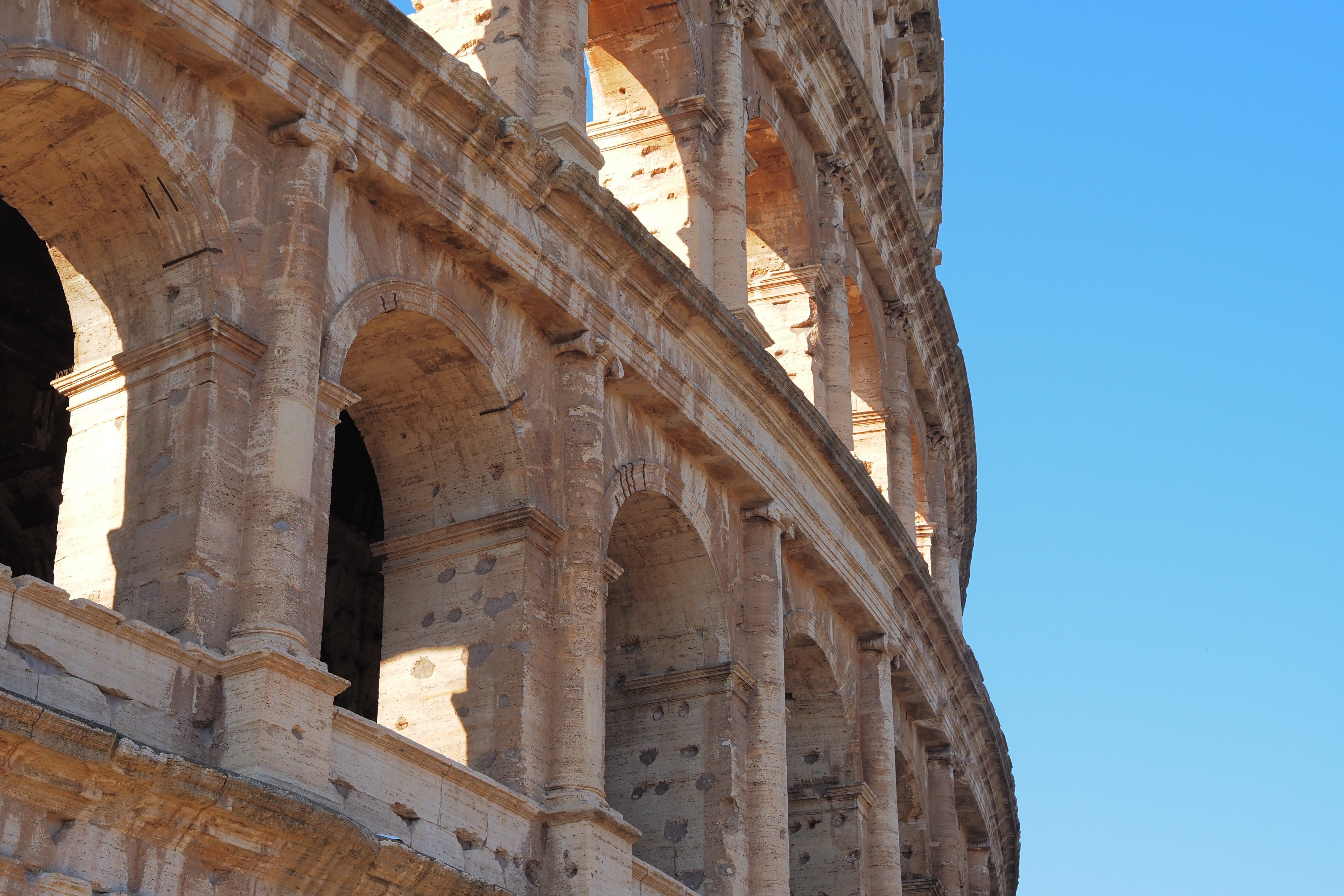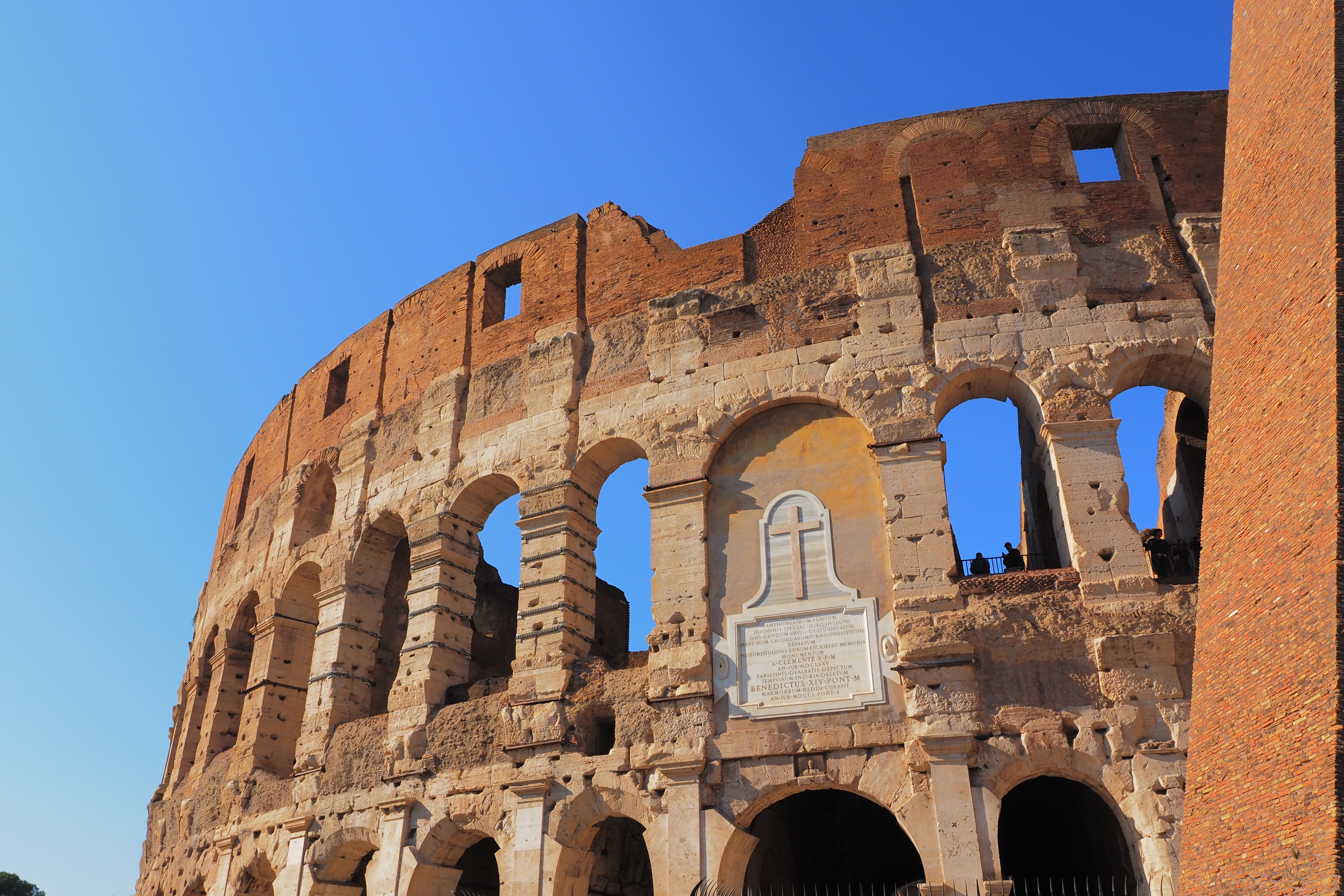 80年頃に完成したコロッセオ、地中海沿岸部に数百現存する類似のローマ期闘技場の中でも、その規模や建築的な秀逸性、象徴性というあらゆる点で頂点とされている。