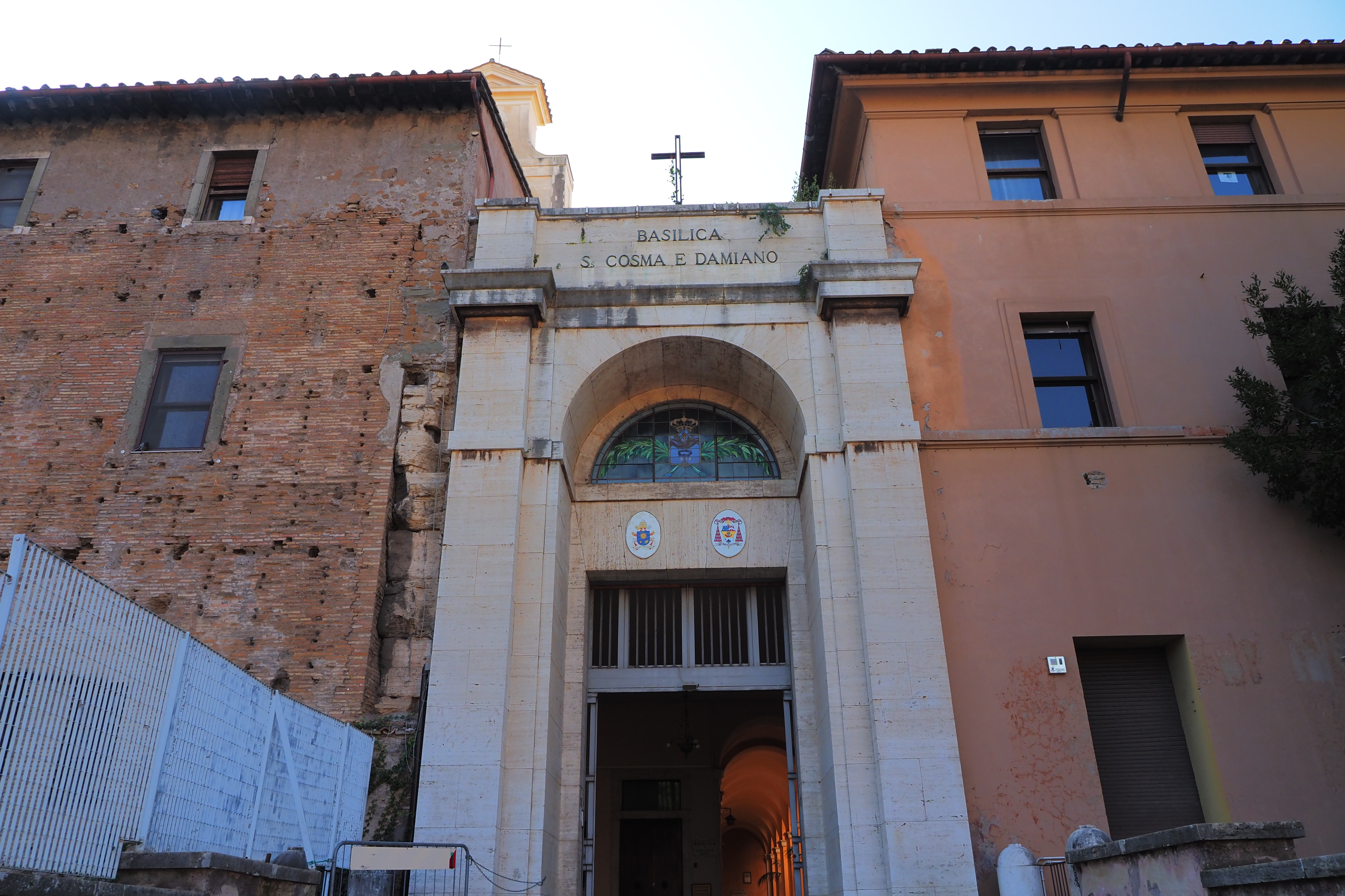 向かい方向左手に出てくる路地奥に Basilica dei Santi Cosma e Damiano がある。
