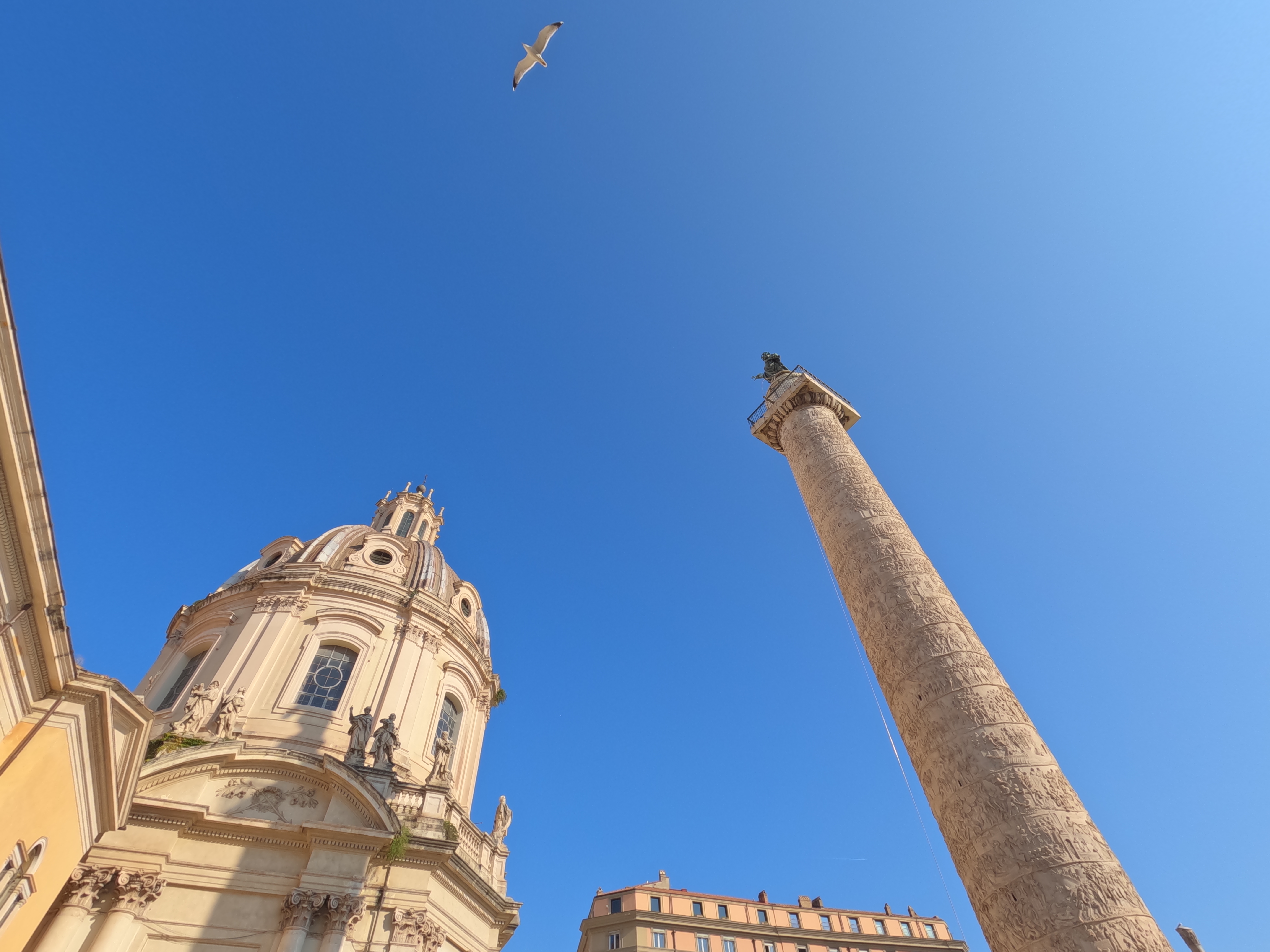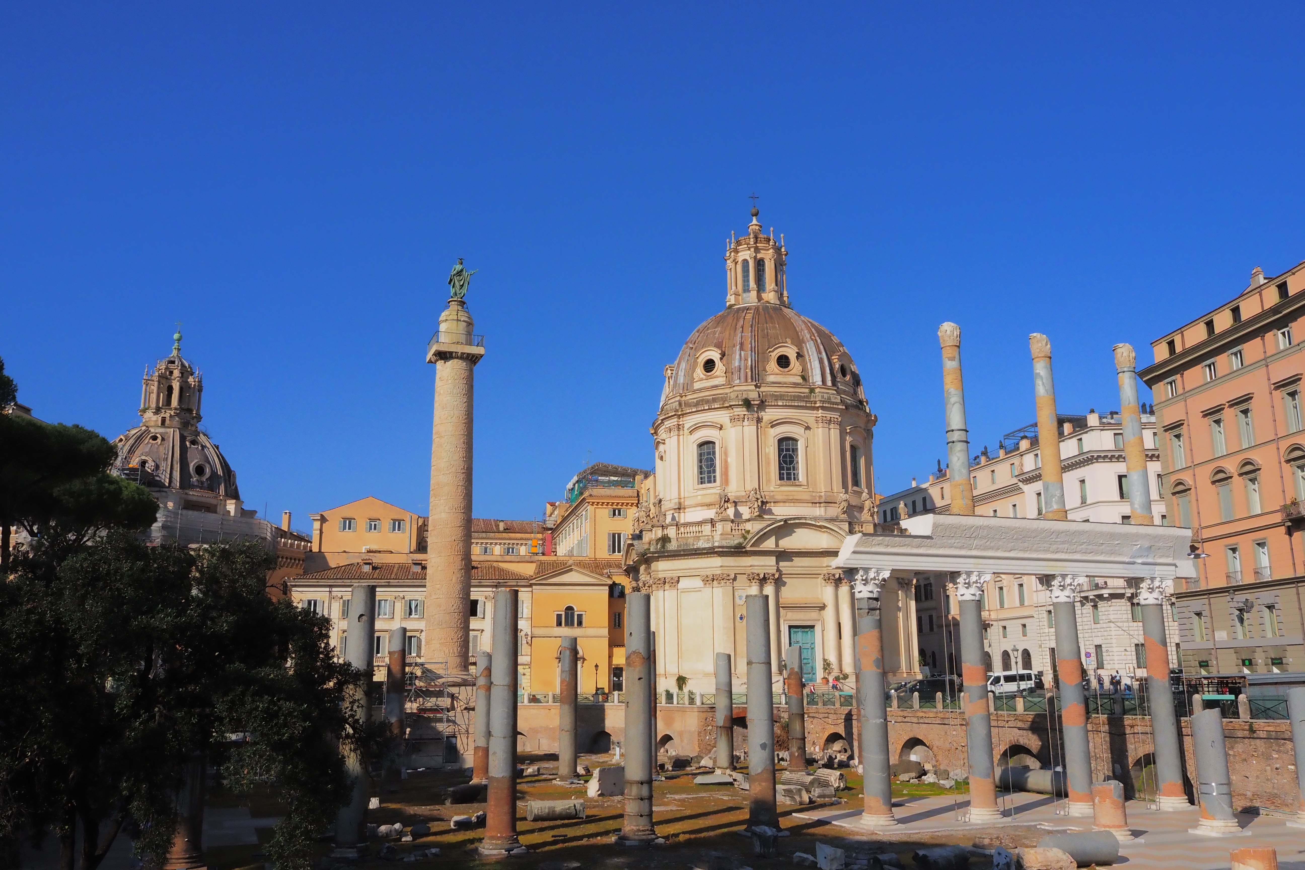 Trajan’s Column; トラヤヌスの柱 と Chiesa del Santissimo Nome di Maria; 聖マリア聖名教会 が聳え建っている。