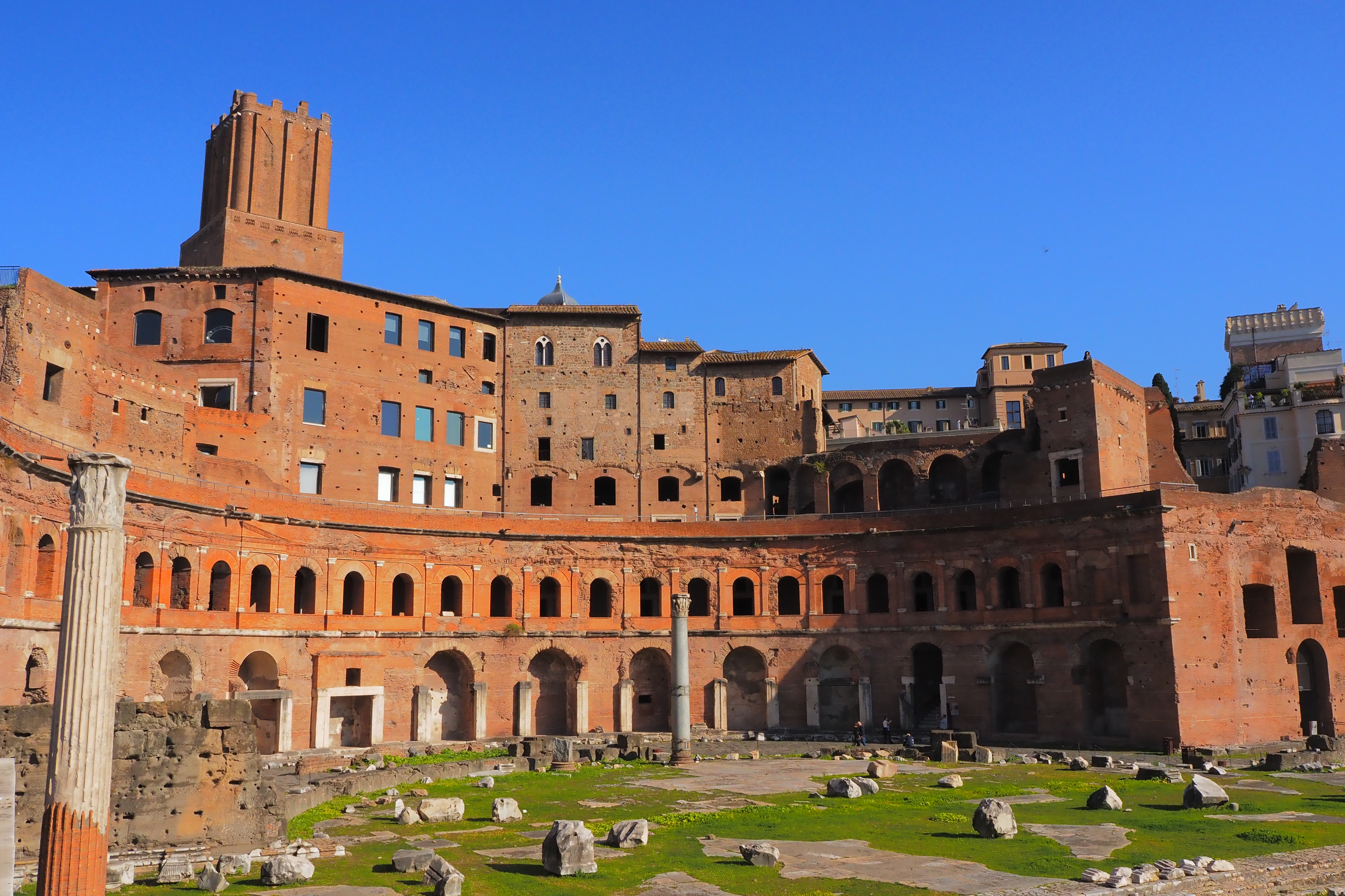 トラヤヌス広場の Basilica Ulpia(106~113年頃) や 世界最古のショッピングセンターといわれる Mercati di Traiano Museo dei Fori Imperiali などの遺構が左右に広がり、