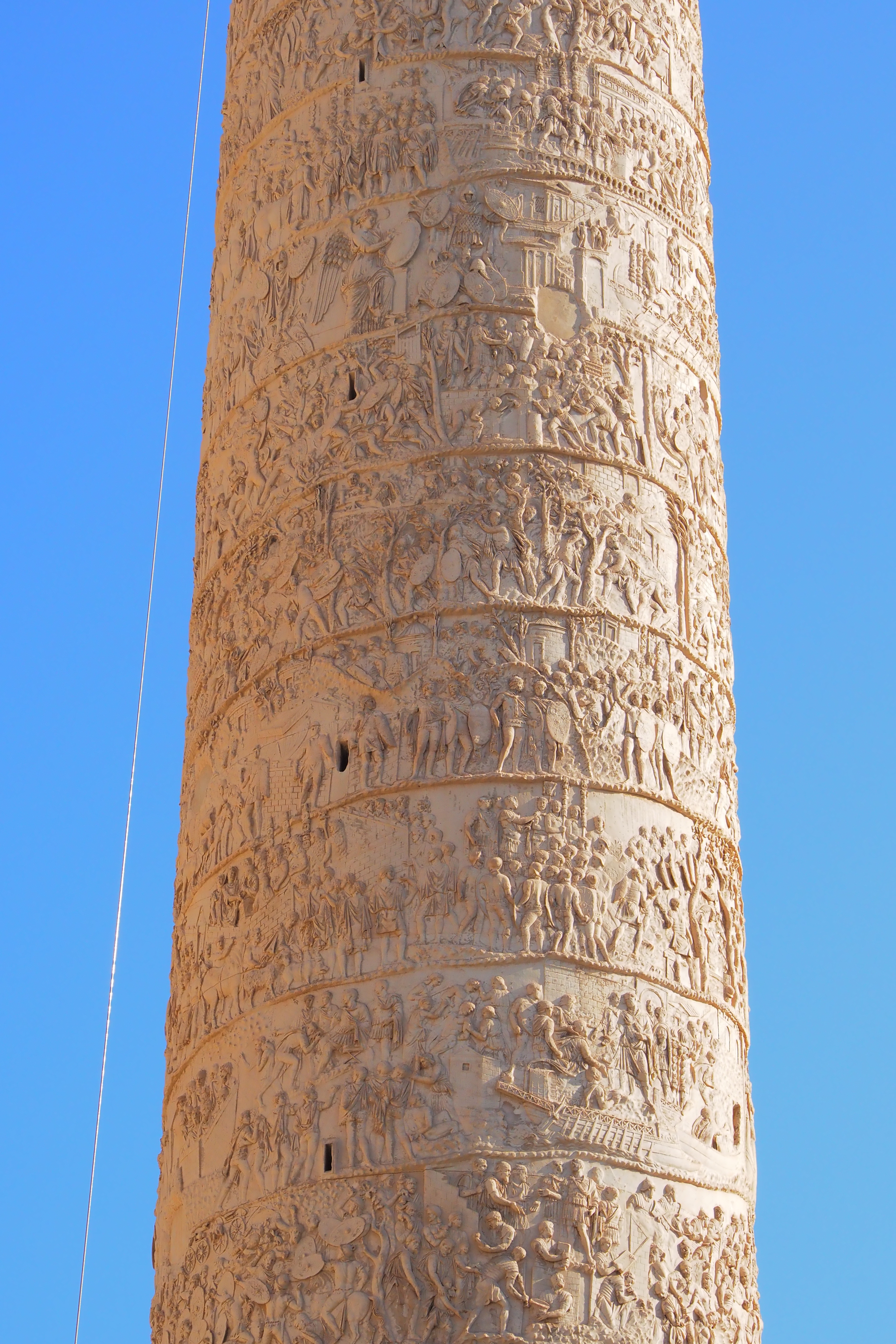 トラヤヌス帝のダキア遠征成功を記念して113年に建てられた記念柱の外周には 引き延ばすと全長200mにもなるレリーフが彫られている。