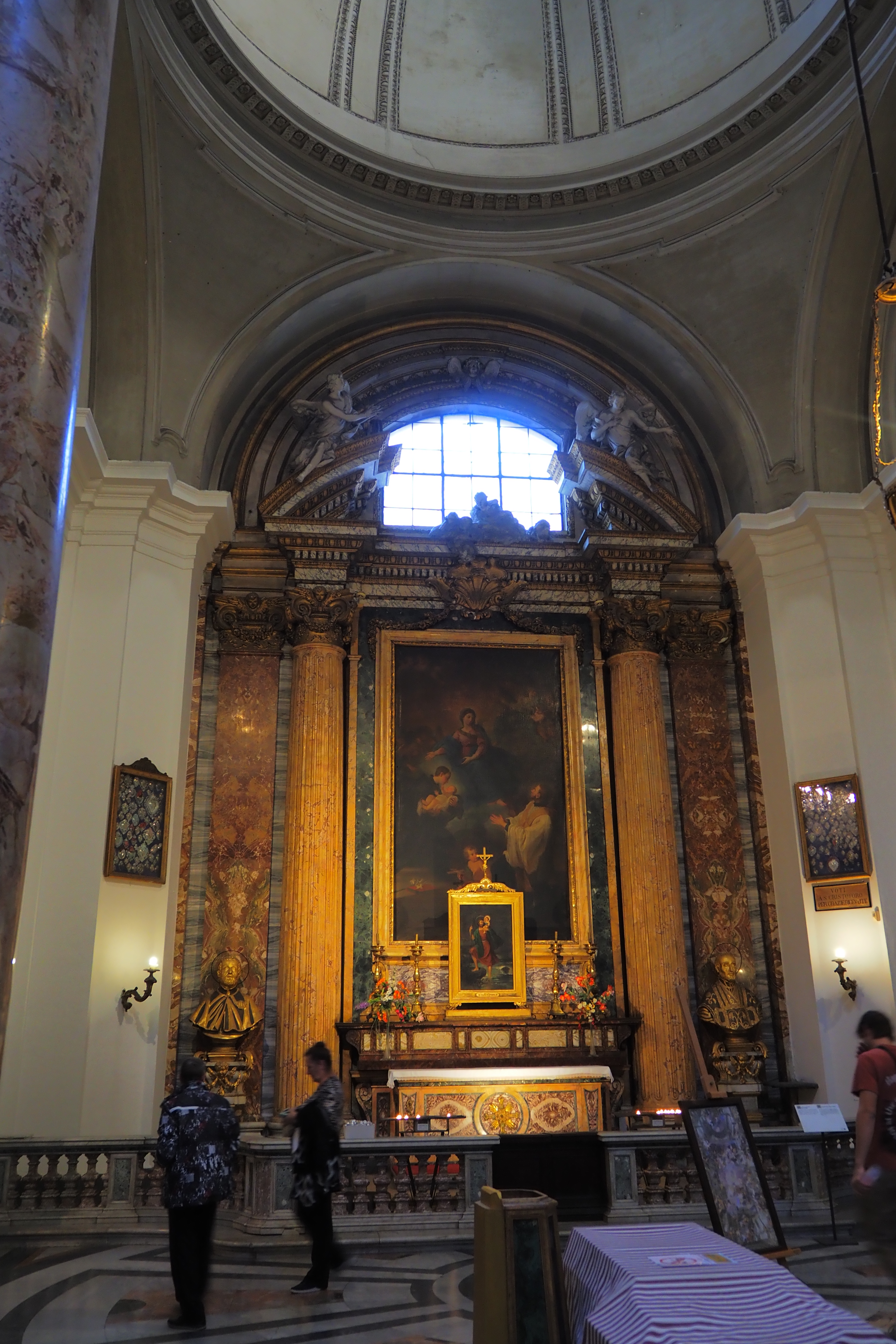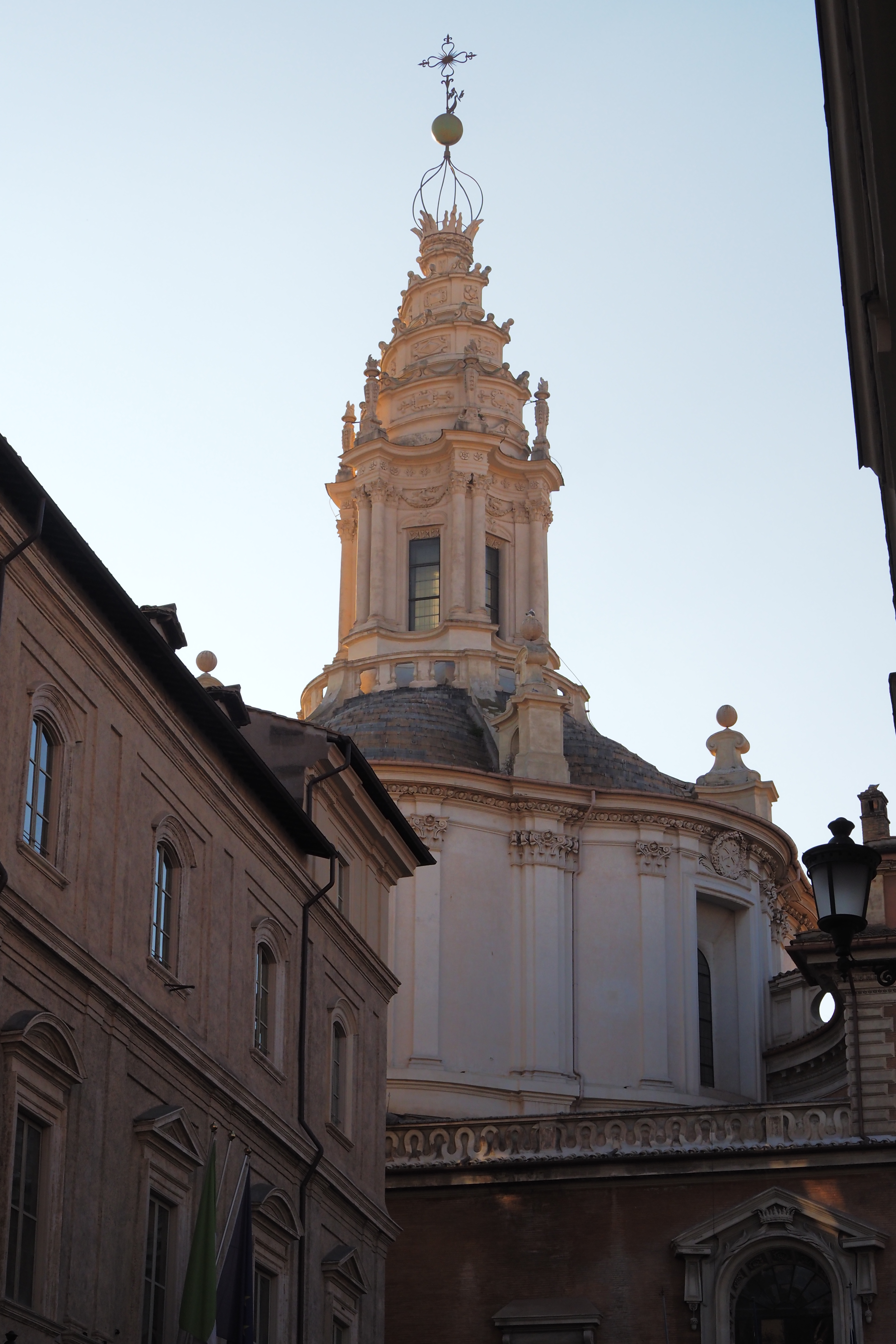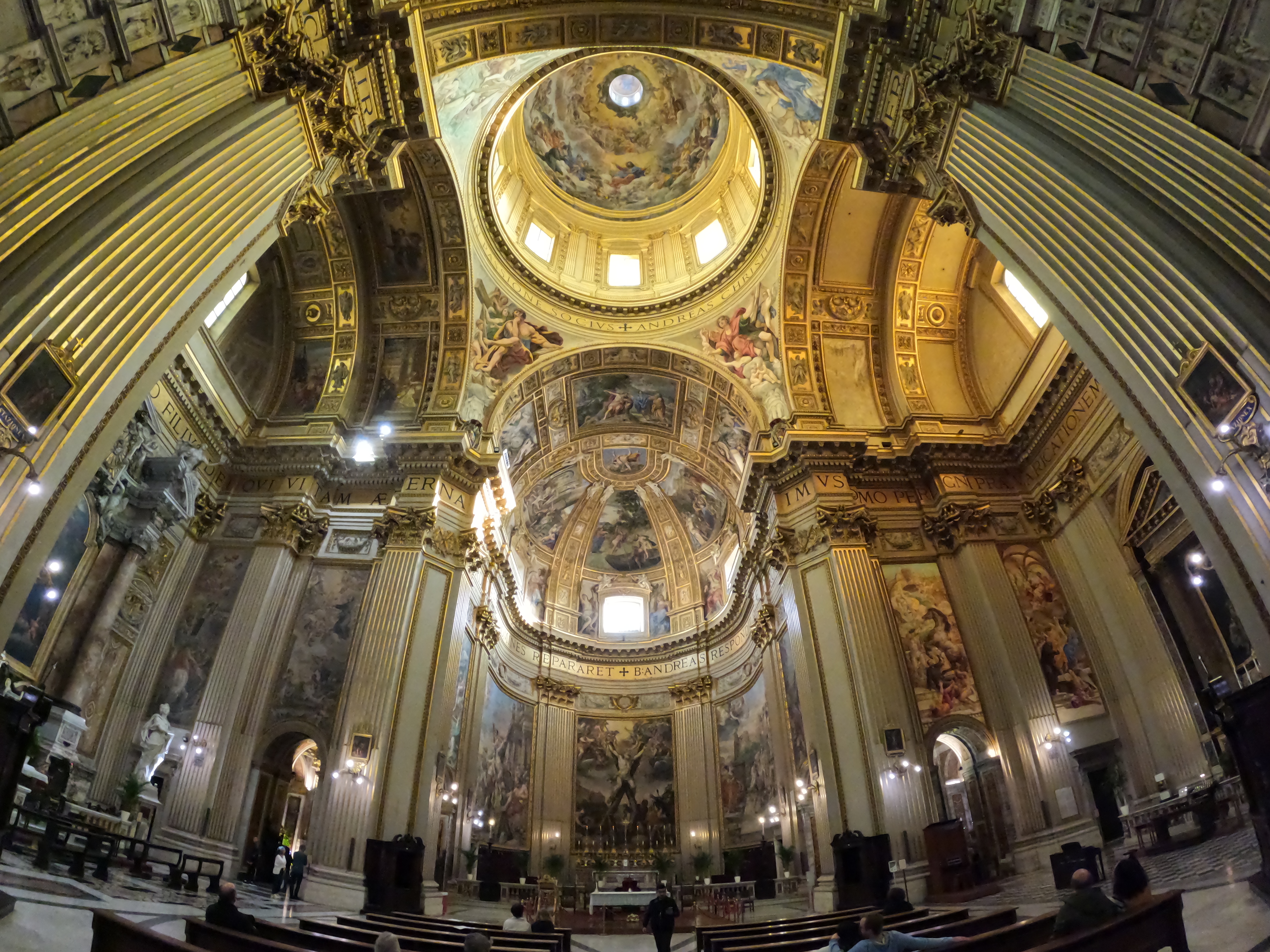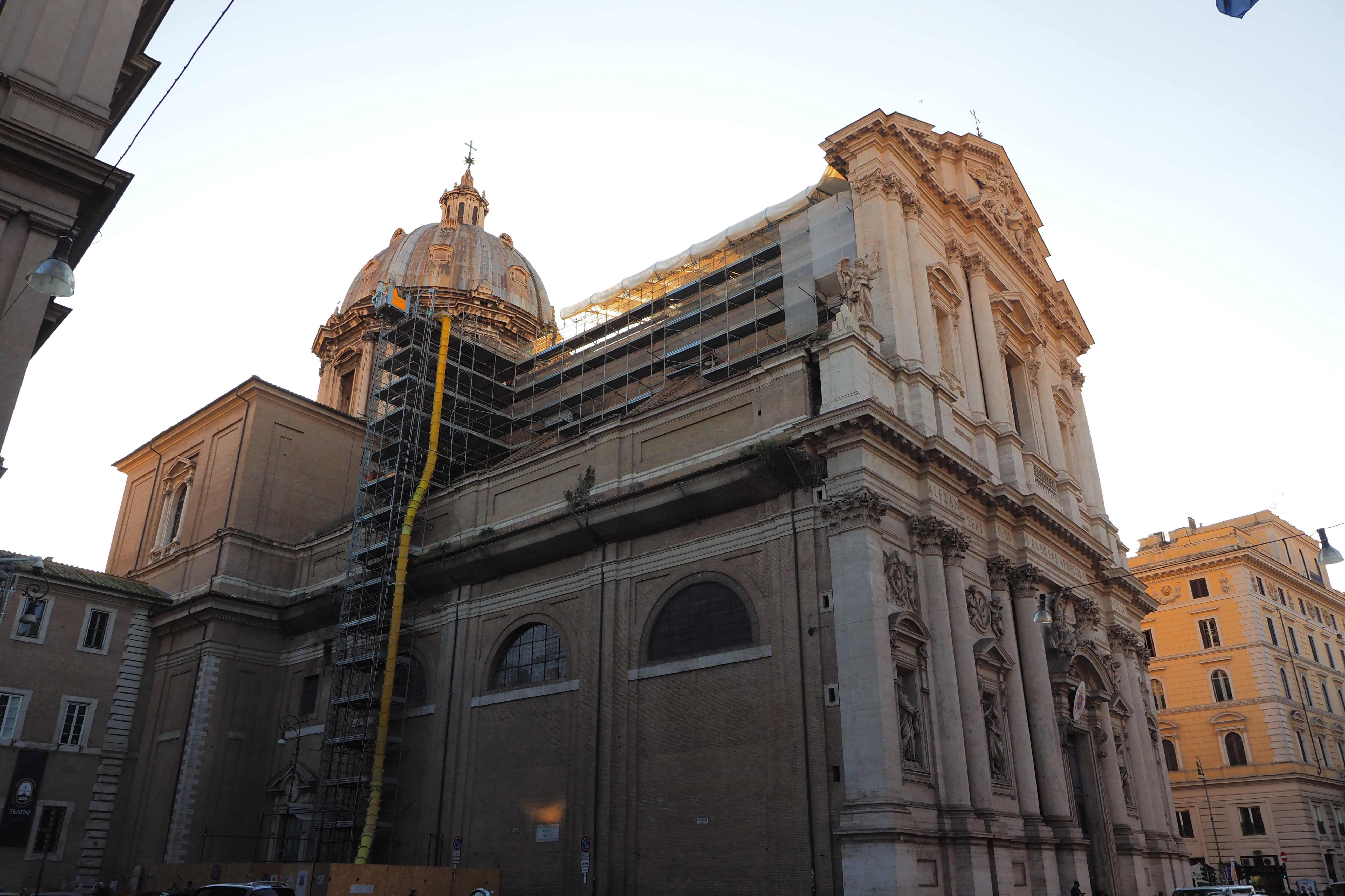 1591~1650年頃にかけてつくられたバロック様式の教会。東側には修復の足場が組まれてたけど、その奥に見えるドームは サンピエトロ大聖堂に次いでローマで2番目に高いドームらしい。