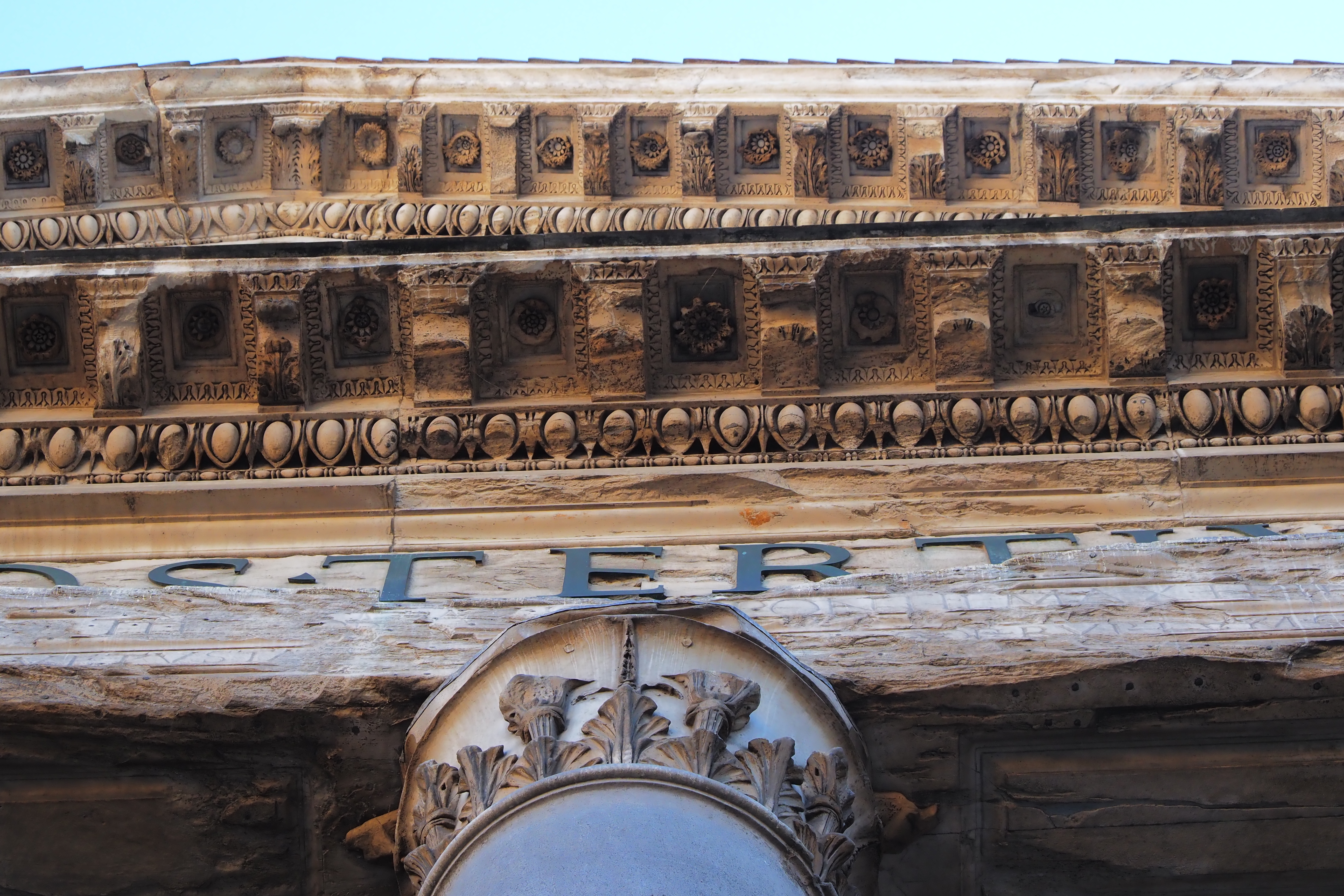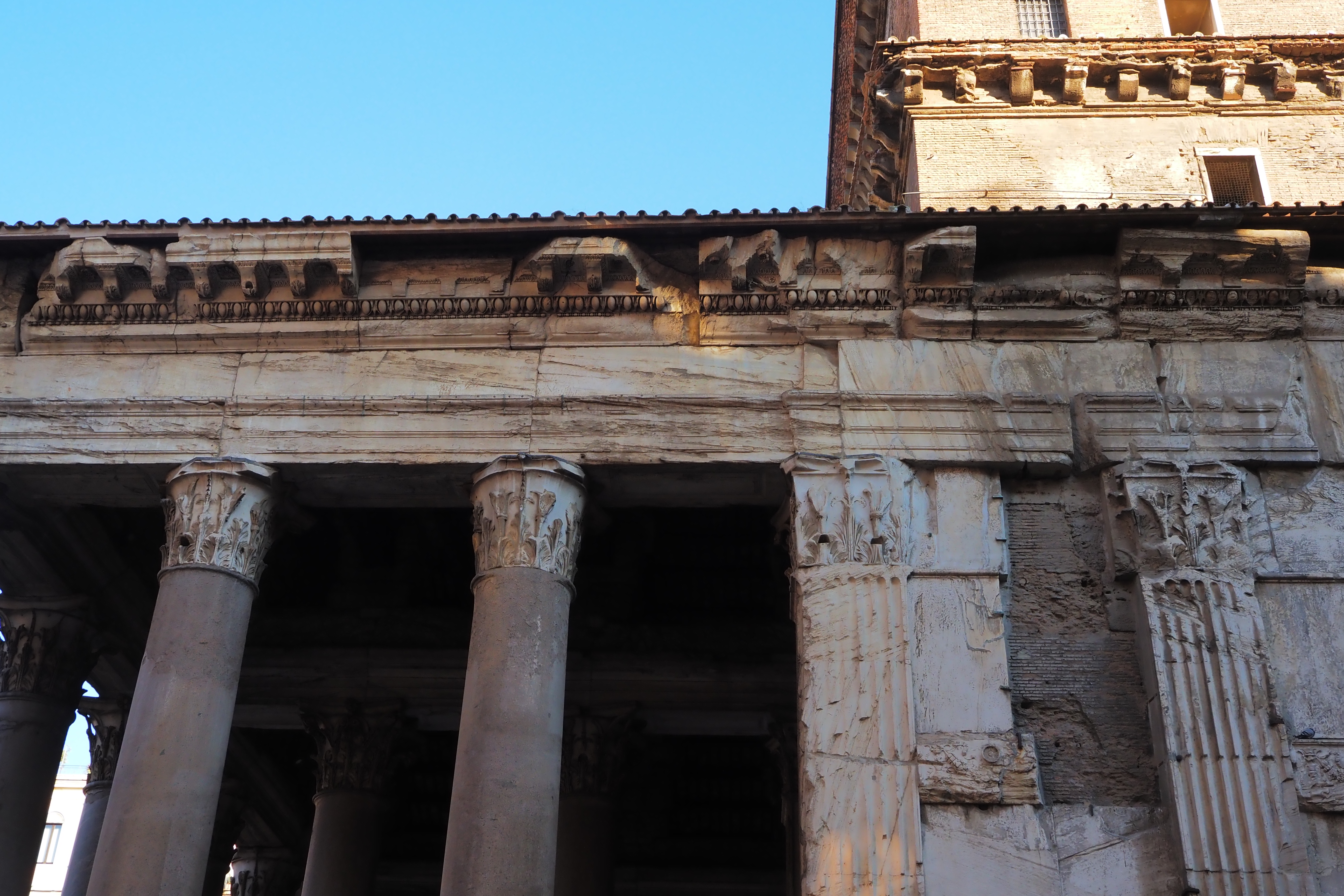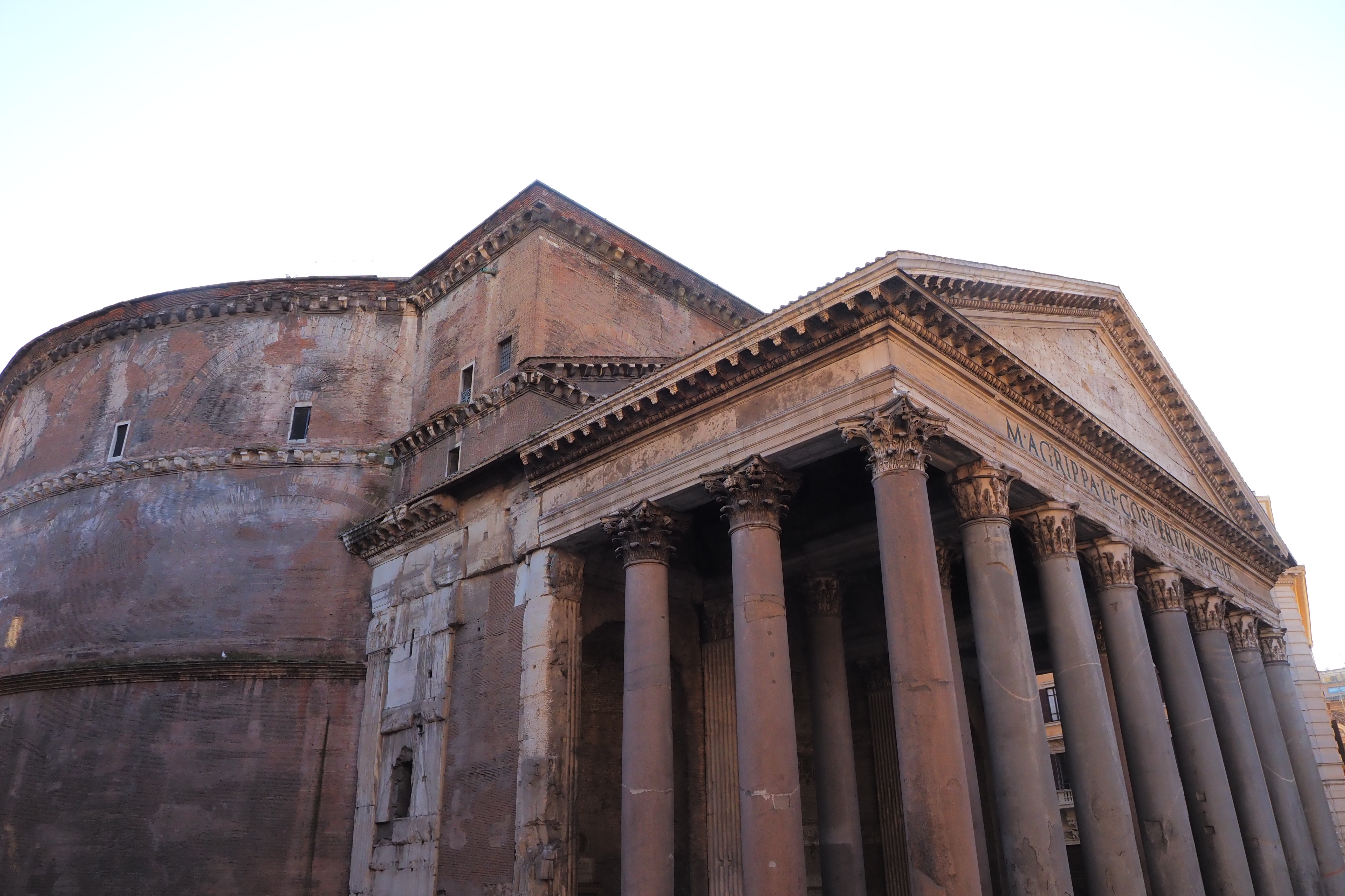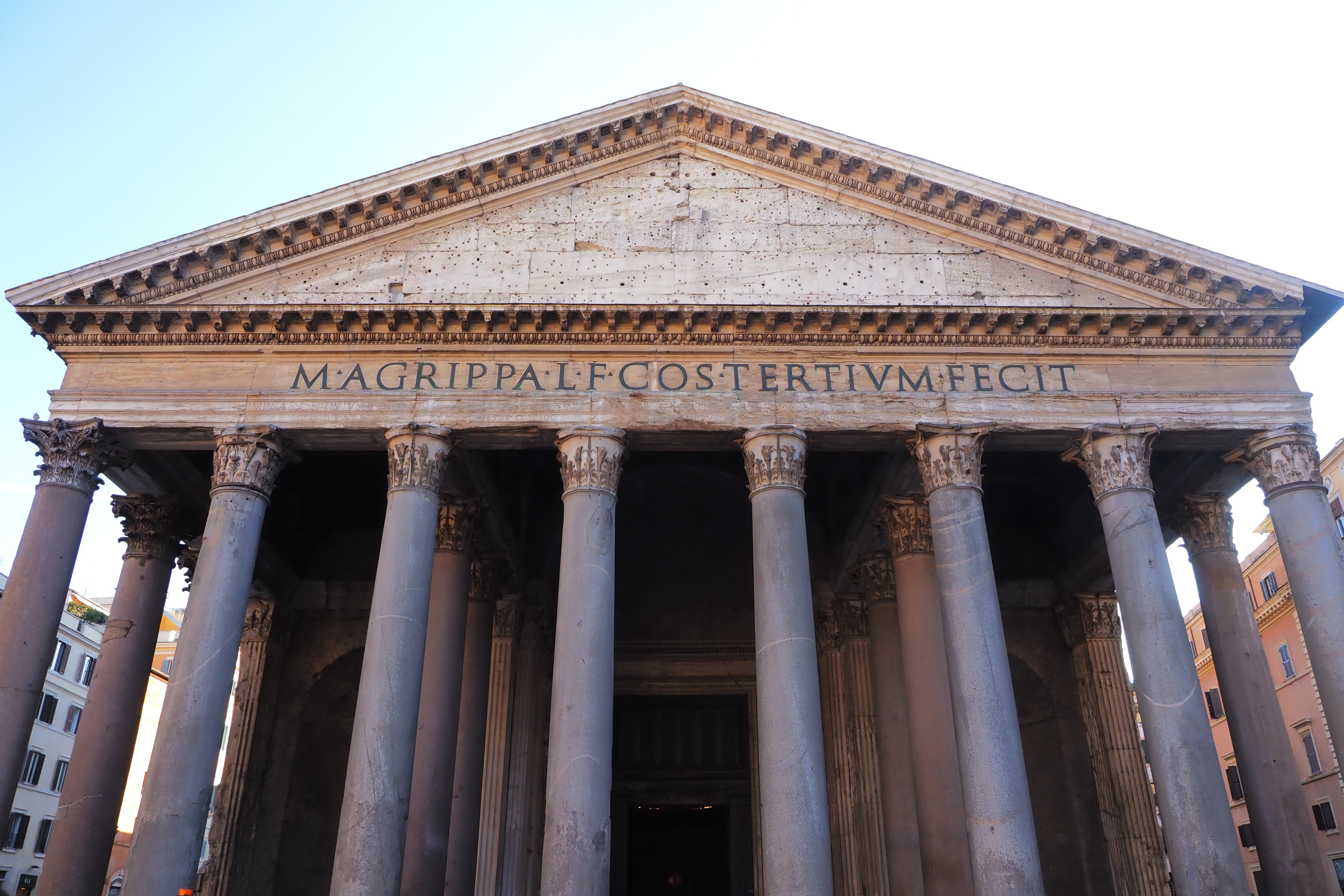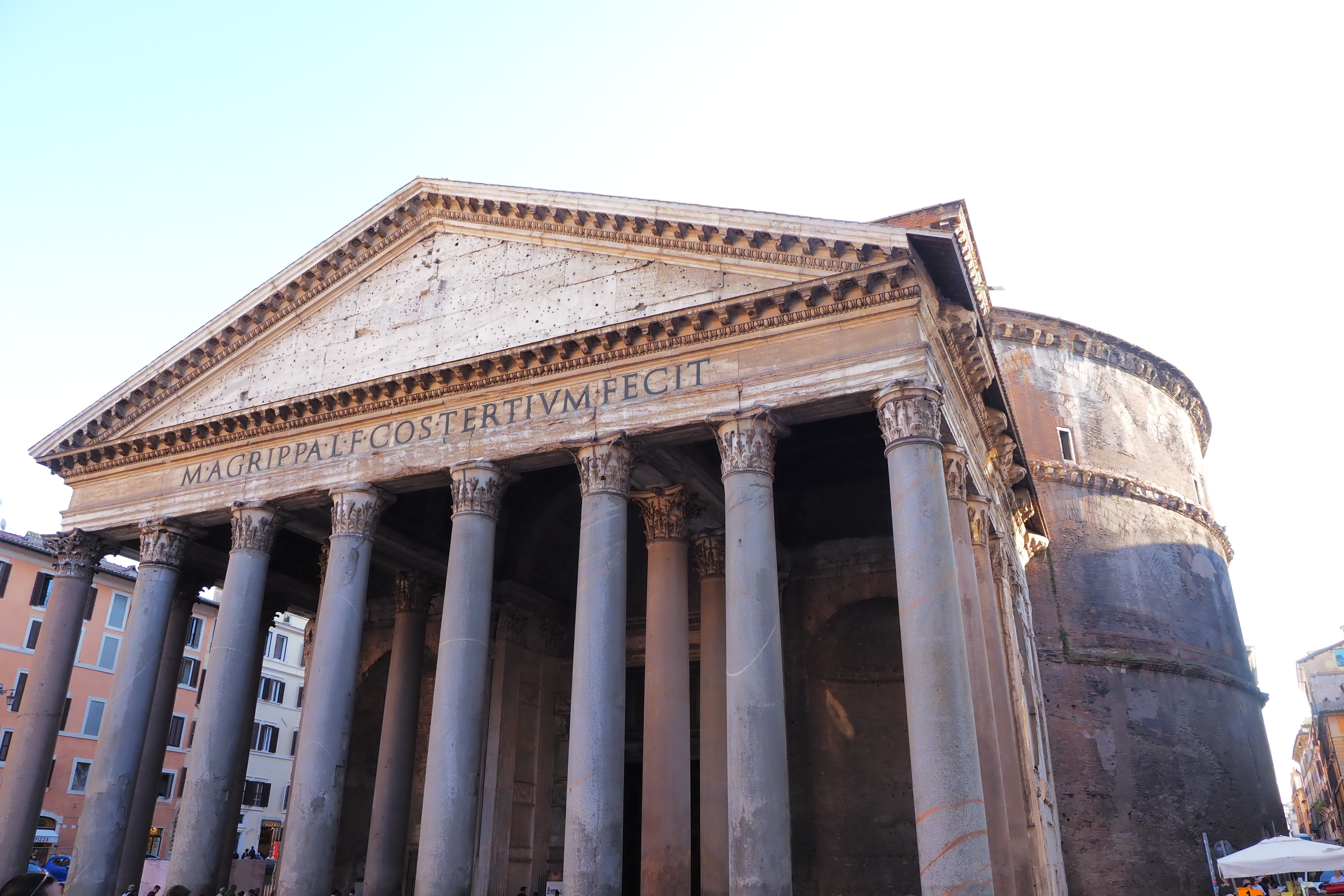 もともと Marcus Vipsanius Agrippa; アグリッパによって紀元前25年頃に建てられたものが焼失、118~128年にハドリアヌス帝によって再建されたものが今でもほぼ完全な状態で残る奇跡的な建造物だ。