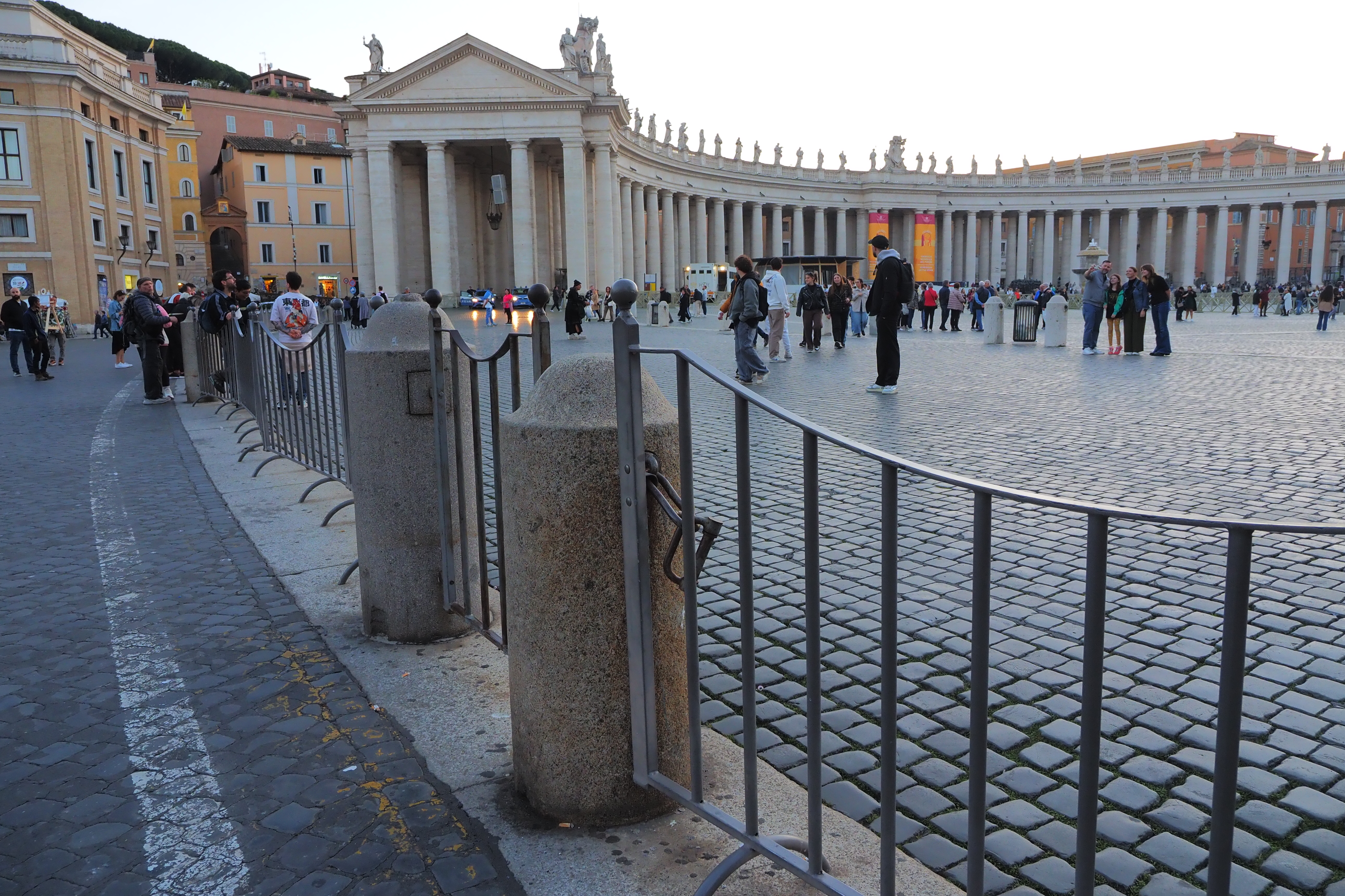 この柵から向こうが、れっきとした独立国家であるバチカン市国の領土内で 国際法上も「越境」して広場内へと入って行く。