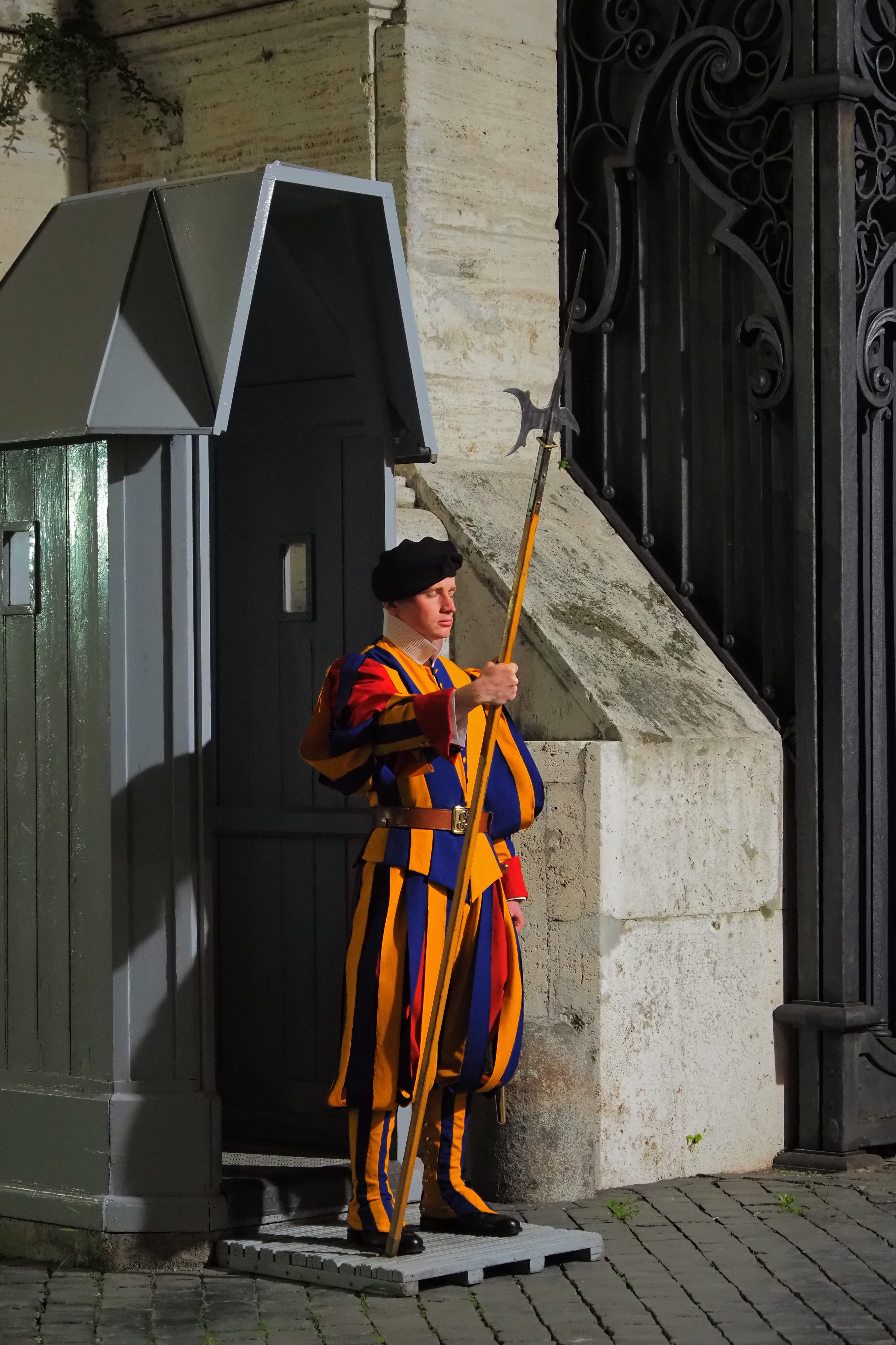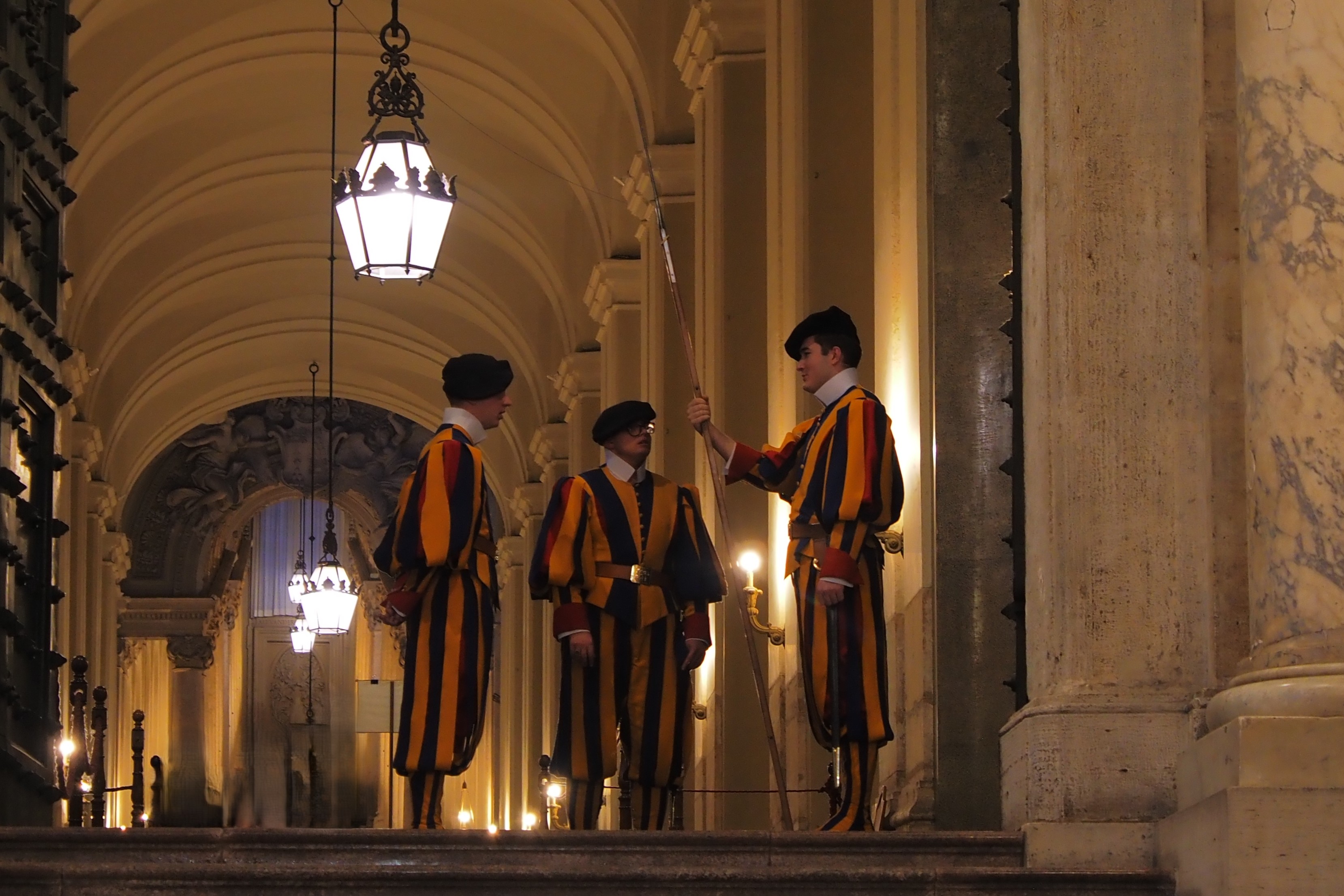 1505年に当時の教皇ユリウス2世がスイス衛兵を雇った事にはじまり、1527年に起きた神聖ローマ皇帝によるローマ侵略の際も 当時の教皇クレメンス7世を守るため最後まで戦ったことから、今でもスイス兵がバチカンを守っている。