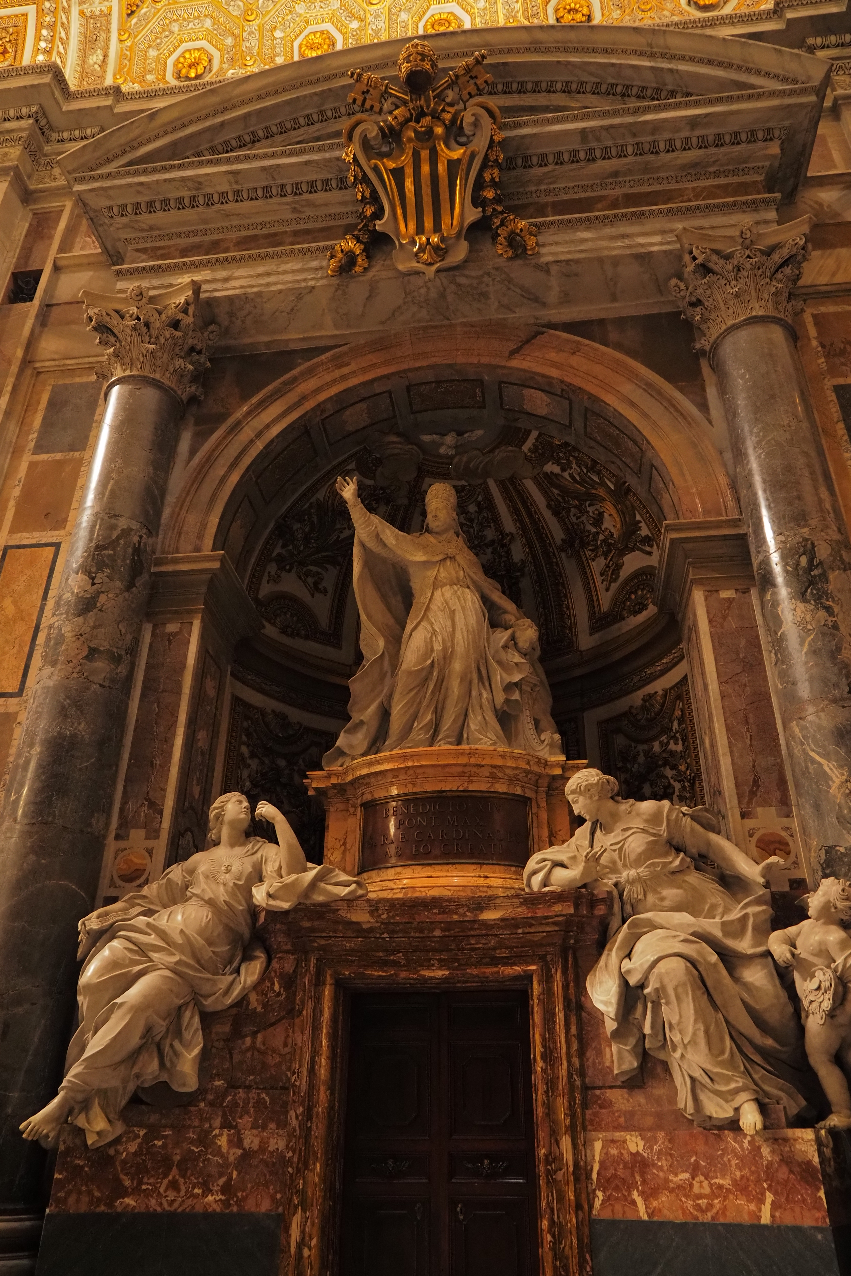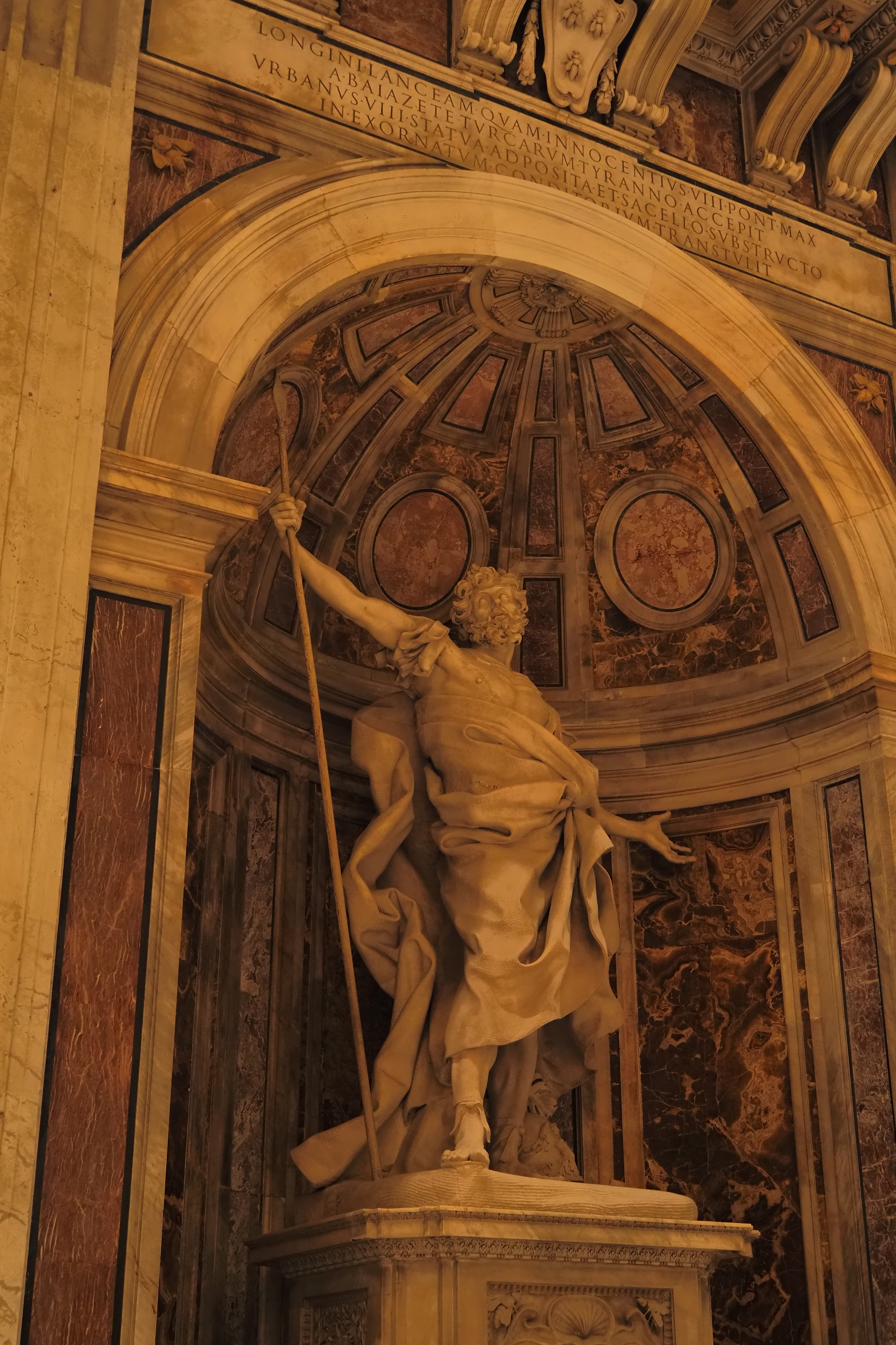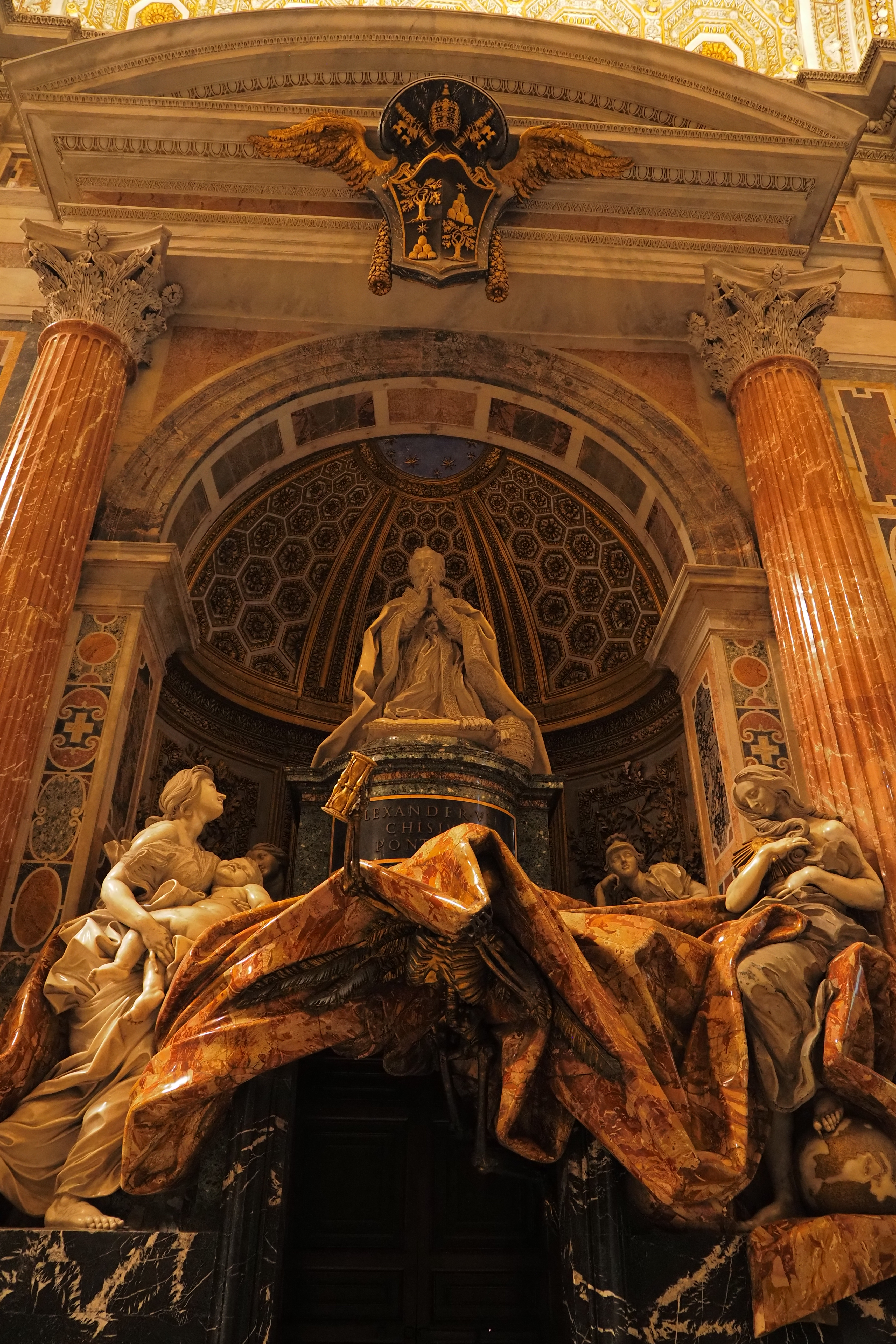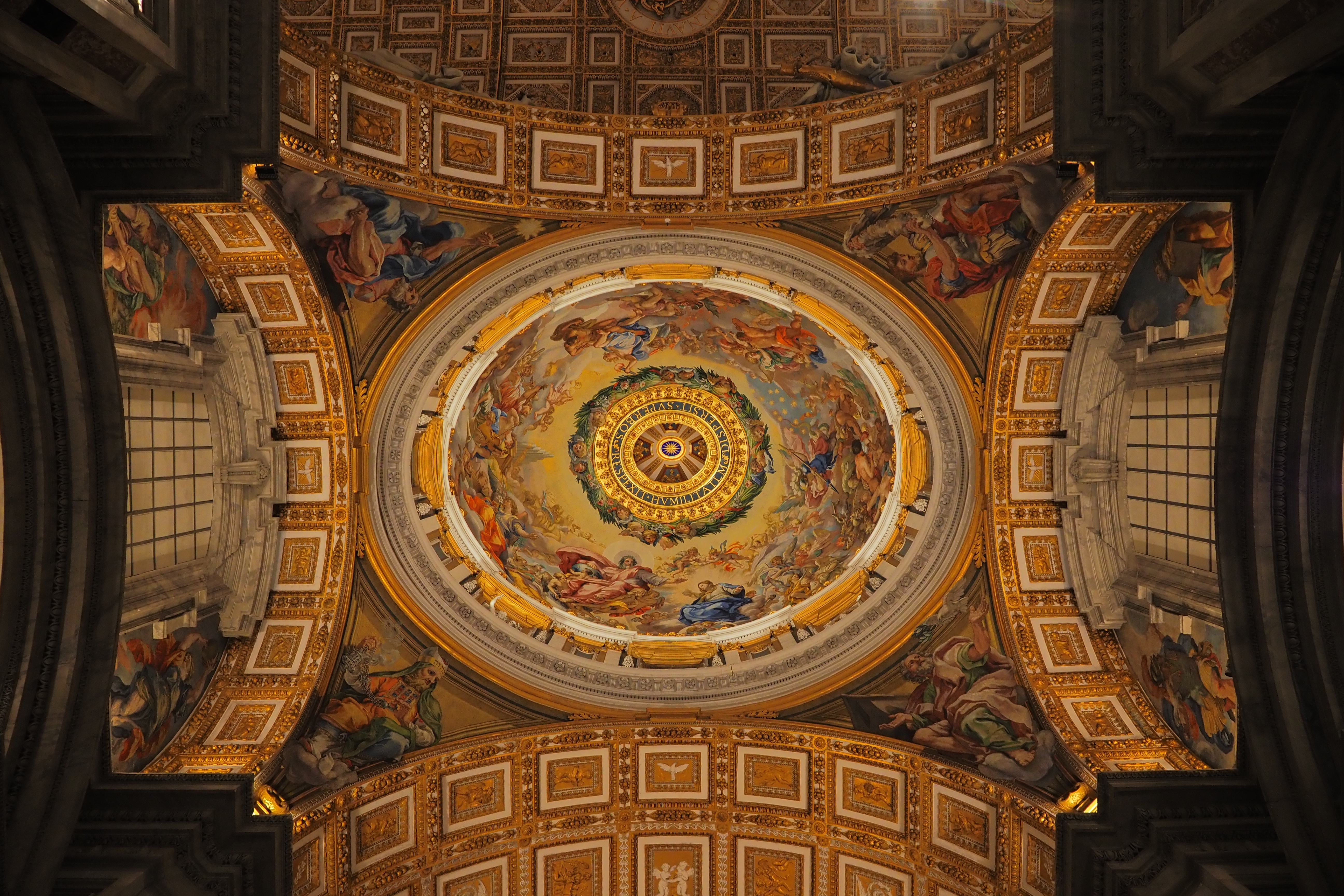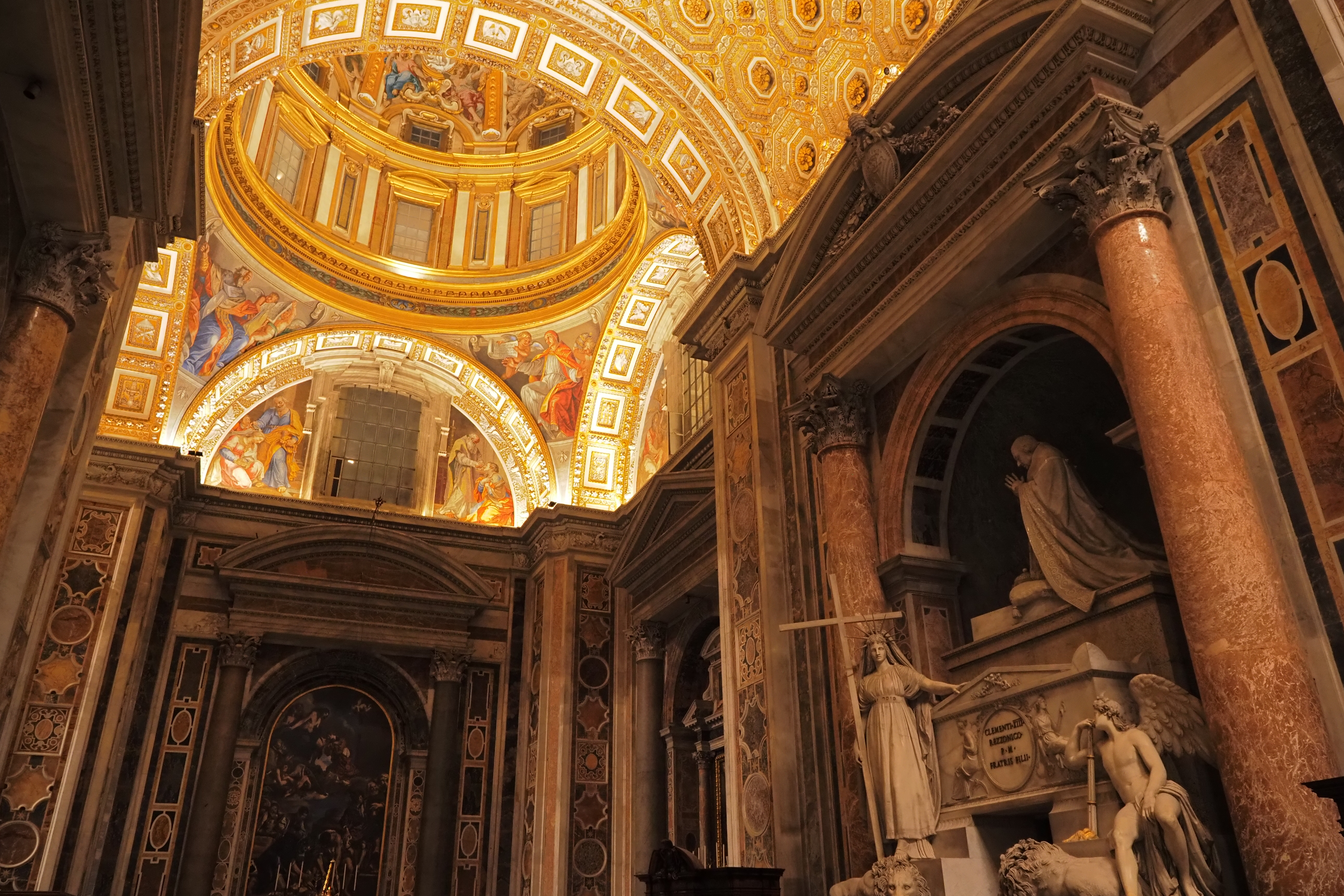 独特のねじれ構造をした4本の柱は「ソロモンの柱」とよばれて、黄金に輝く聖堂内で異質な黒々としたブロンズは凄まじい存在感を放ってる。高さは29mにも及んで、製造につかわれた真鍮材の一部は先のパンテオンの軒の一部から剥がされたという逸話もある。