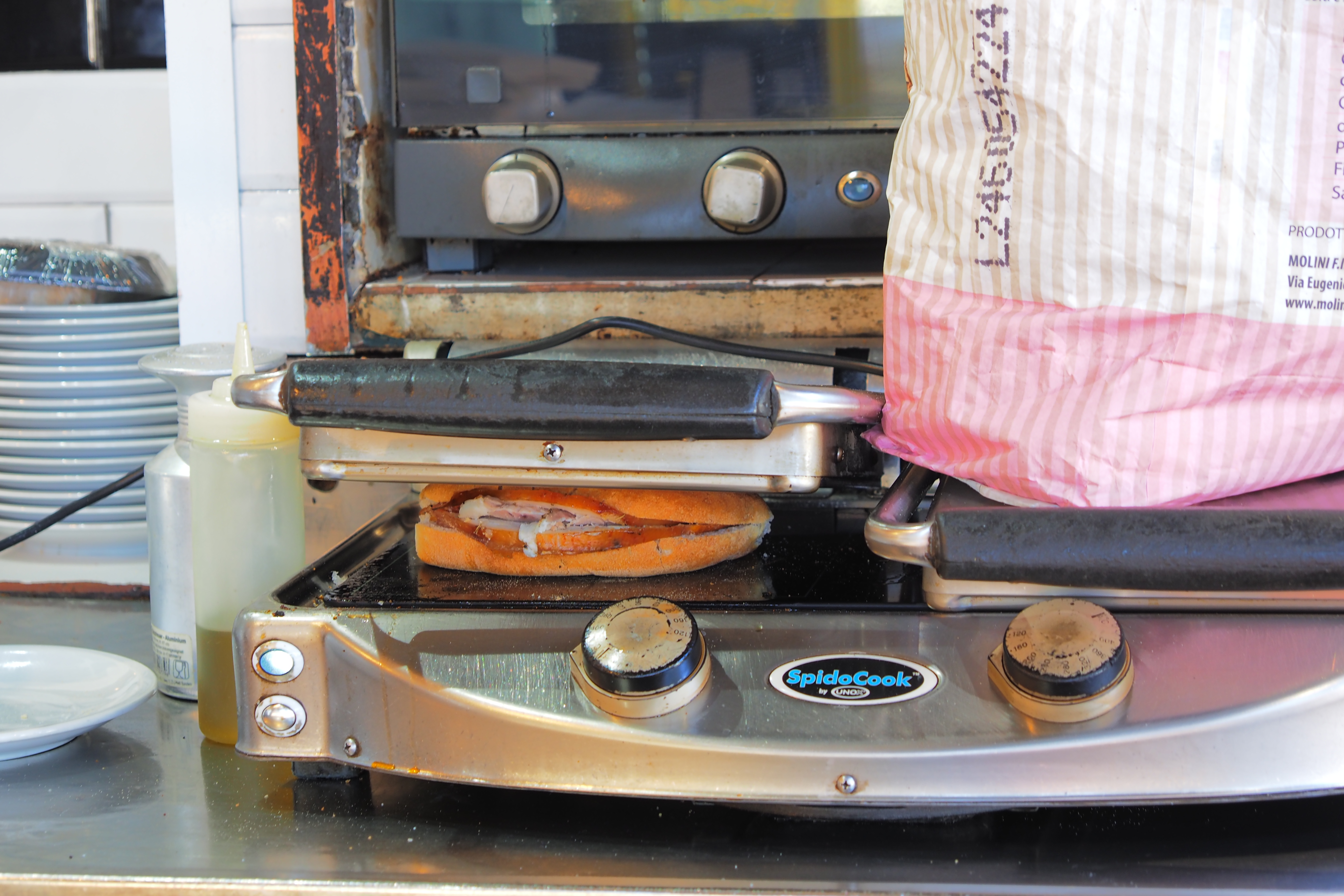 朝はコーヒーだけで出てきたから Piramide駅でトーストを焼いてもらう。