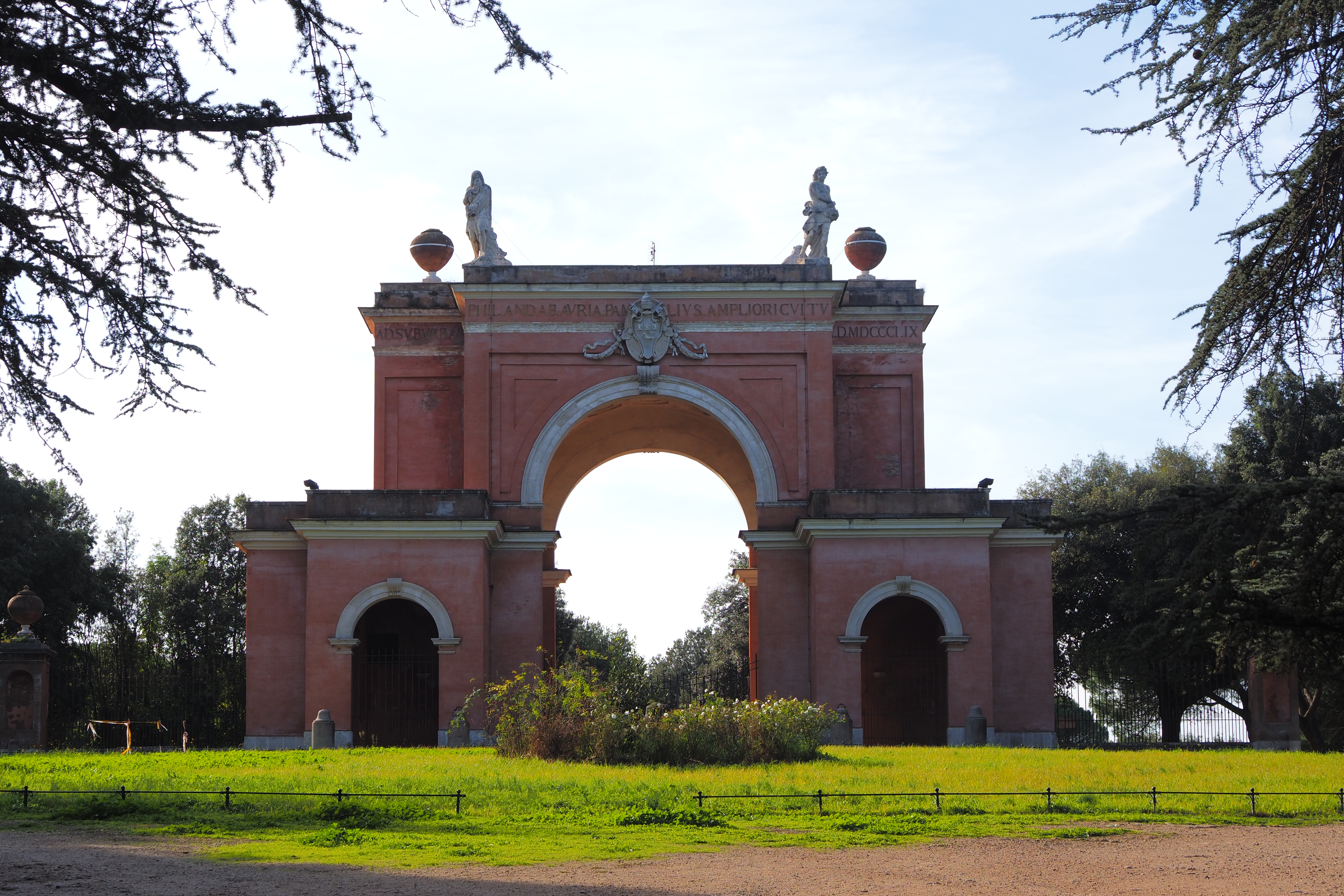 やってきたのは Villa Doria Pamphilj という広大な公園。公園の東端には 1859年のArco dei Quattro Venti; 4つの風の門 が建っている。