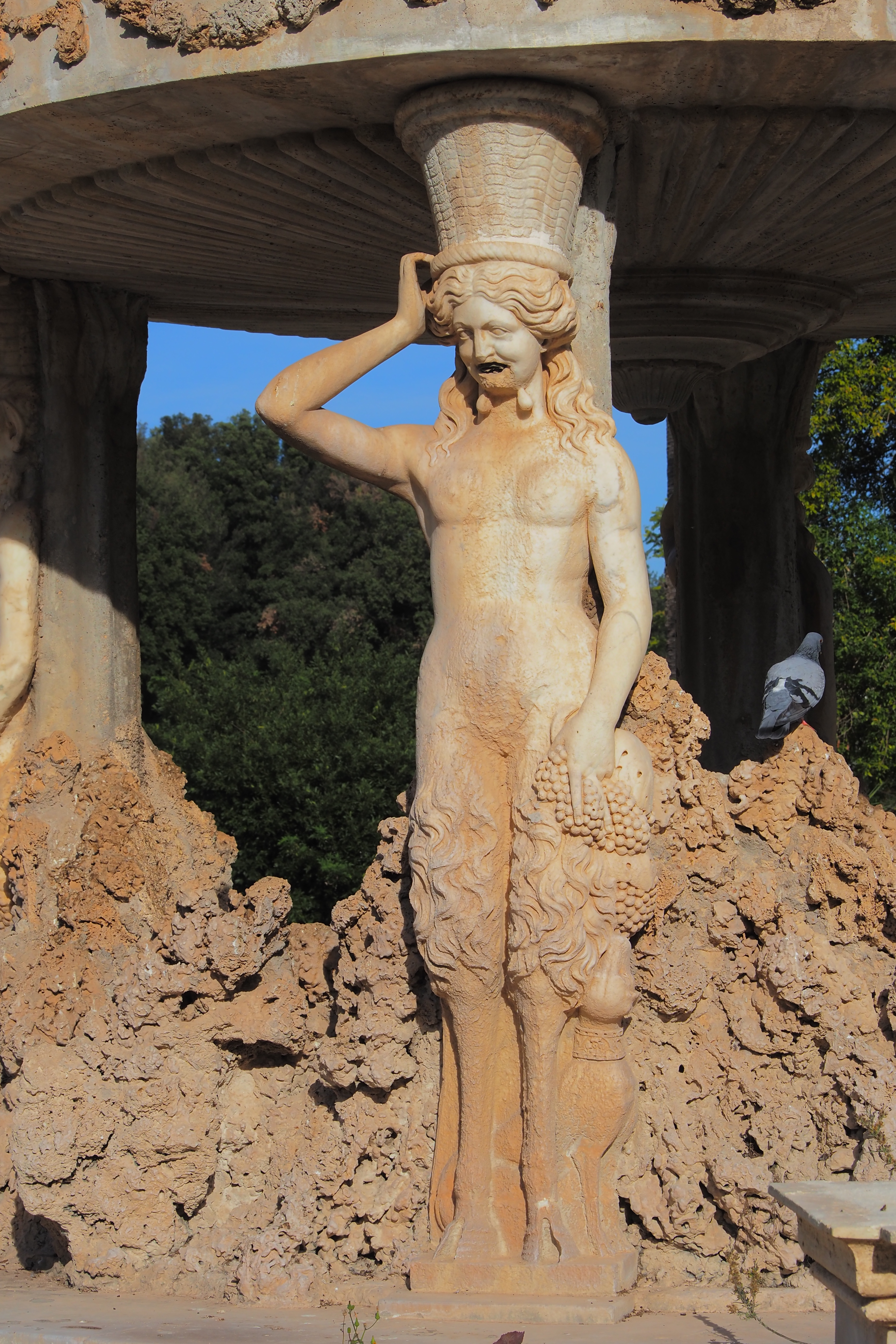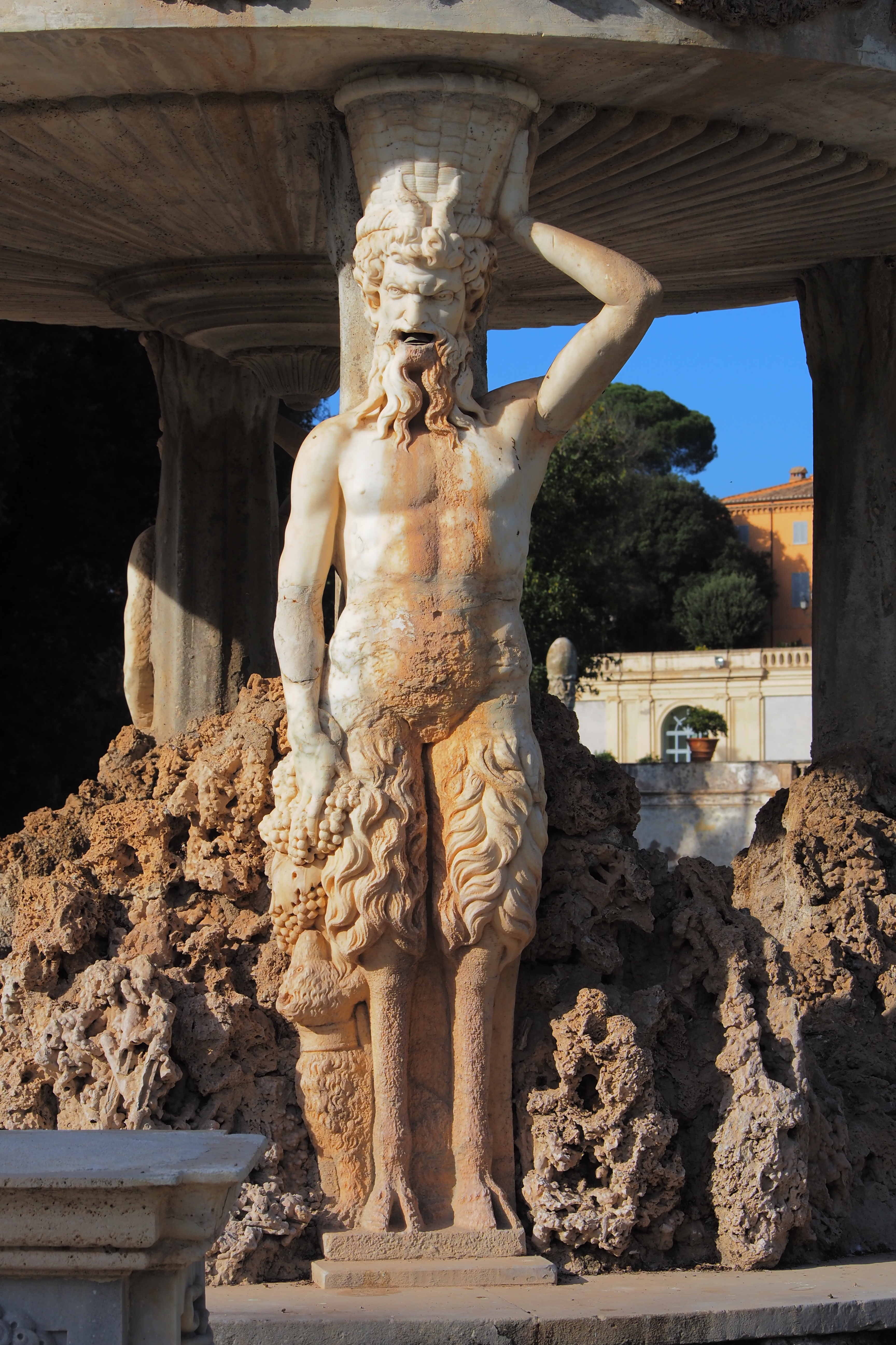 上面の皿を支える柱は半獣の田園神 Fauni; ファヌウスで、古代ギリシアの牧神Pan; パンに似てる。