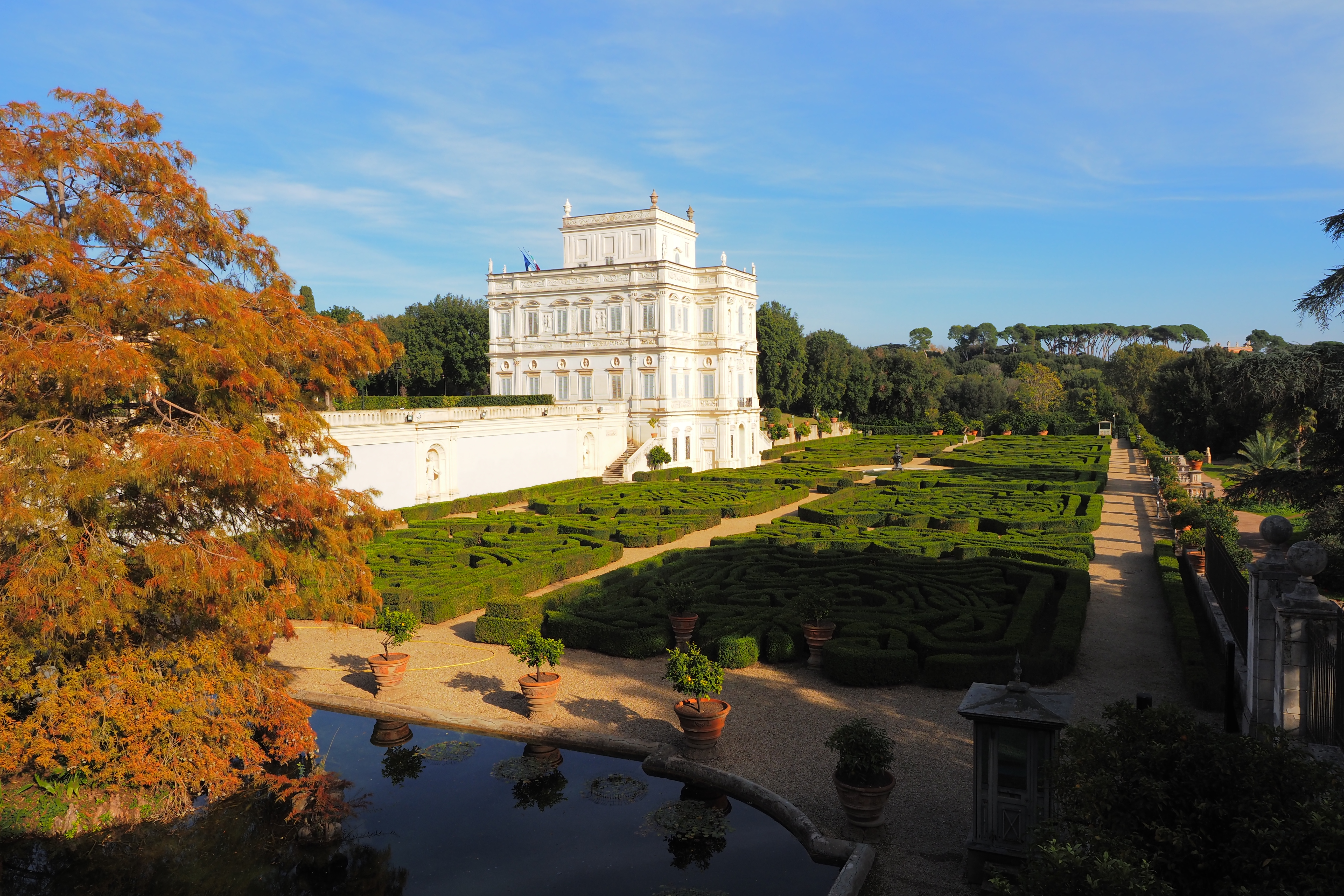 1644年 当時の教皇 インノケンティウス10世が一族(パンフィーリ家)の栄光の象徴として建設をすすめたらしい。現在はイタリア政府の賓館として利用されてる。