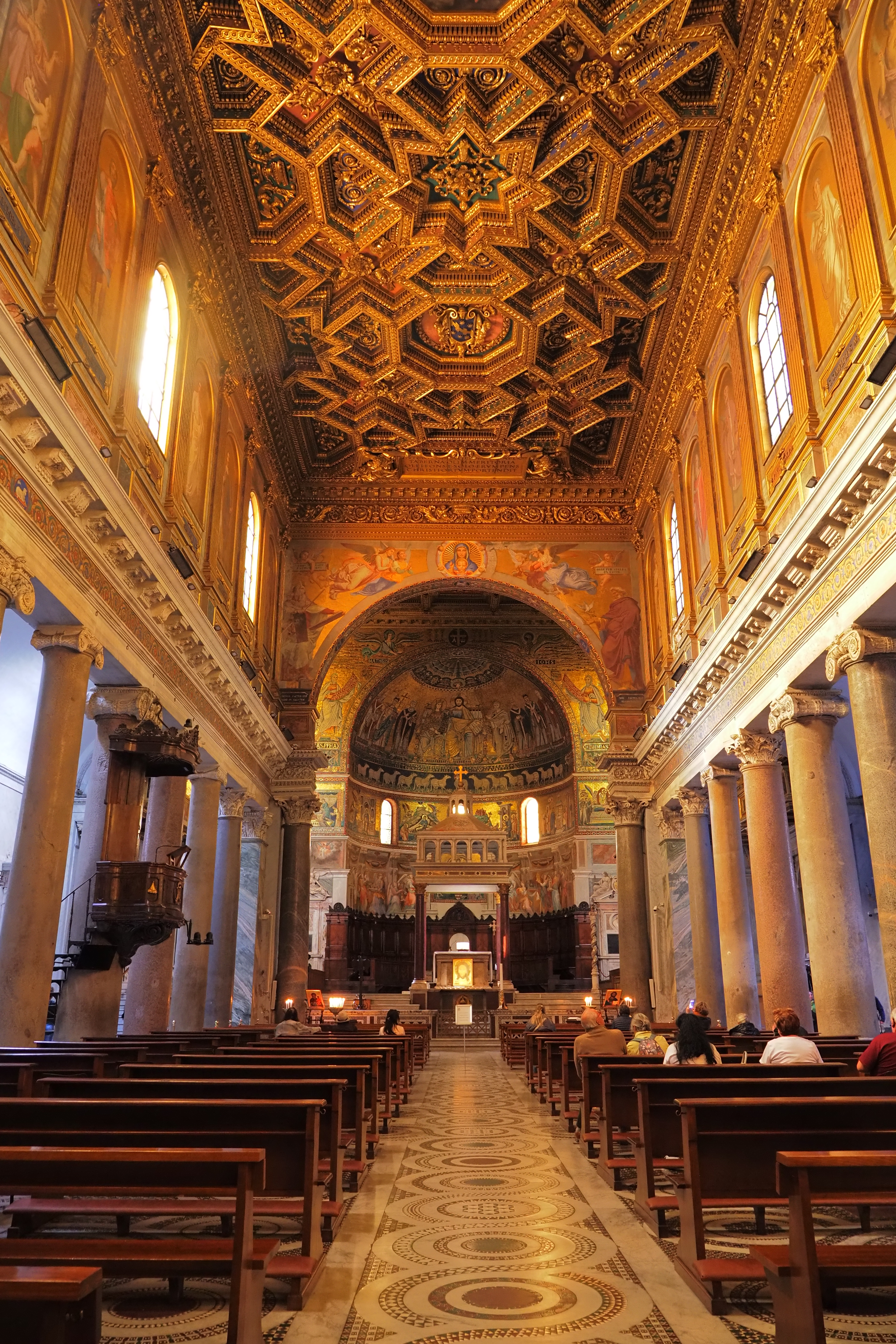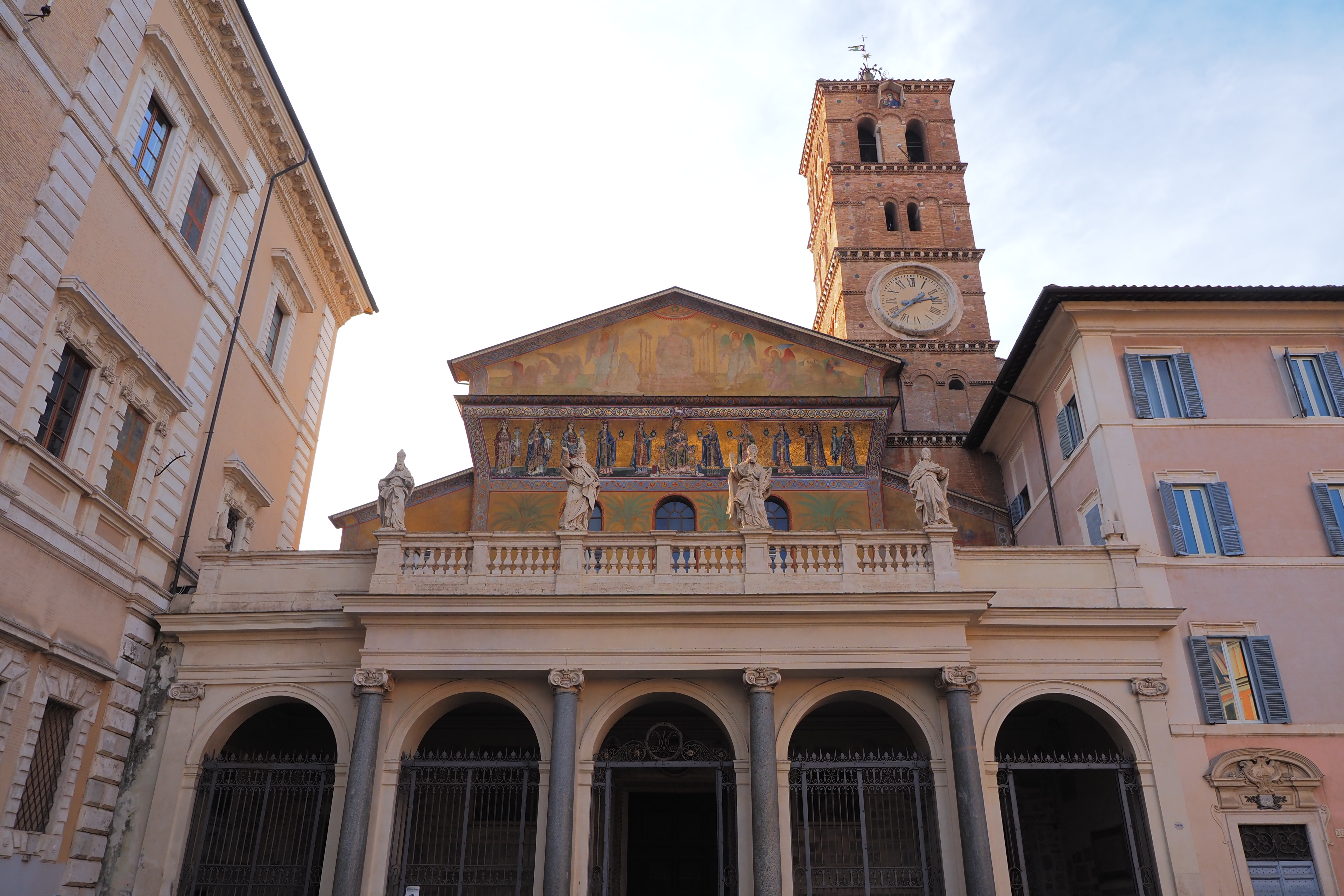 ローマでも最も古い教会のひとつ、Basilica di Santa Maria in Trastevere がある。