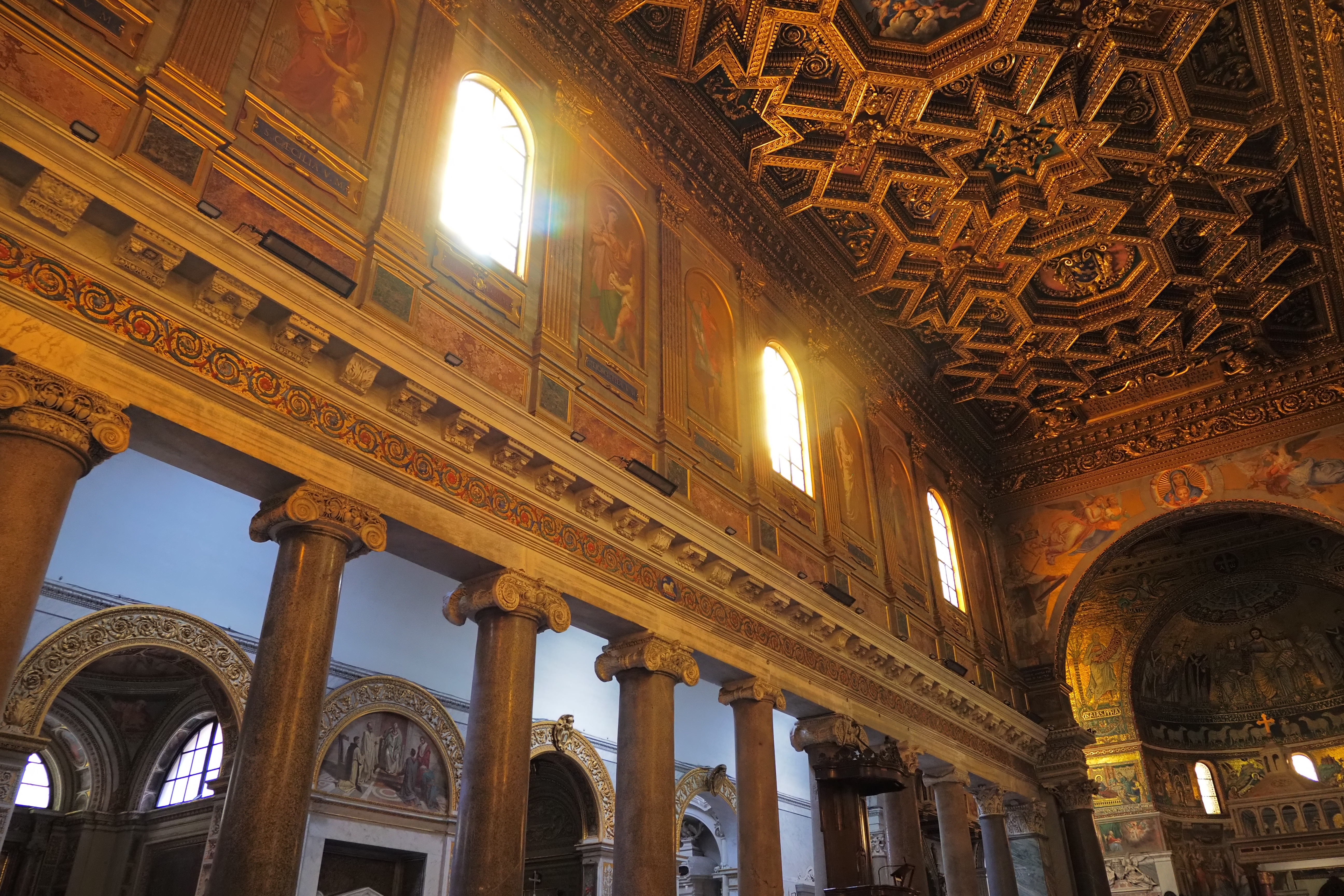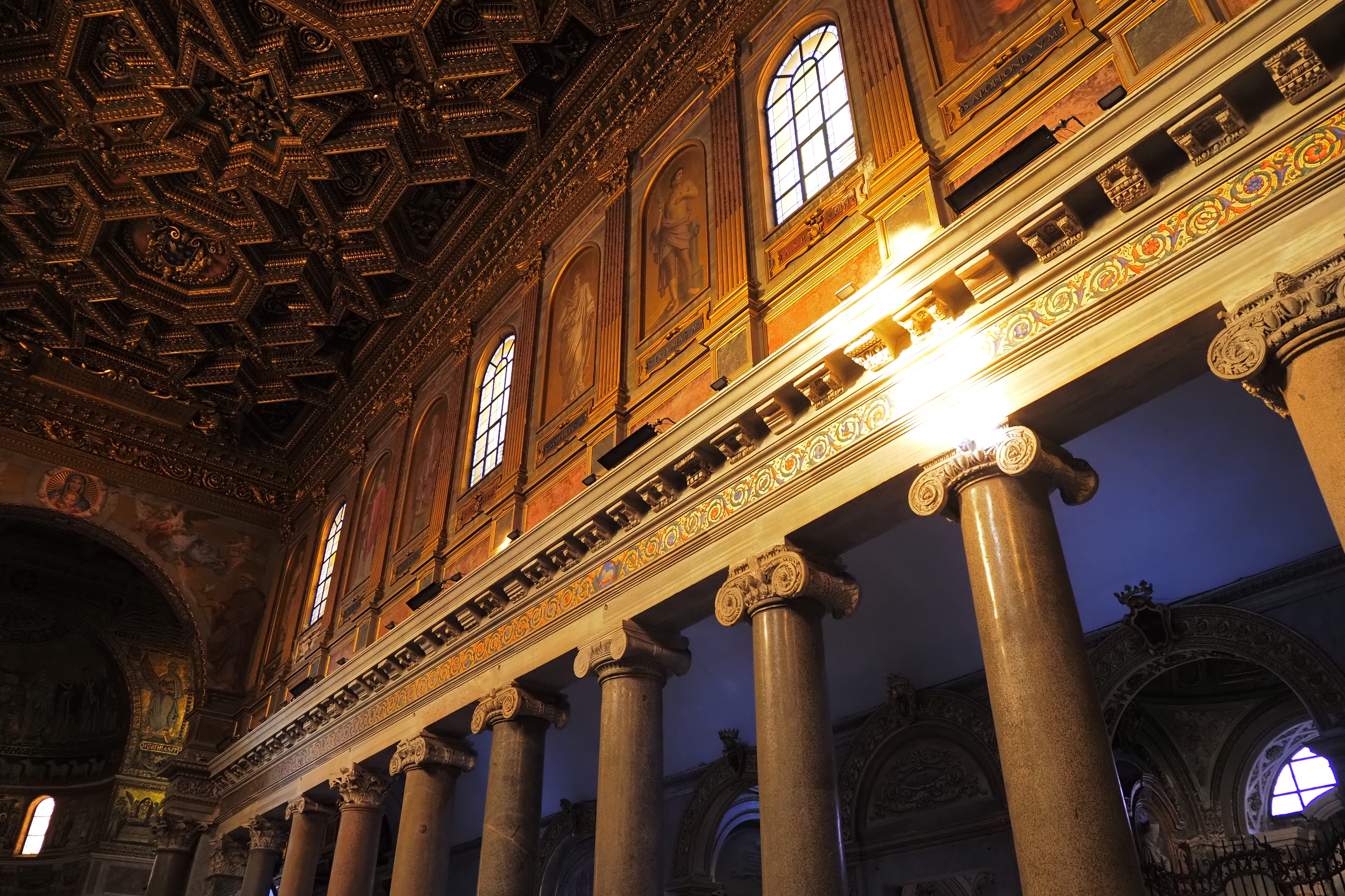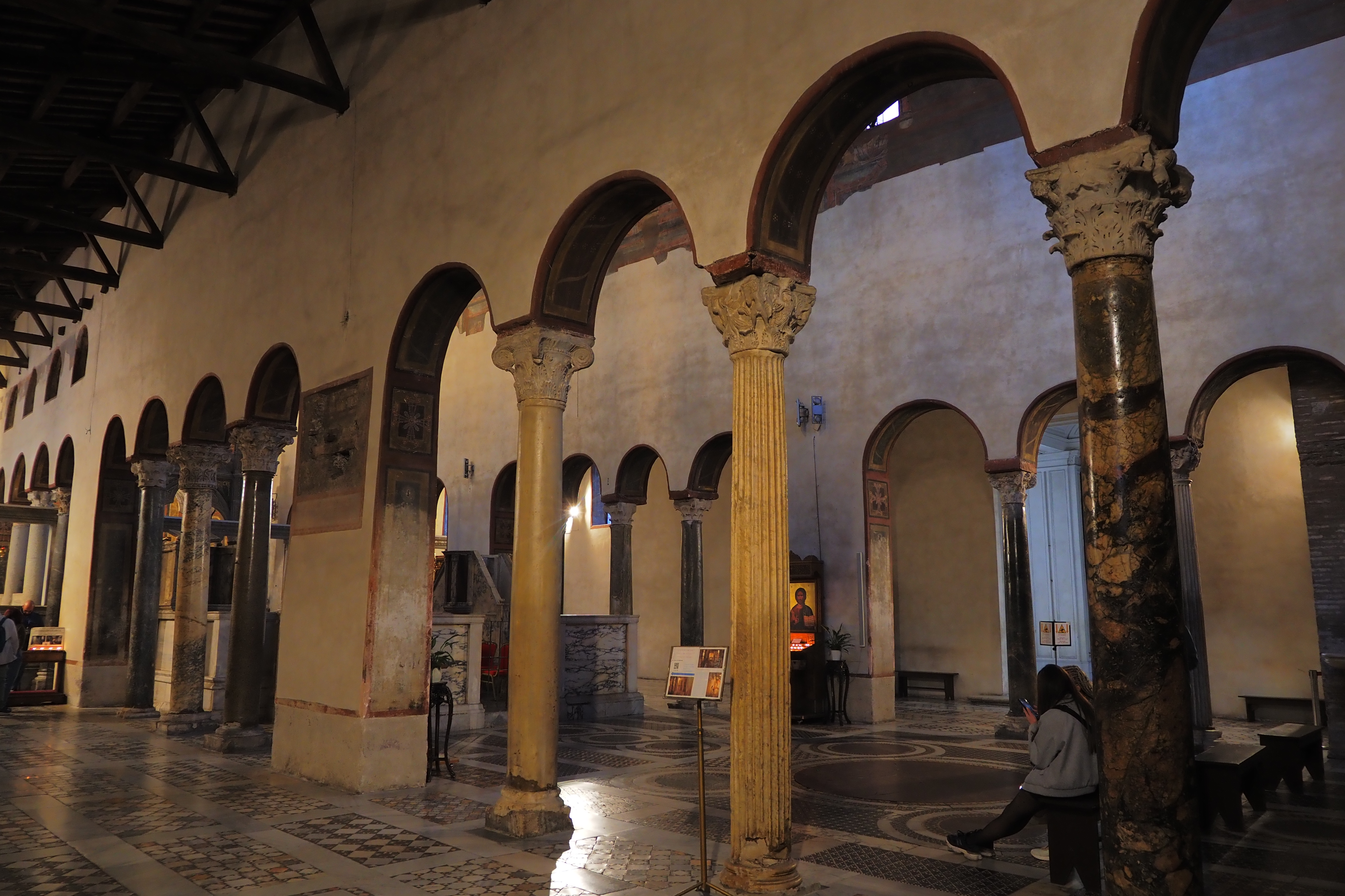 創建は4世紀にまで遡り、現在の建物も1143年に完成した再建のもの。ローマで見てきた教会にルネサンス~バロック様式が多かったのに対して、この教会はずっと古いロマネスク様式となってる。