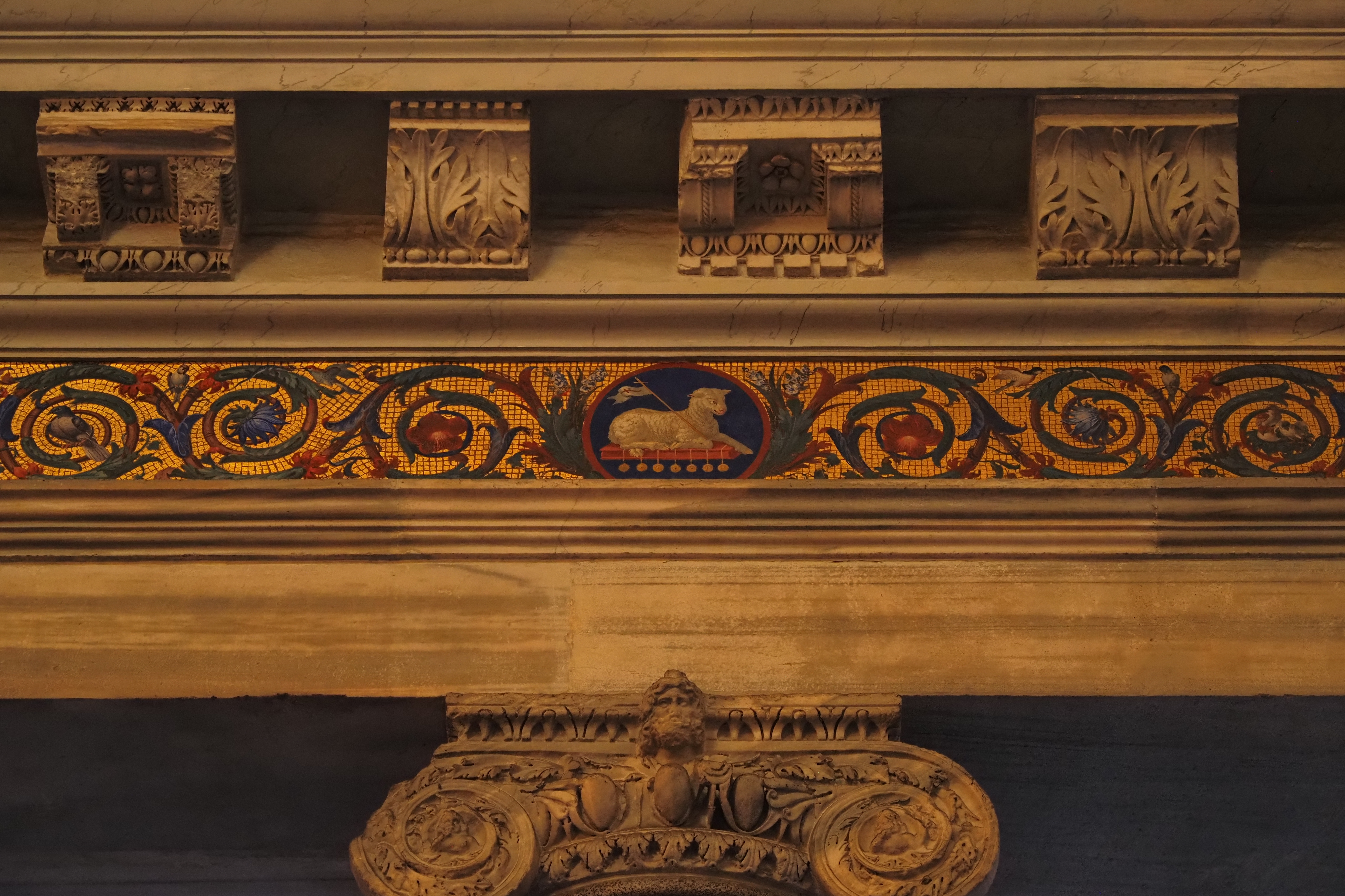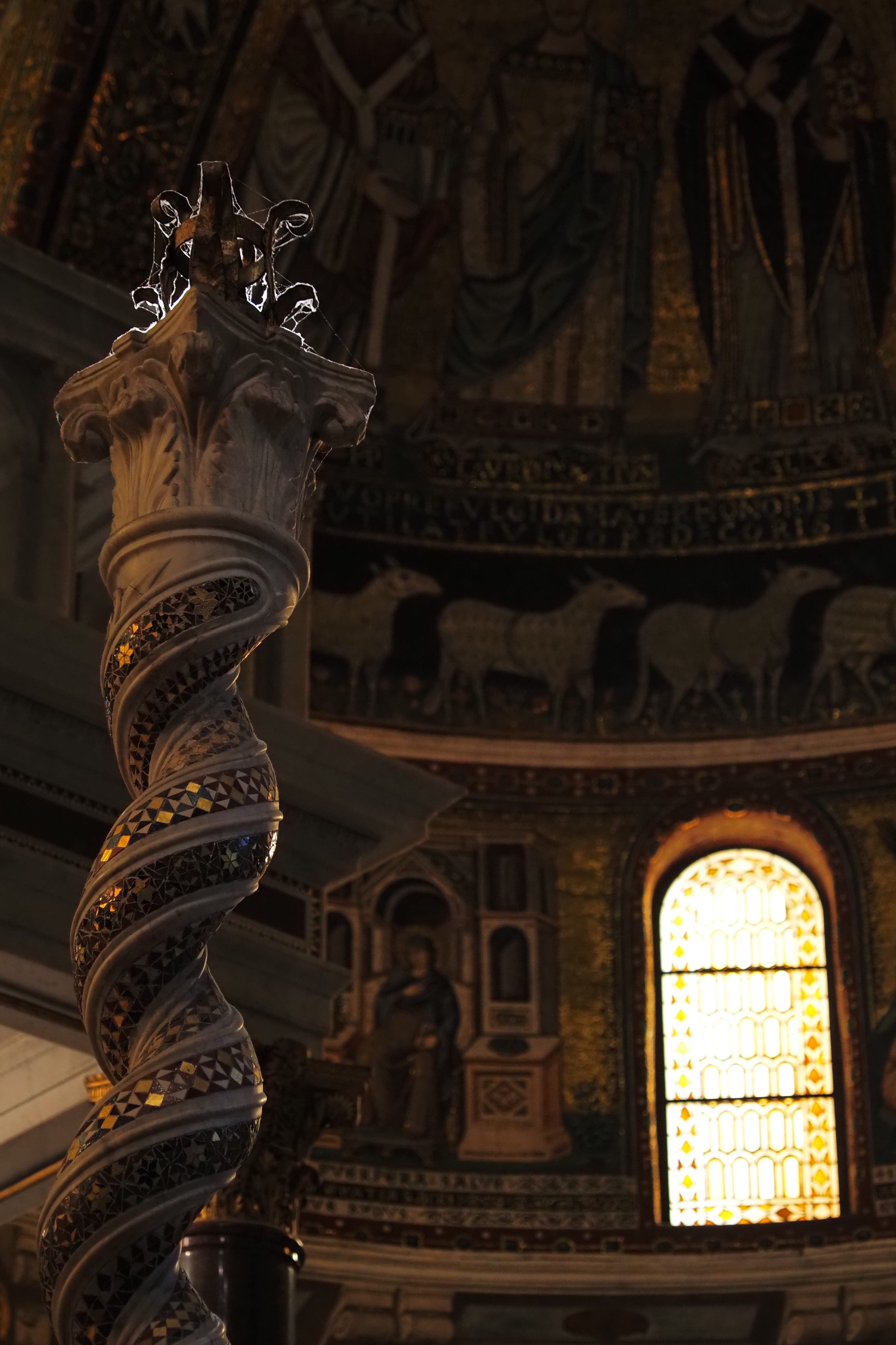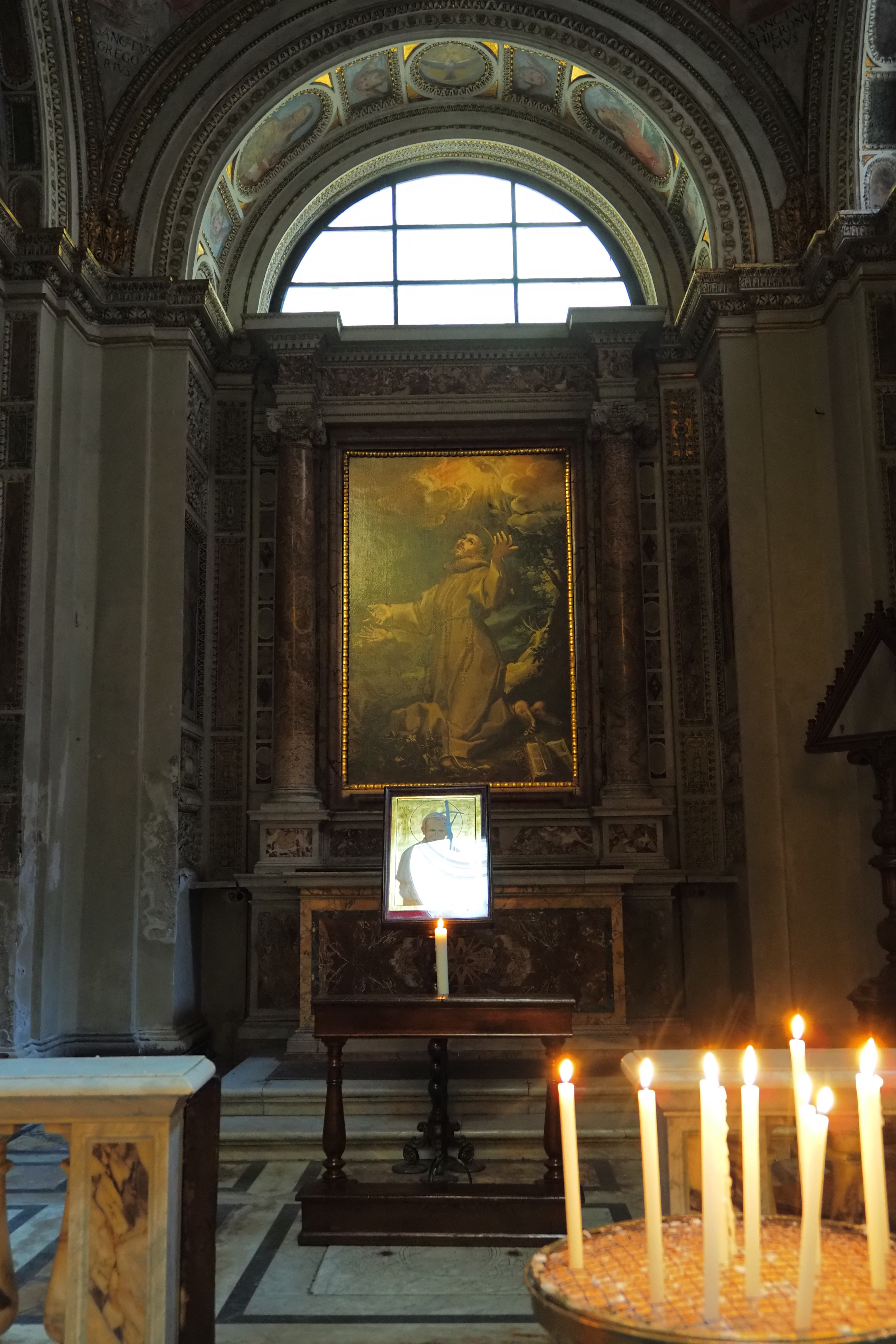 かつてはこの空間に設けられた壁龕に、ハドリアヌス1世がカタコンベから収集してきた複数の聖人の遺骨など(聖遺物)が収められていたらしい。