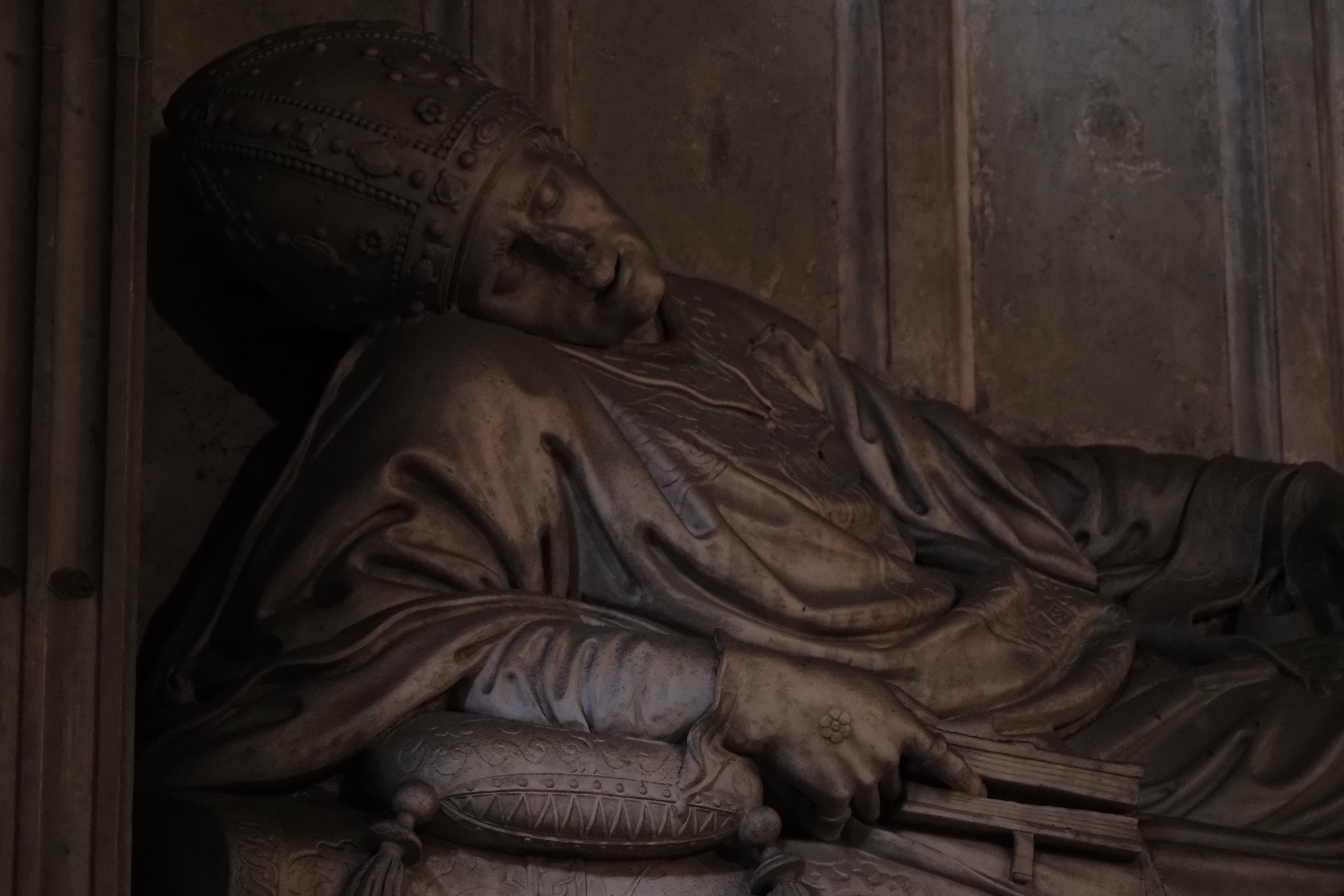トルコ産のパヴォナッツェット大理石でできていて、紀元前1世紀~1世紀頃に作られたと考えられている。重さは1.2t もあって、13世紀頃教会へ、そして1632年に現在の位置に安置された。