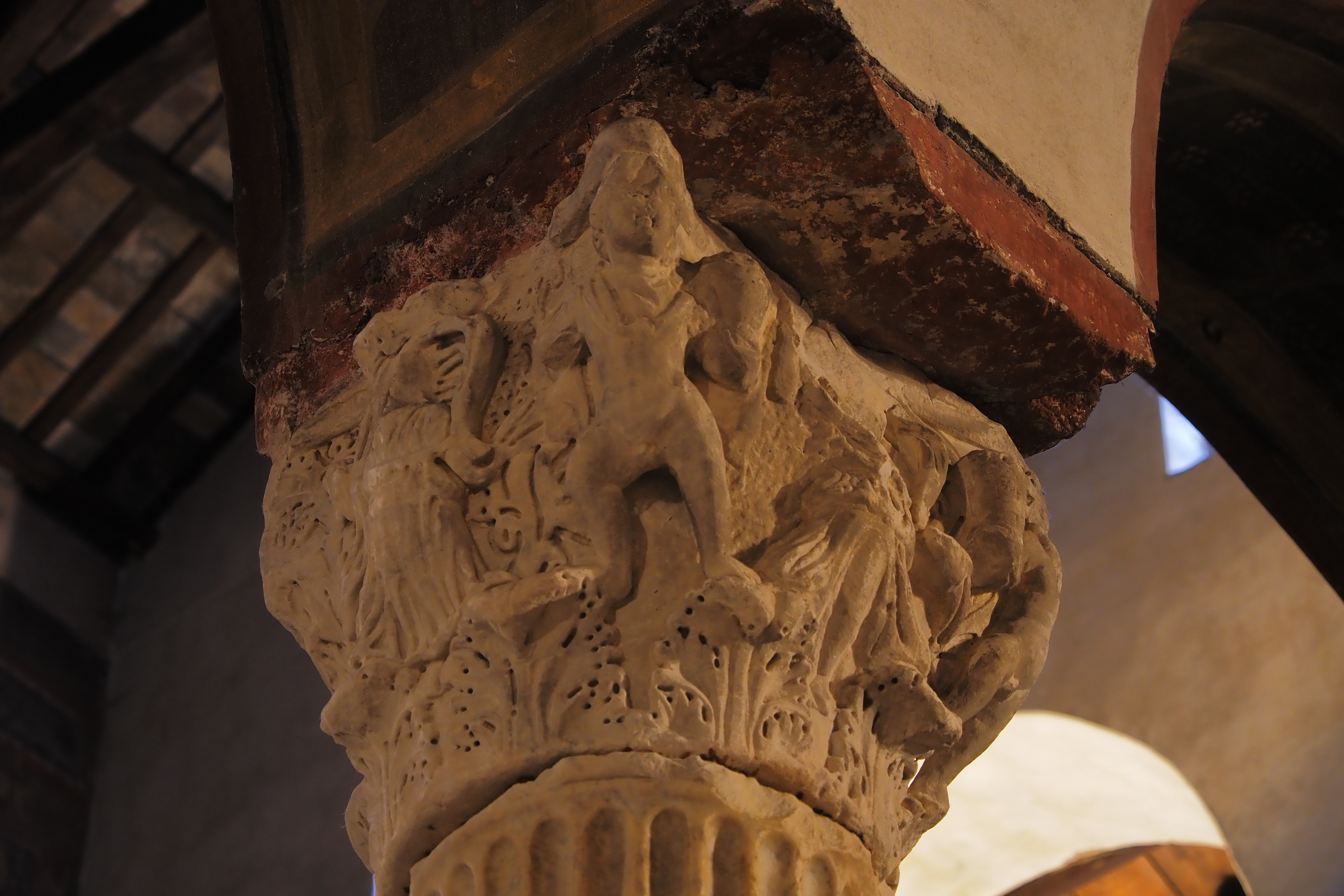 18本あるうちの11本の柱頭は、古代ローマ期の遺構から再利用されたものがつかわれてる。