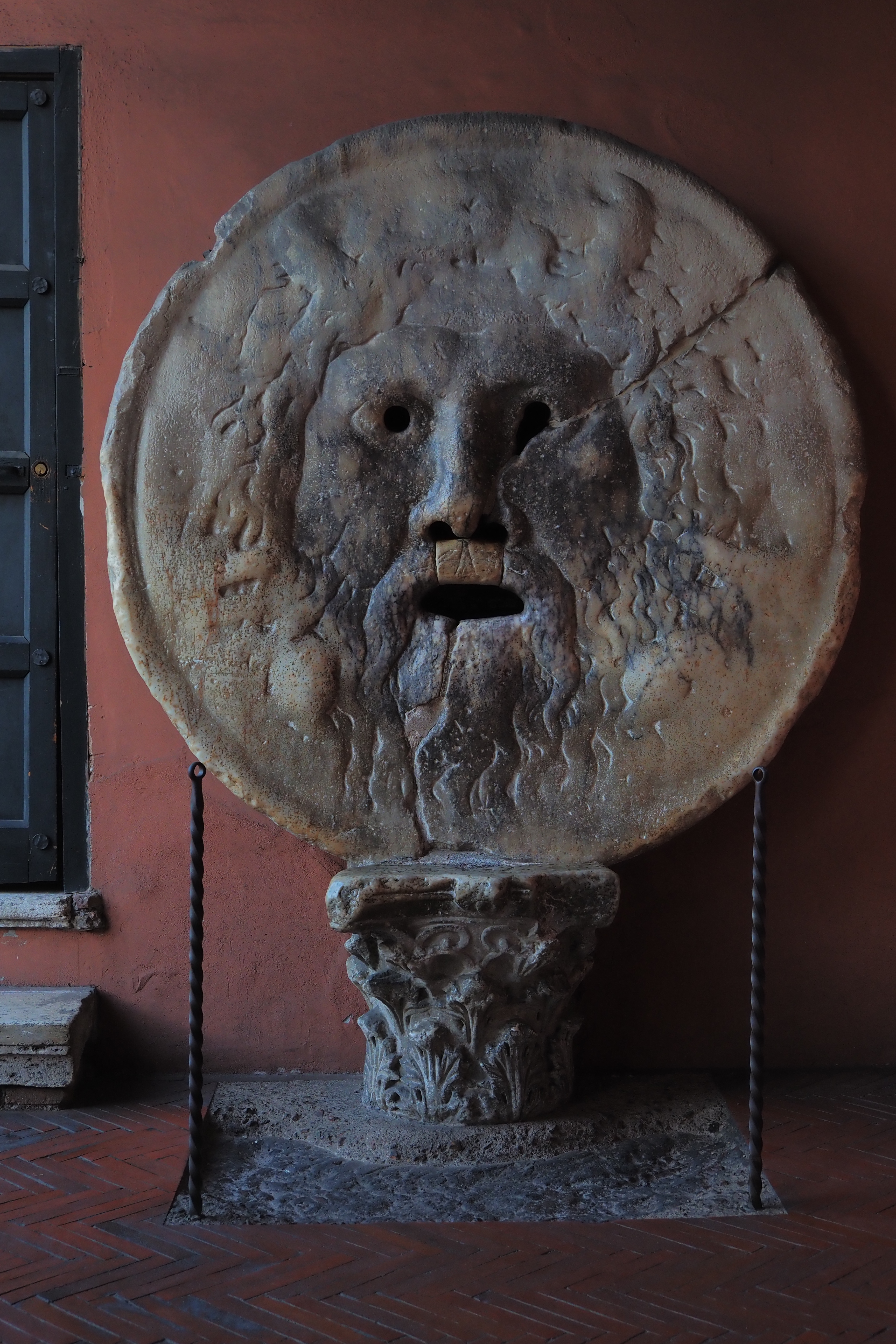古代ギリシア神話の大河の神 Oceanus; オケアヌスの顔面を象っていて、元々は近くにある Tempio di Ercole Vincitore; ヘラクレス勝利神殿の排水溝の蓋だったらしい。オケアヌスといえば、前記事で出て来たトレビの泉の中央にいる筋肉隆々のおじさんがオケアヌスだ。