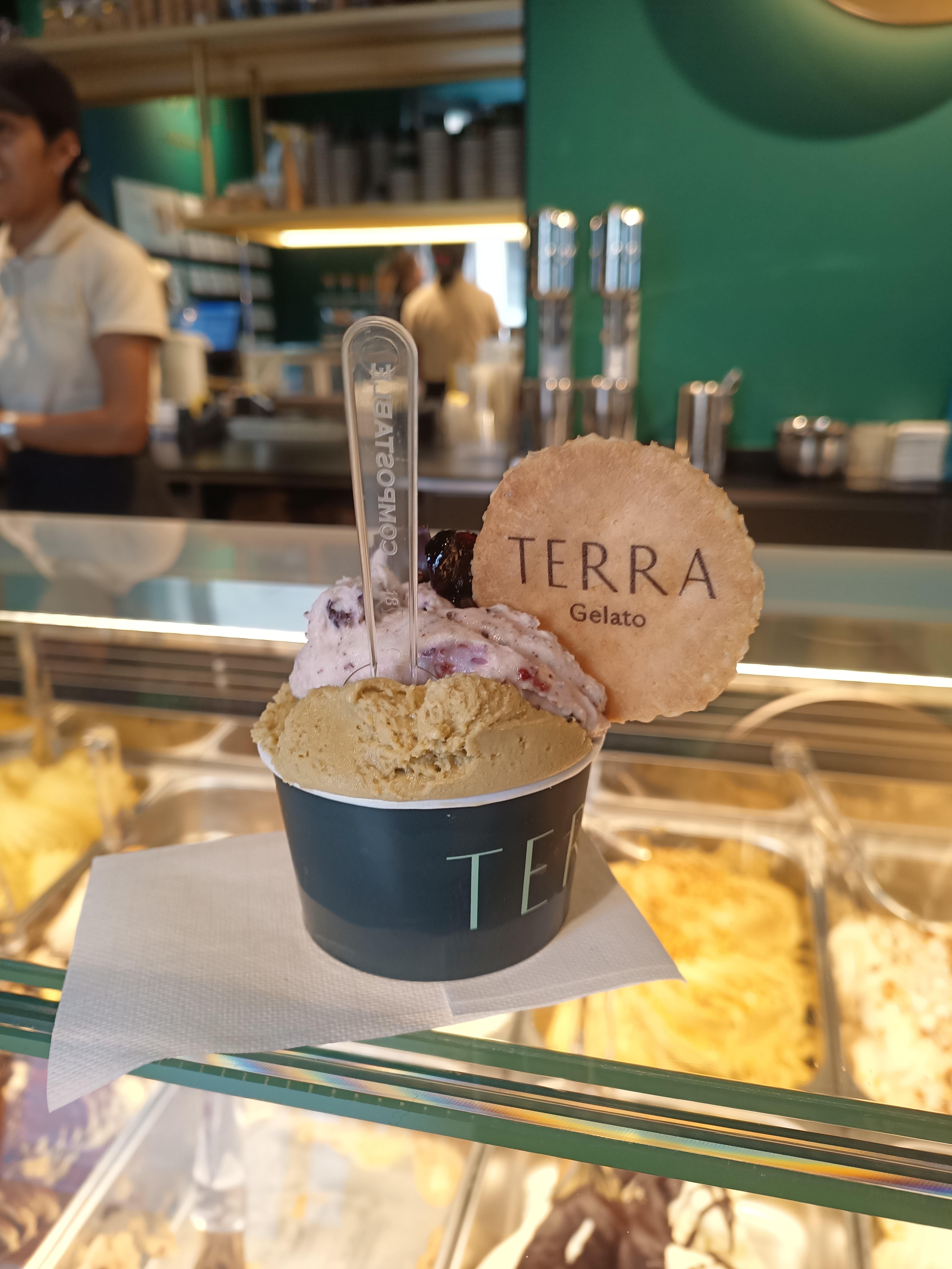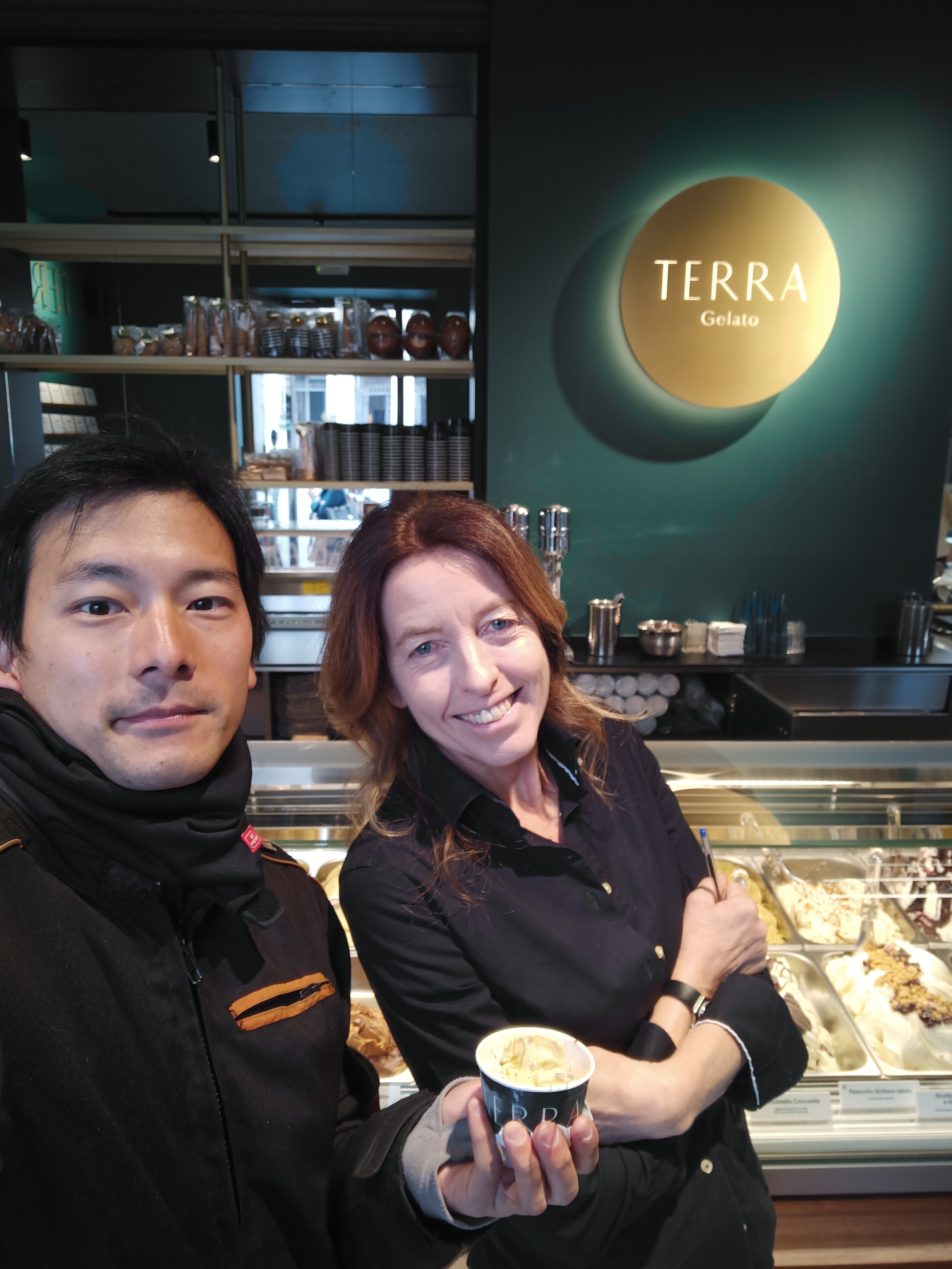 最近オープンしたばかりのジェラート屋さんをたまたま視察に来ていたオーナーのPaola が声をかけてくれて、ジェラートもひとつご馳走してくれた。