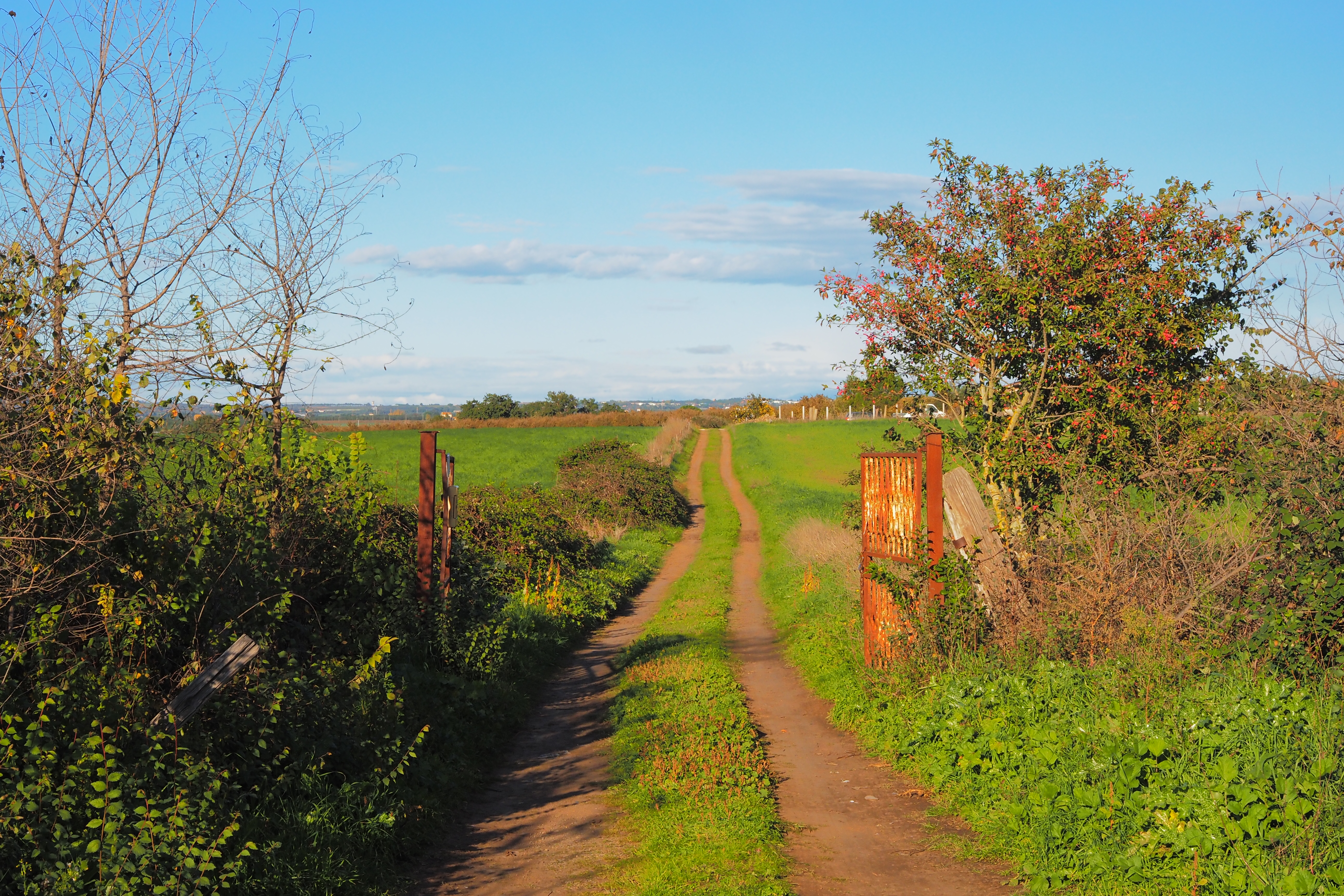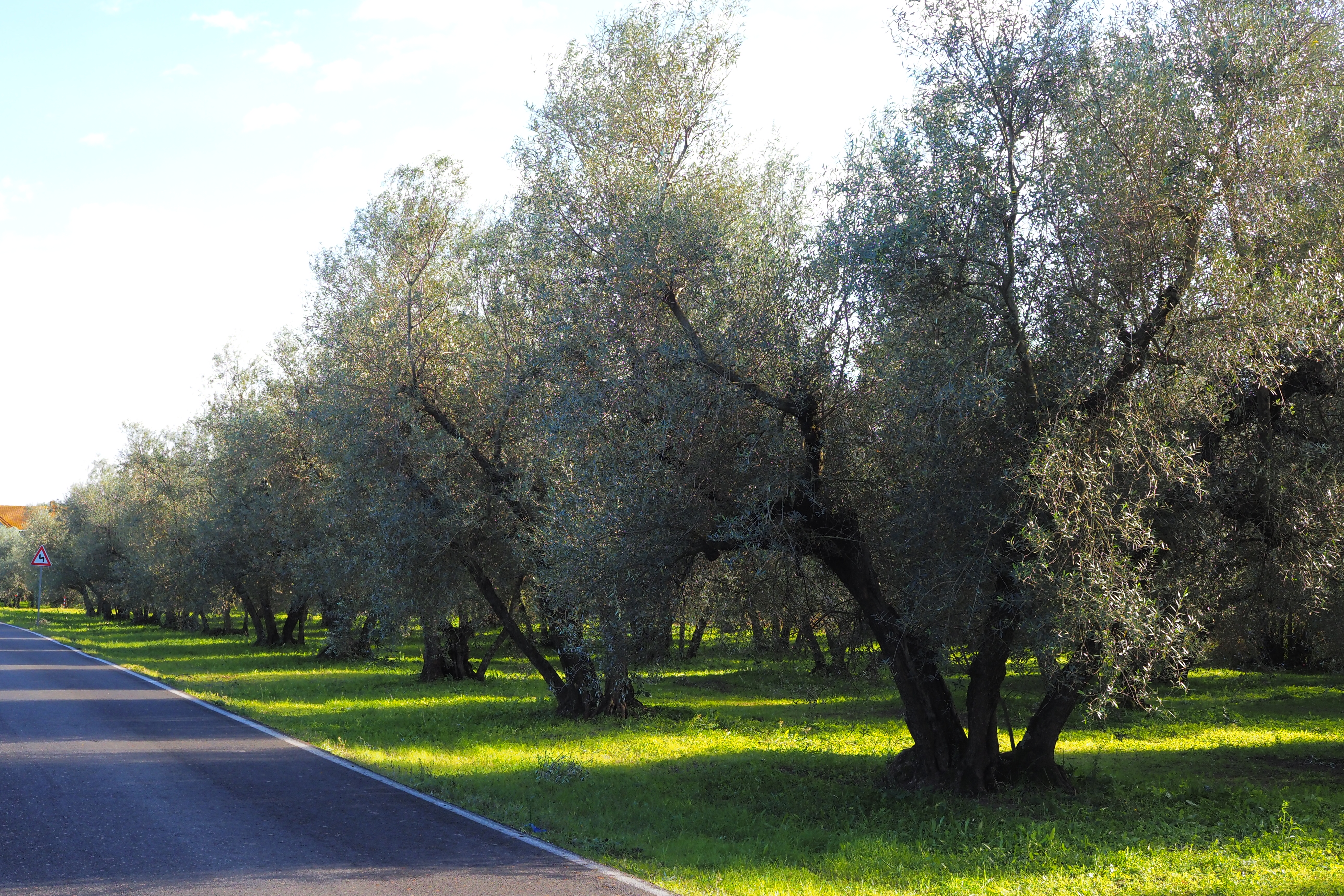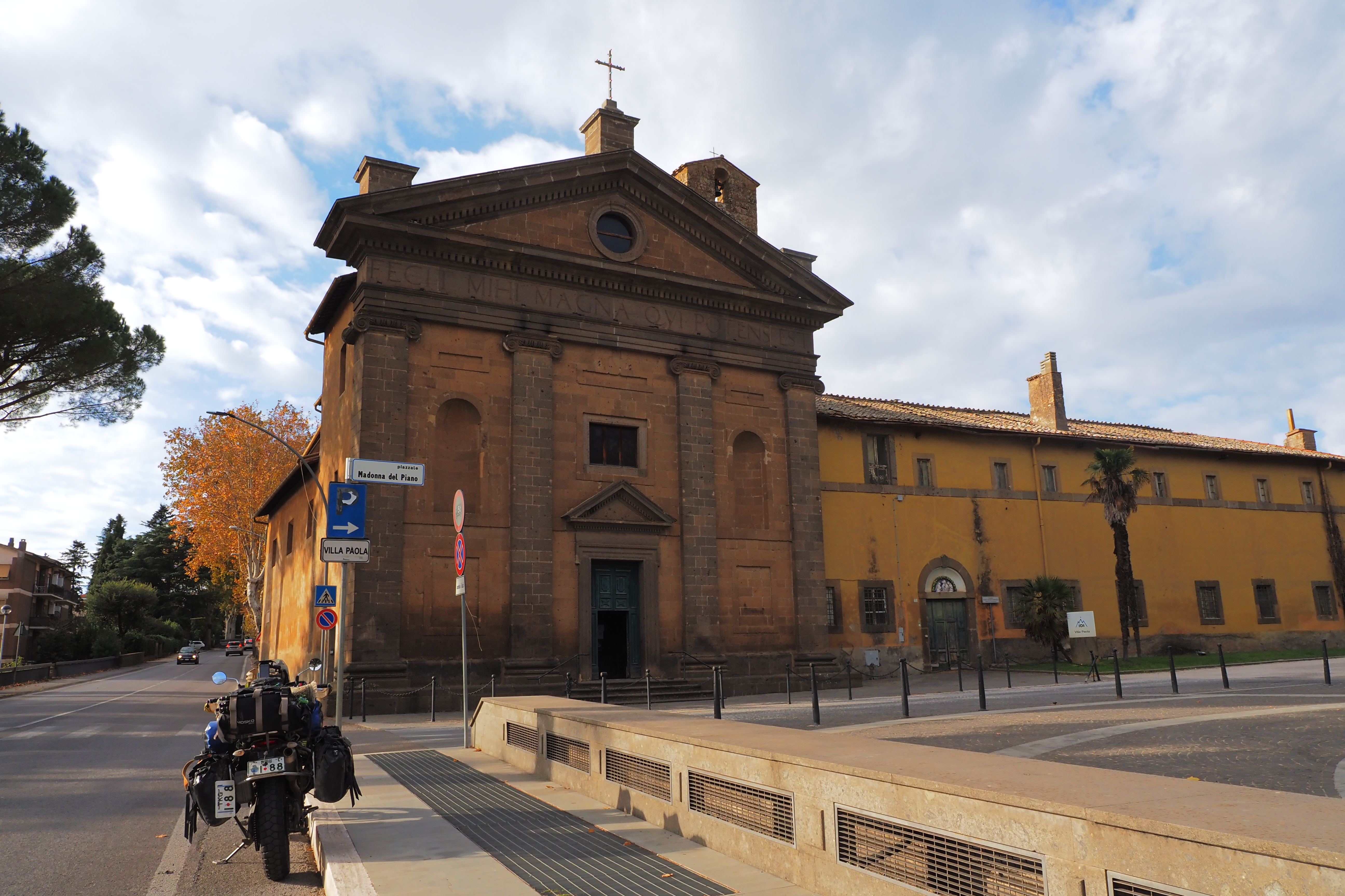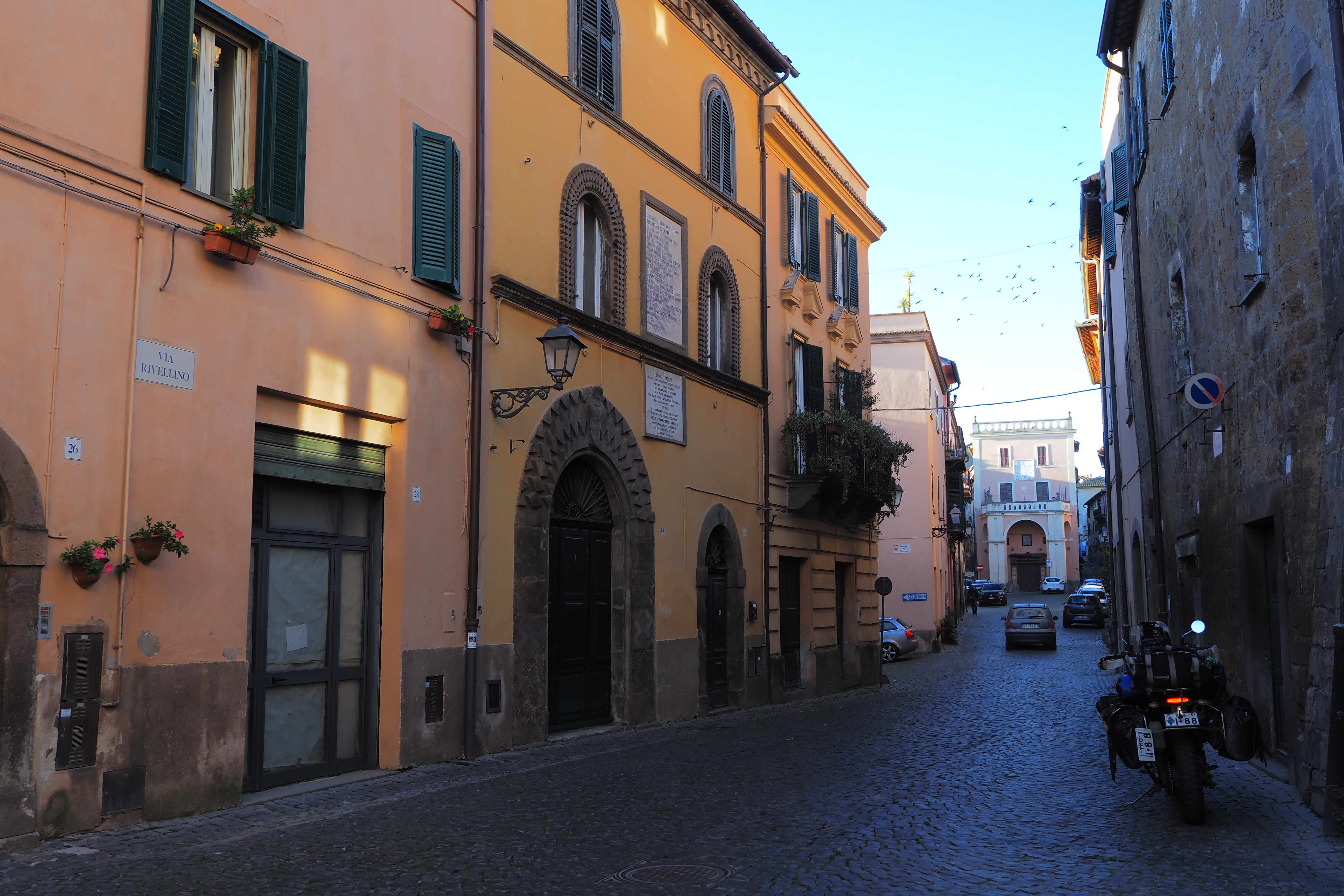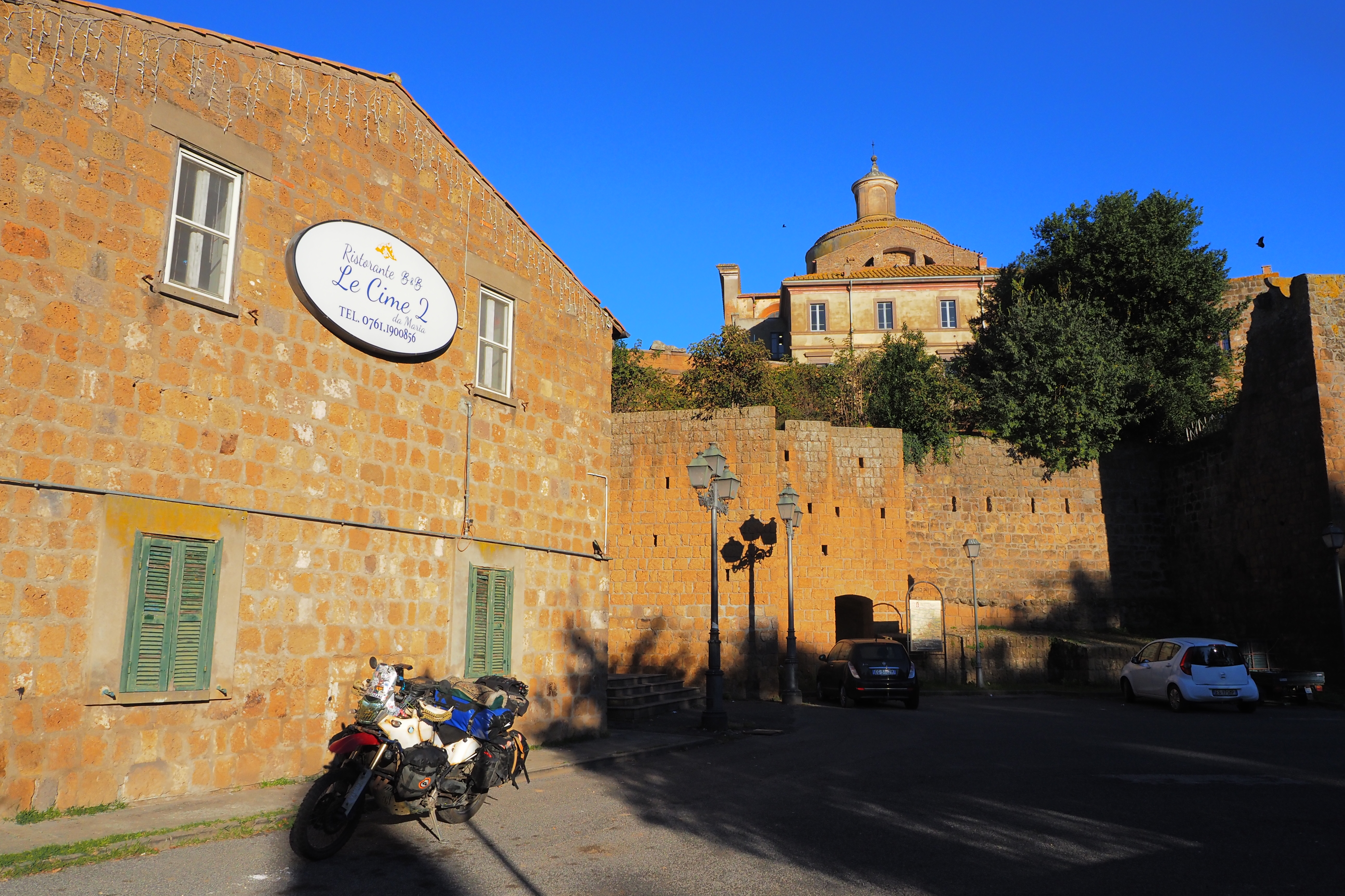 ローマは天気が悪かったけど、だんだん青空になって 穏やかな光とオリーブ畑に囲まれた道をViterbo; ヴィテルボ県へと跨いでいく。