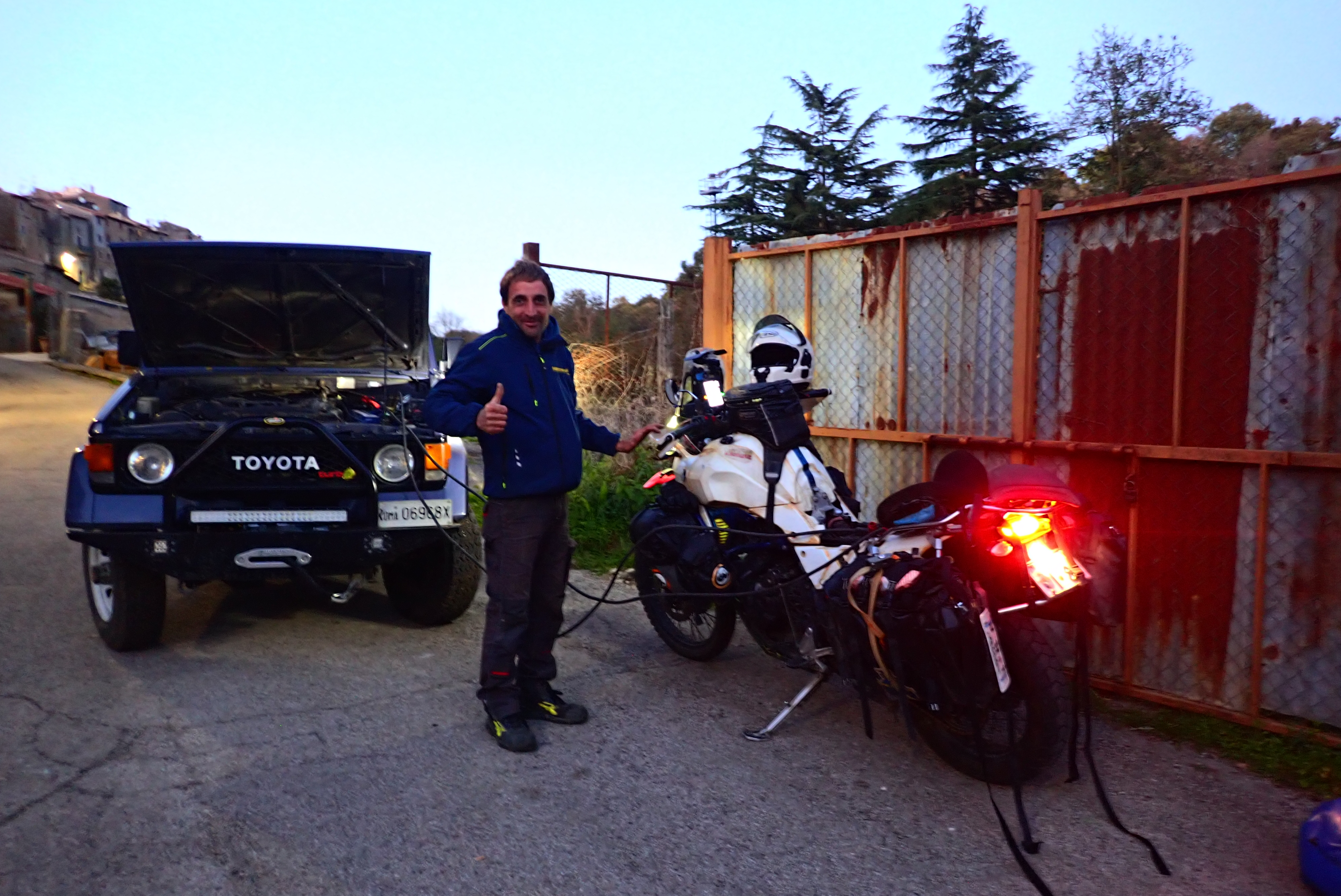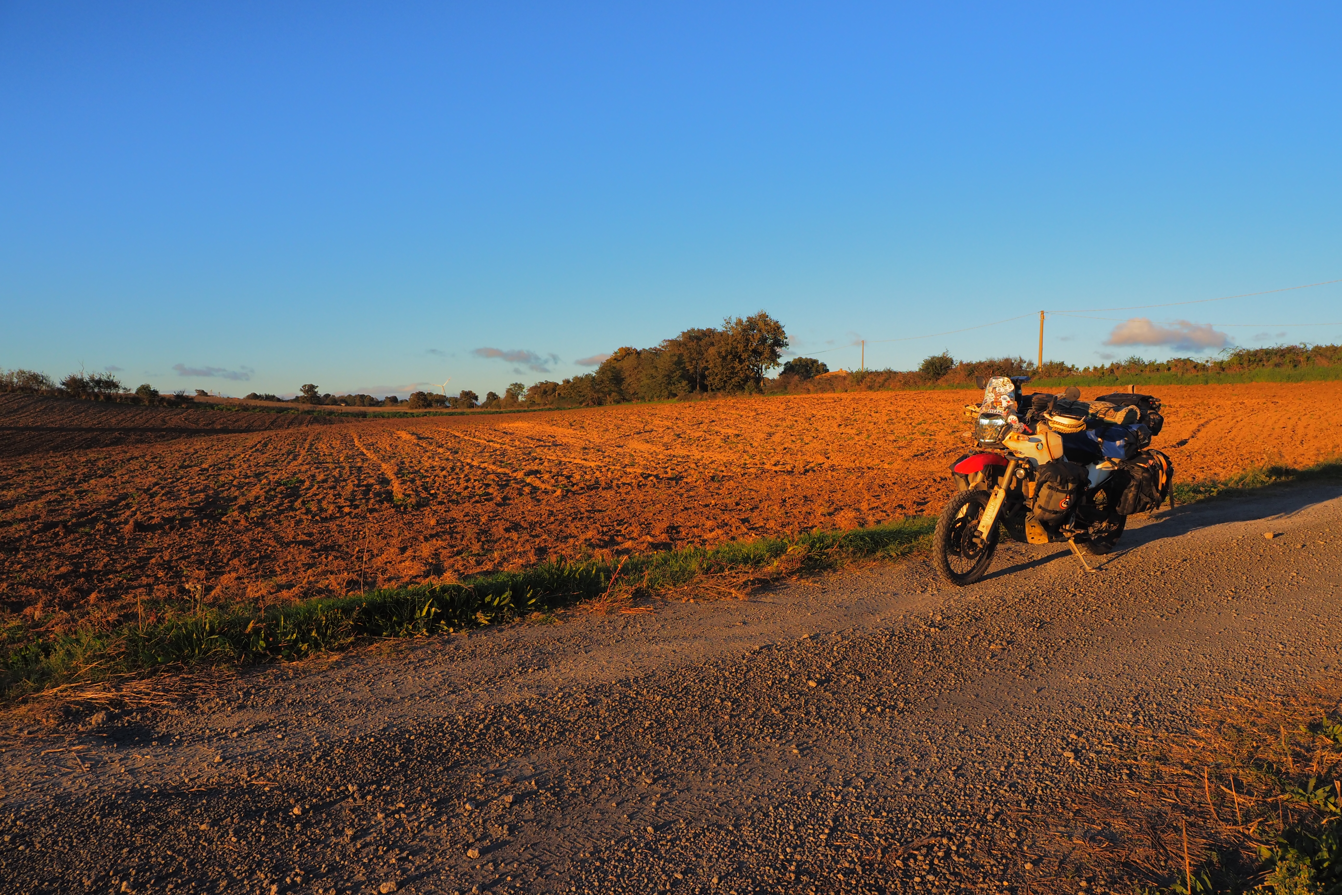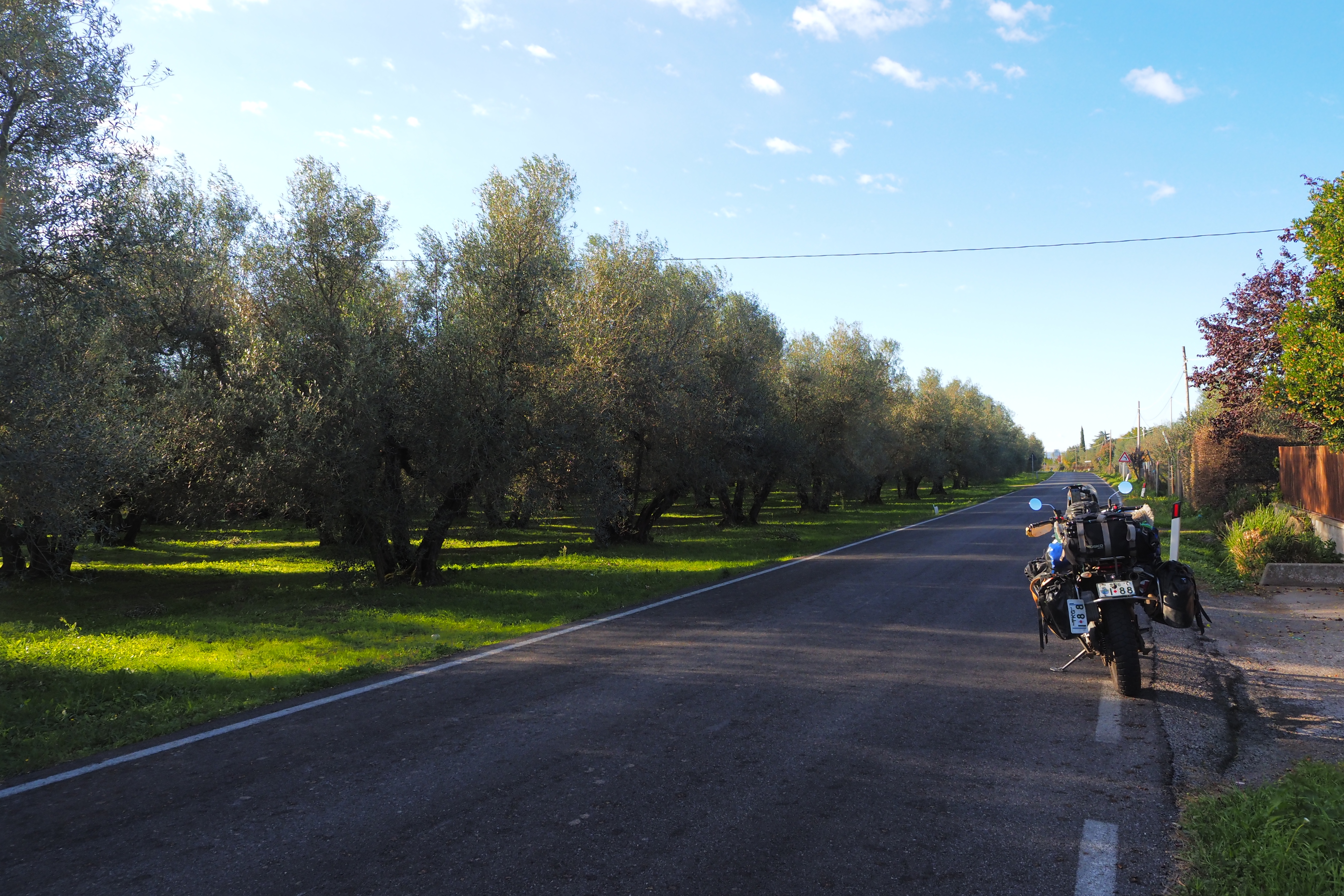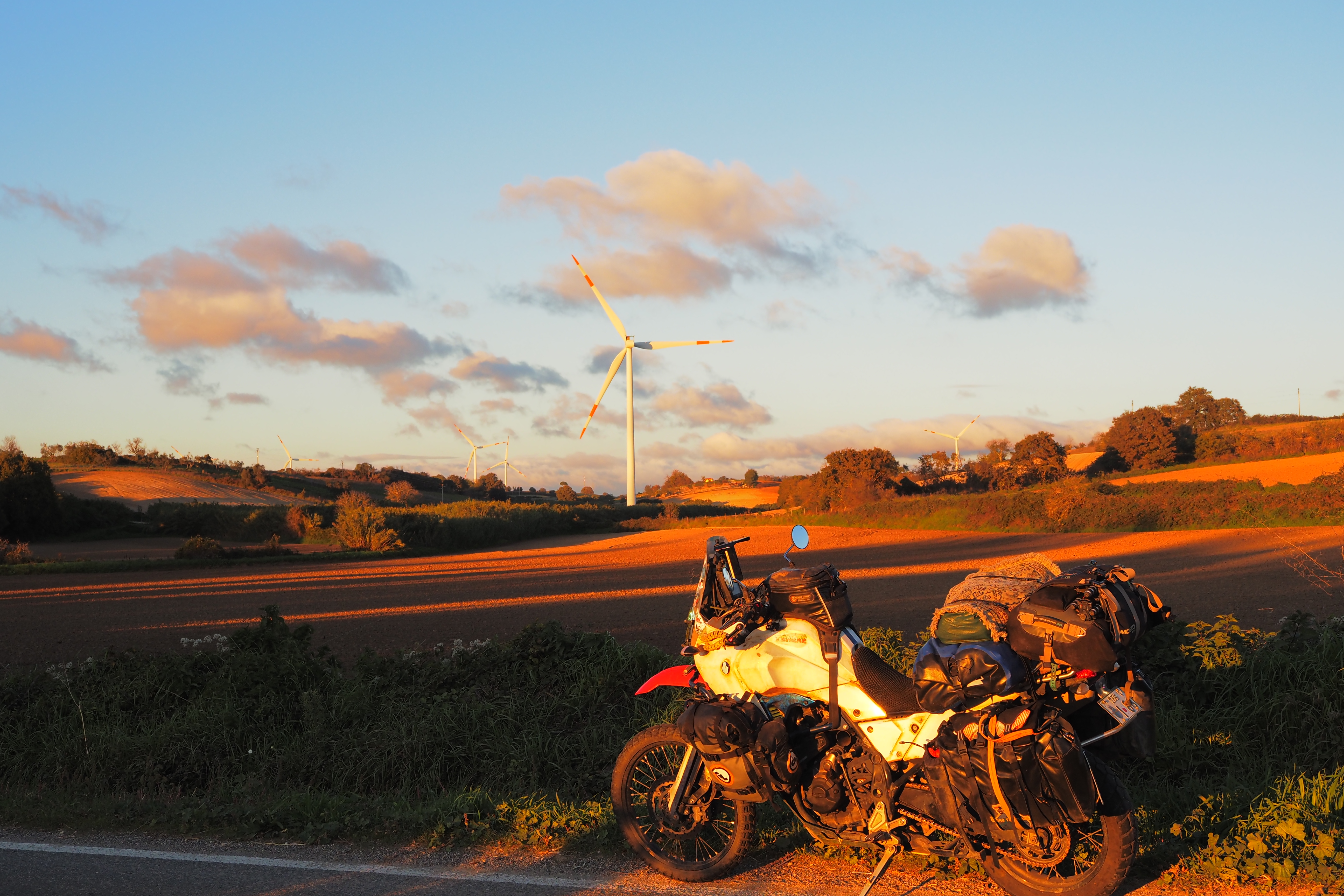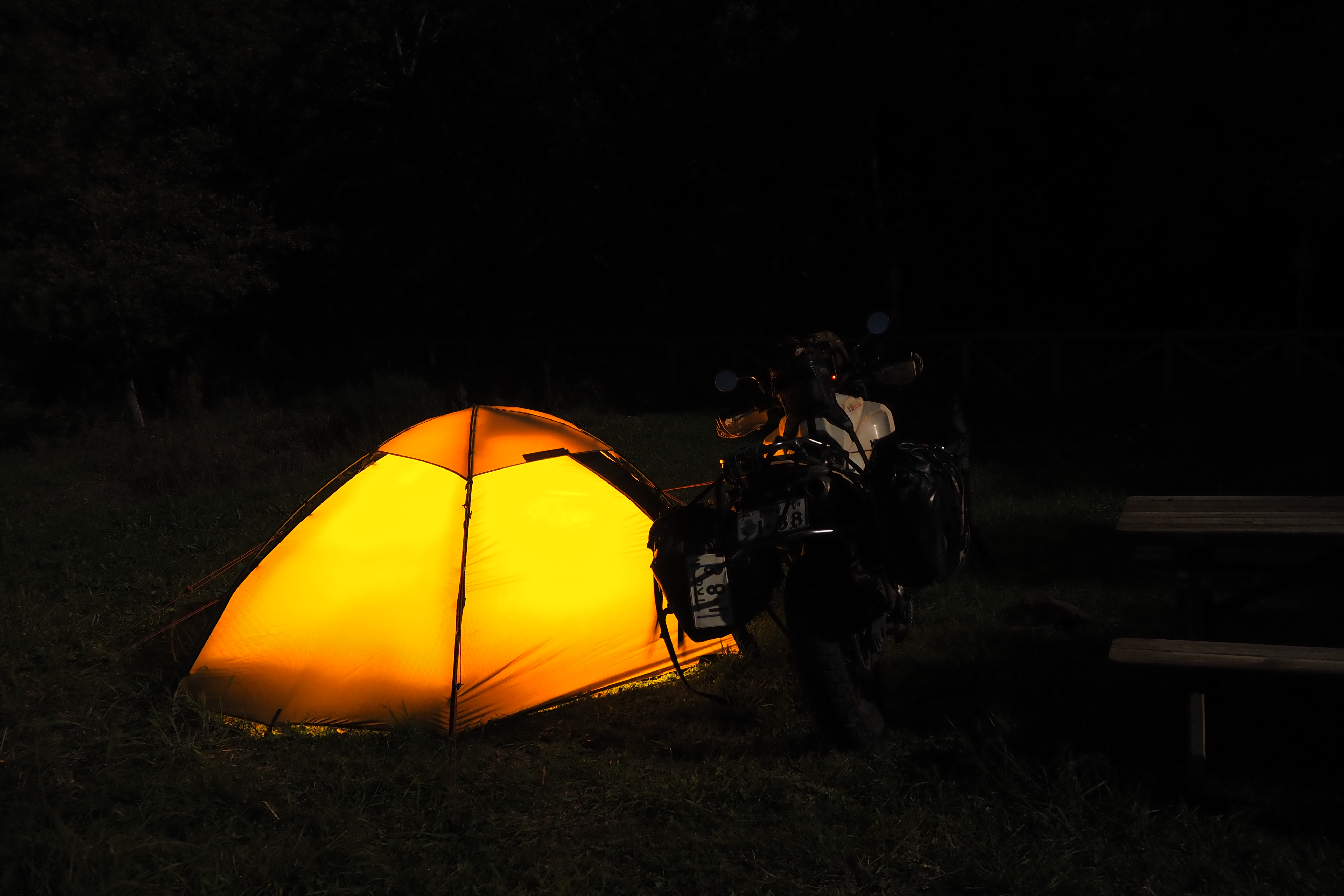 イタリアとはいえ、だんだん北にあがってきたからバジリカータ州とかに比べると そこらへんですぐ野営地を見つけるのはけっこう難しい。暗闇の中彷徨うことしばし、なんとか大丈夫そうな場所をみつけてテントを設営。