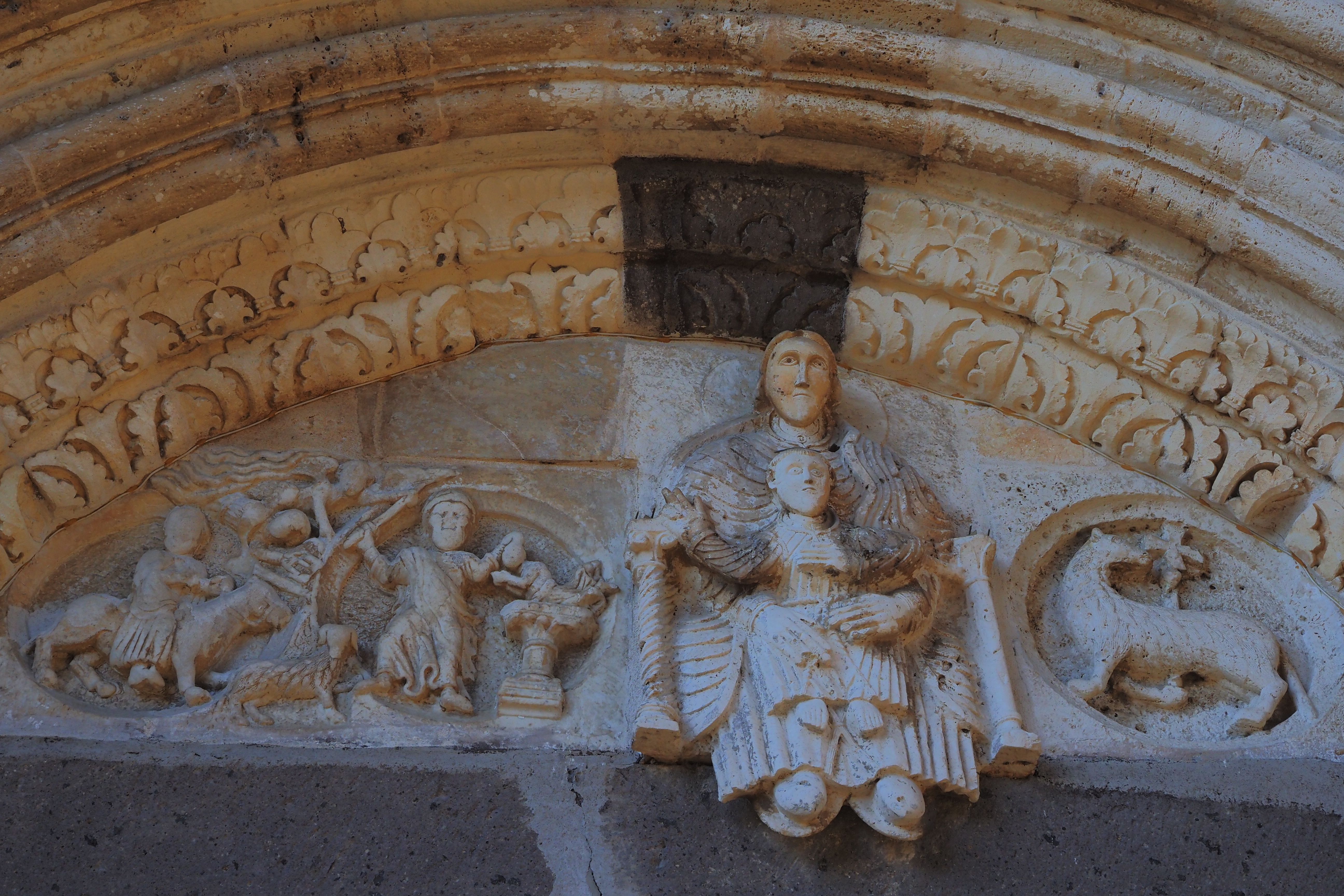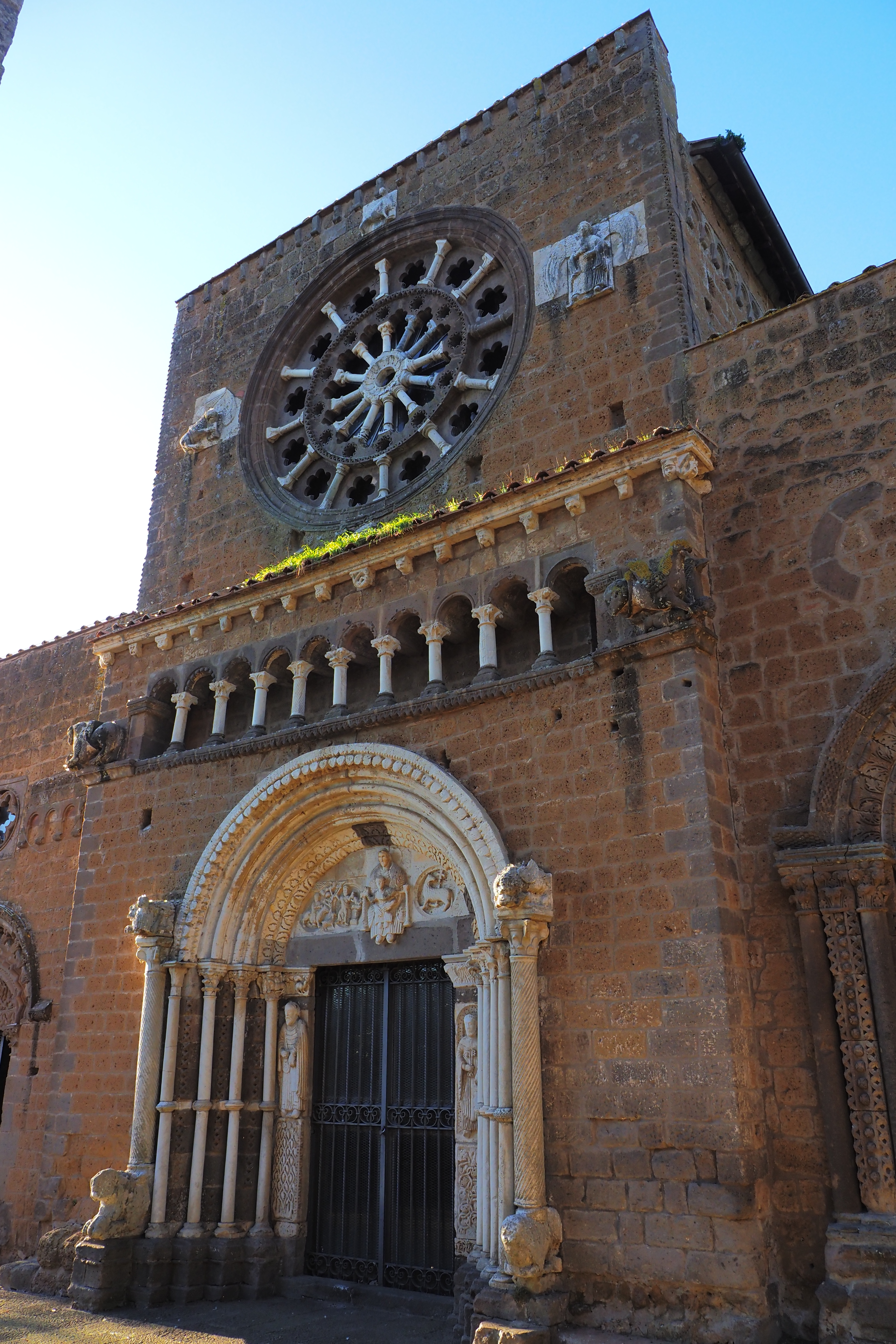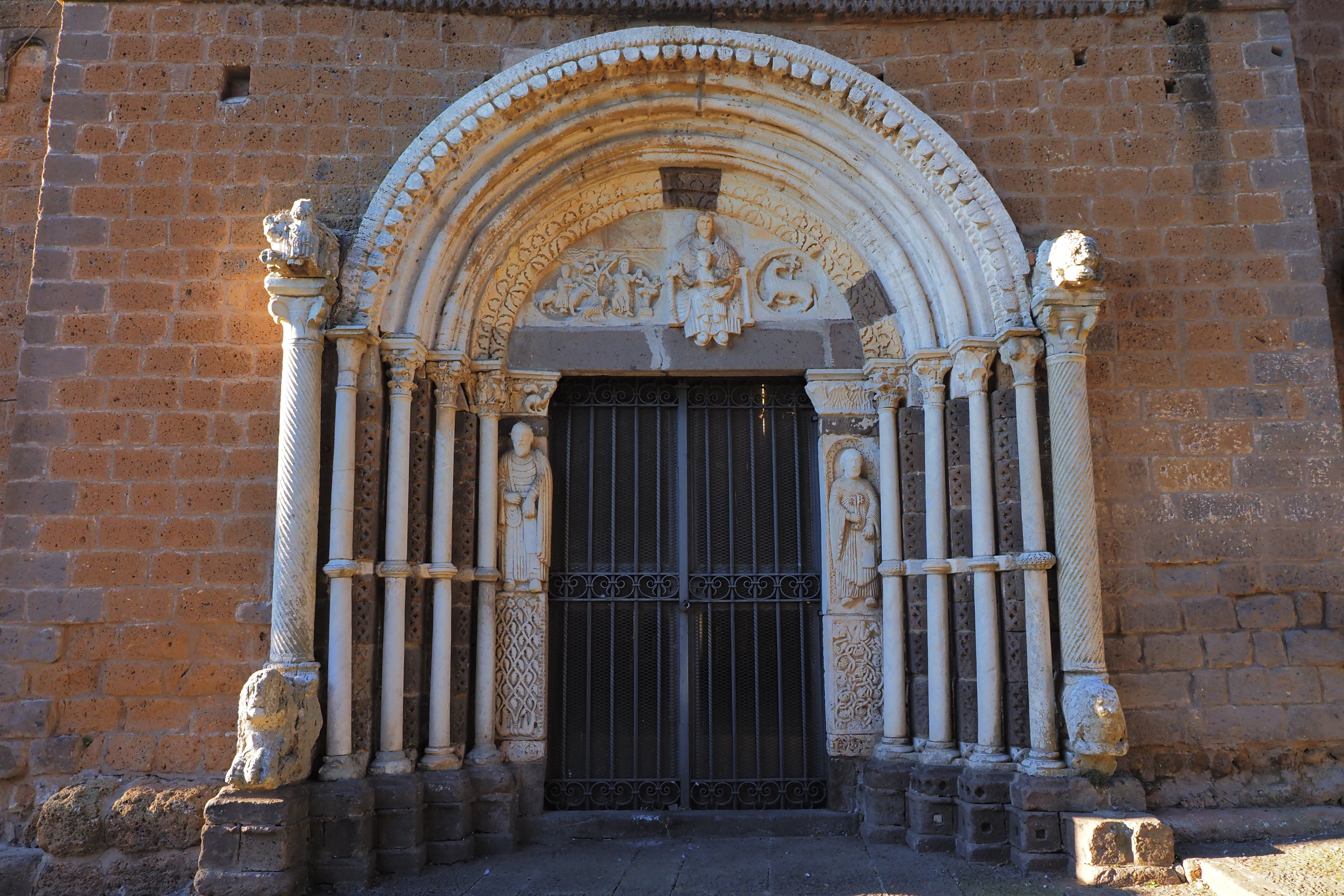 門はライオン(?)を柱頭にした2本の柱の間に、更に4重になった小さな列柱とそれにつづくアーチ、さらに最内部は使徒ペテロとパウロの彫像が支えている。