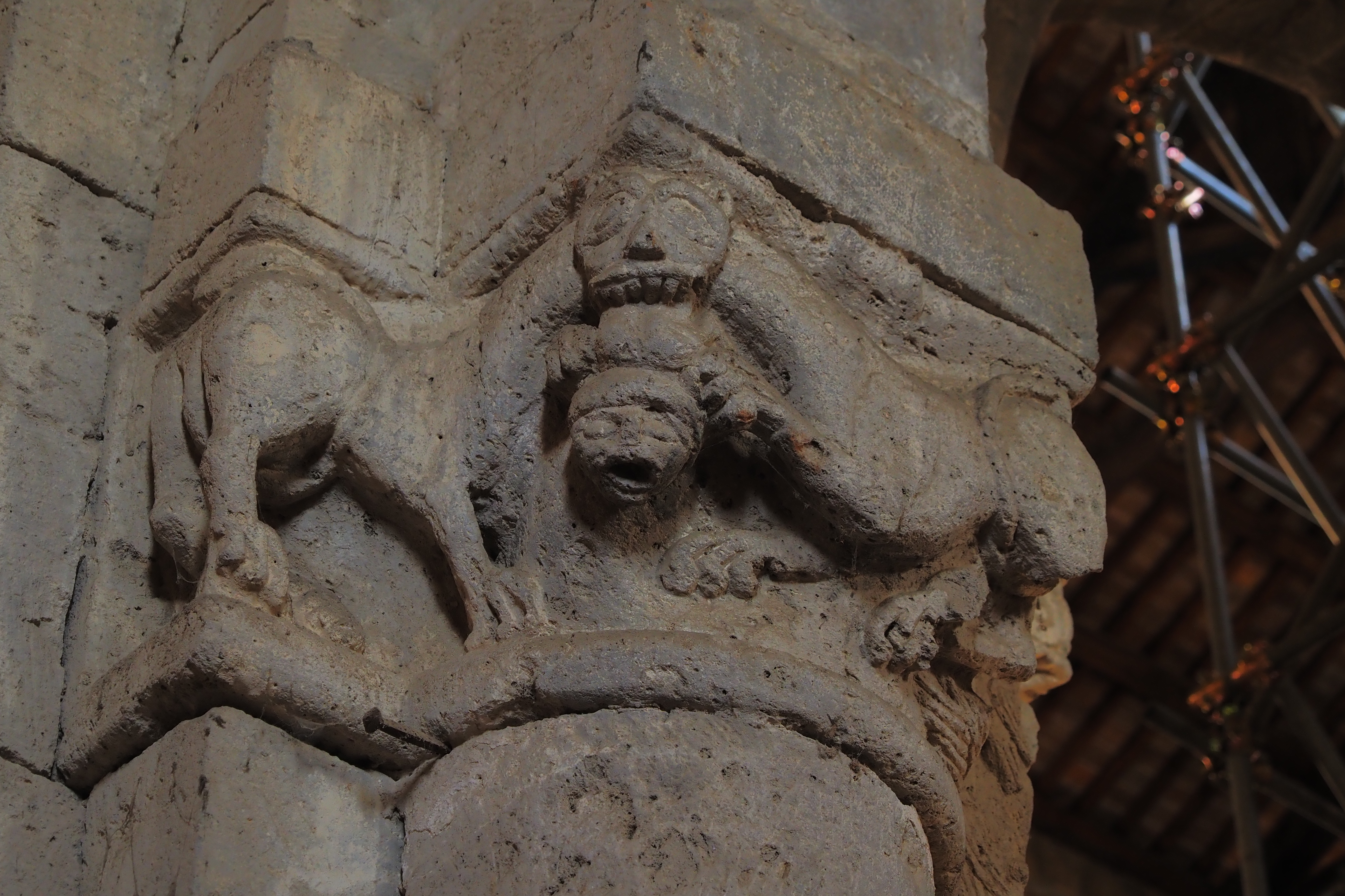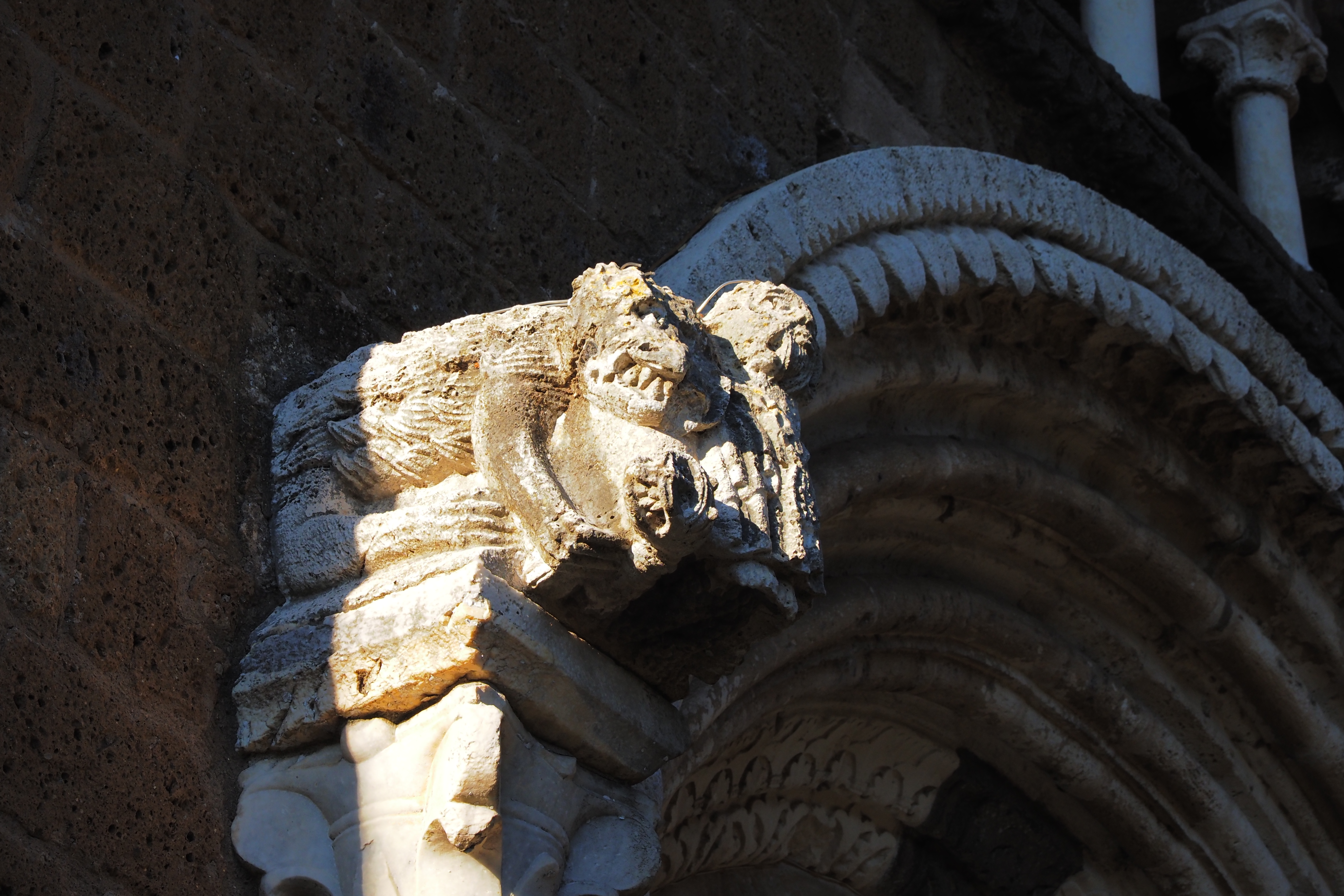 門脇の柱頭と、ロッジア横のグリフィン像。