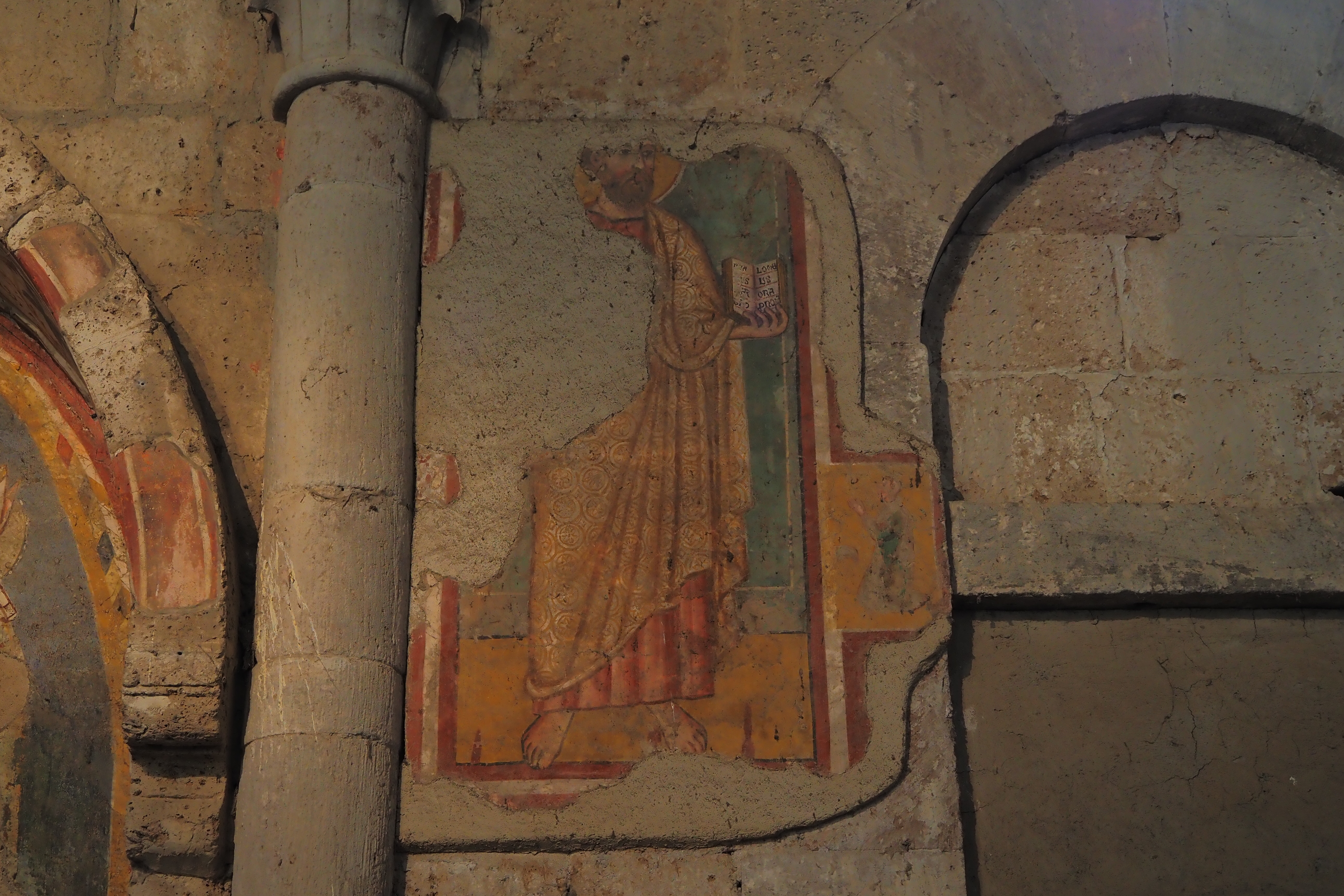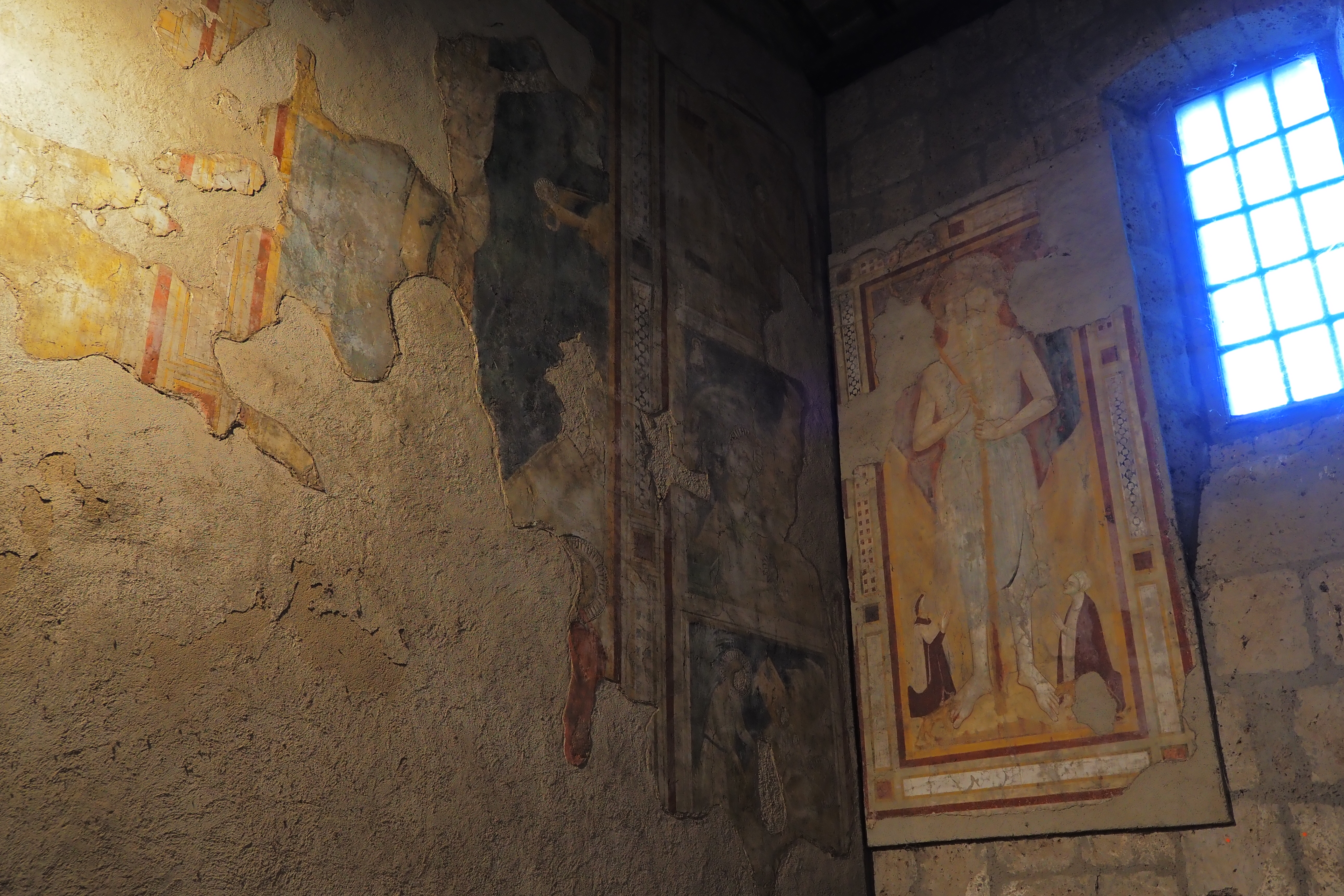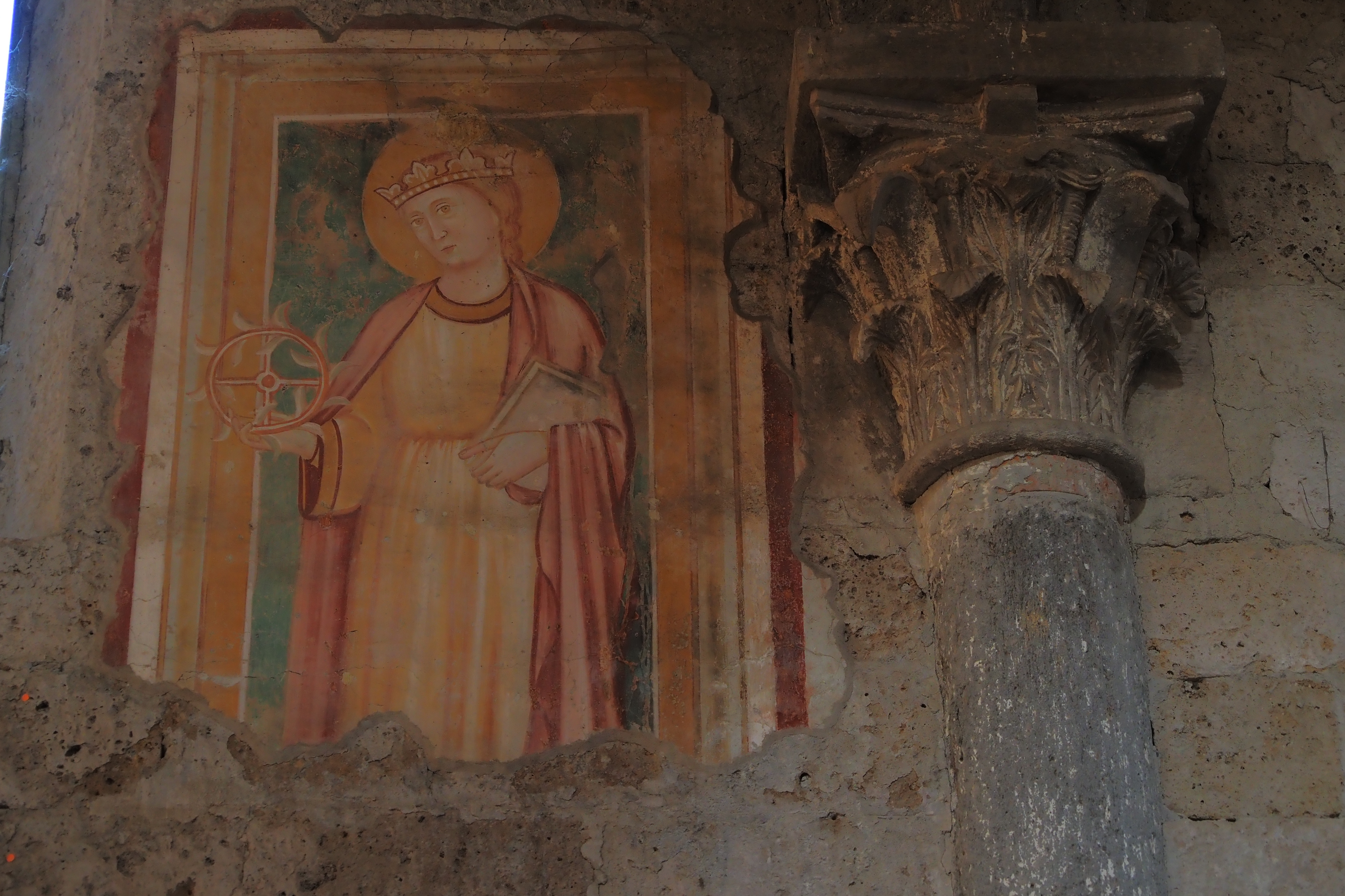 この教会のみどころは、内壁のいたるところに現存する 13~15世紀頃に描かれたフレスコ画だ。