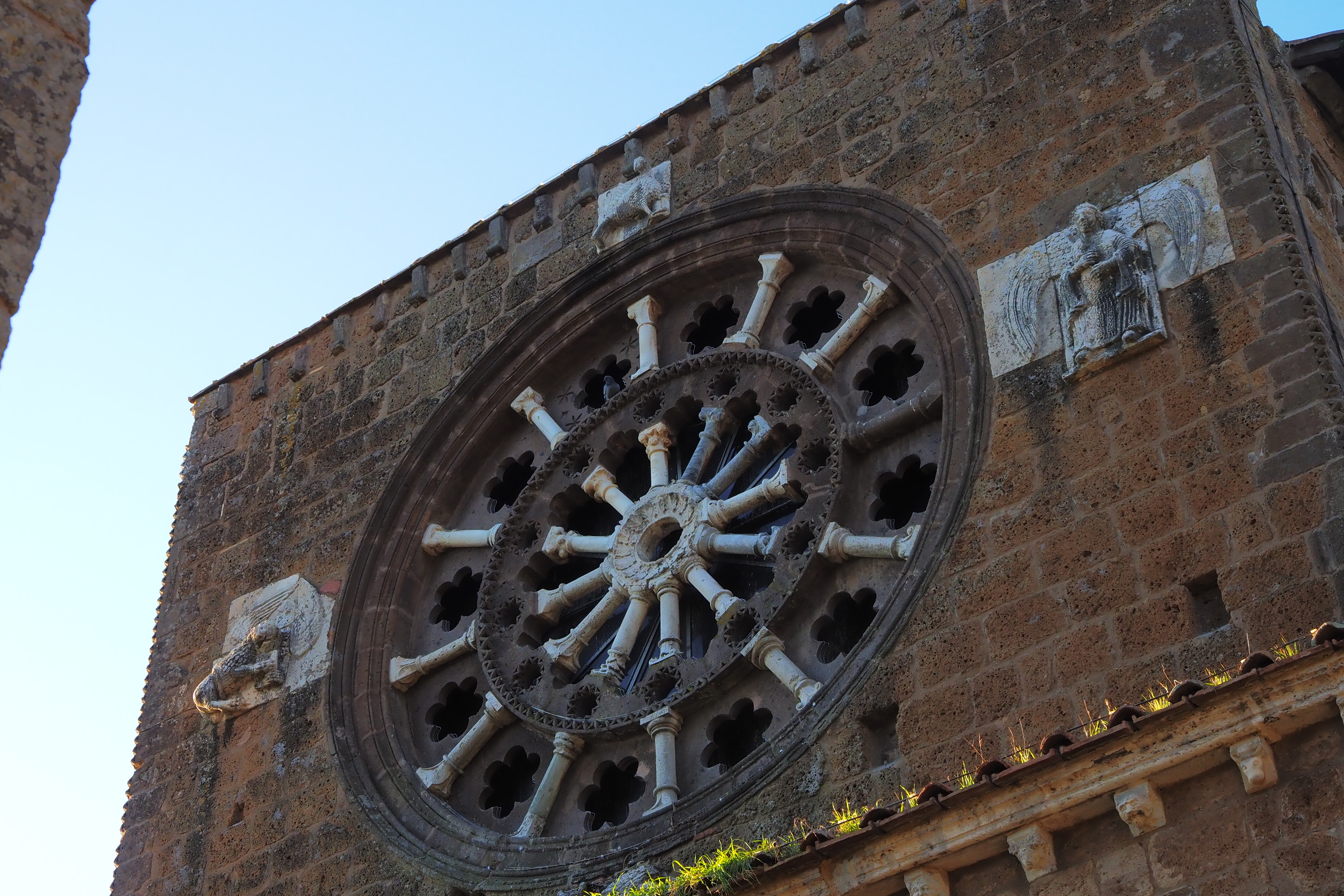巨大なバラ窓が特徴的なファサードは 質素な印象だけど、ところどころの装飾が非常におもしろい。