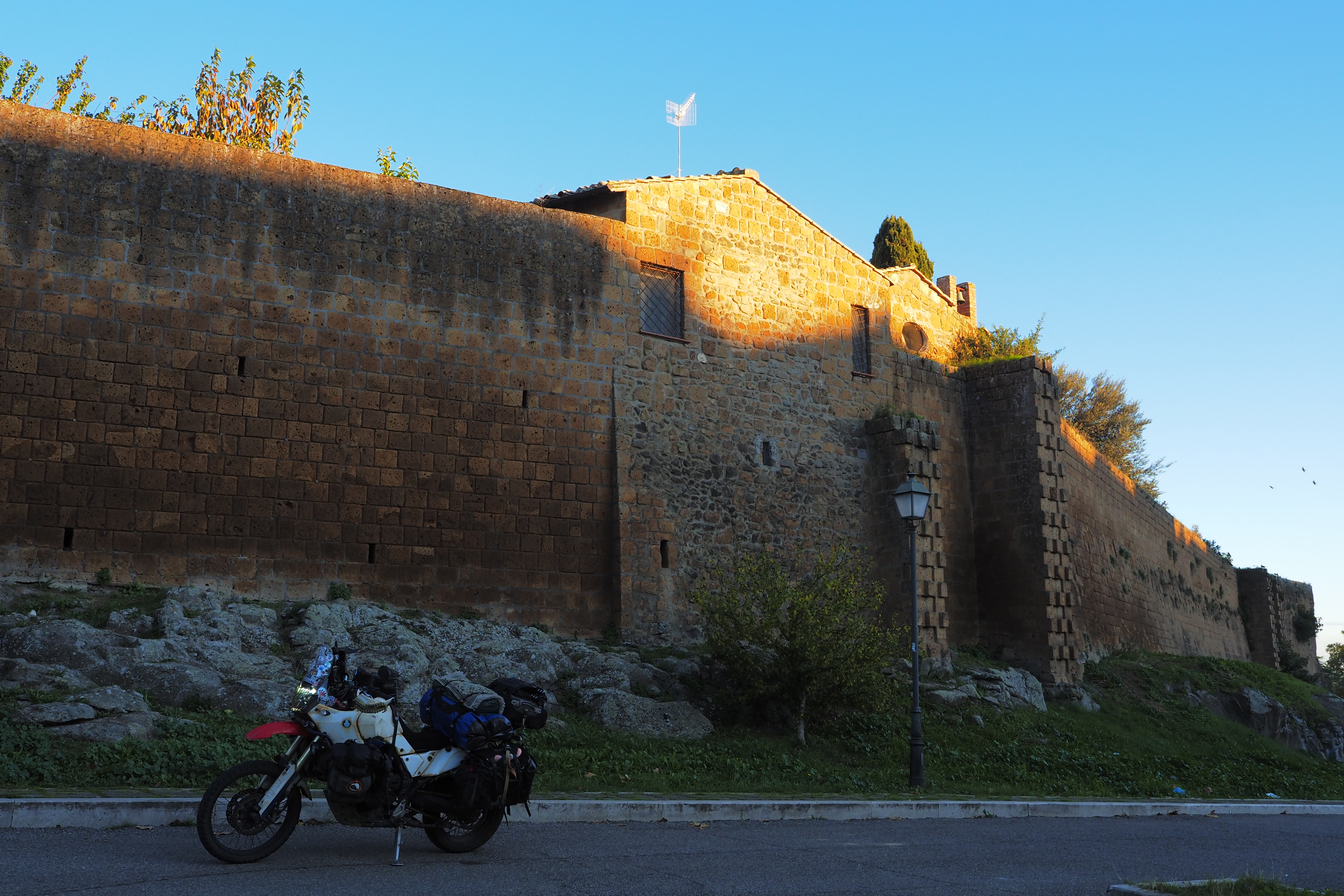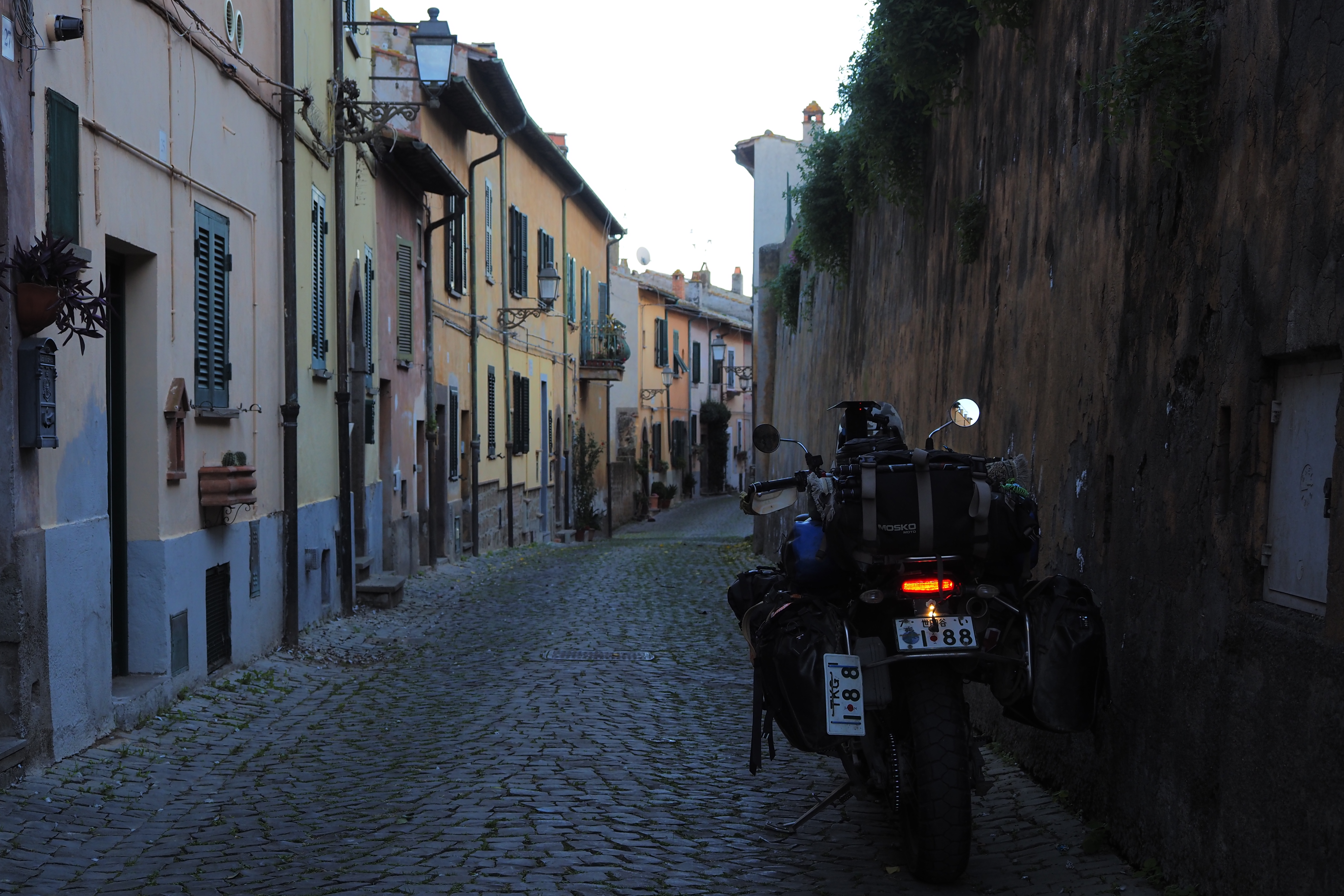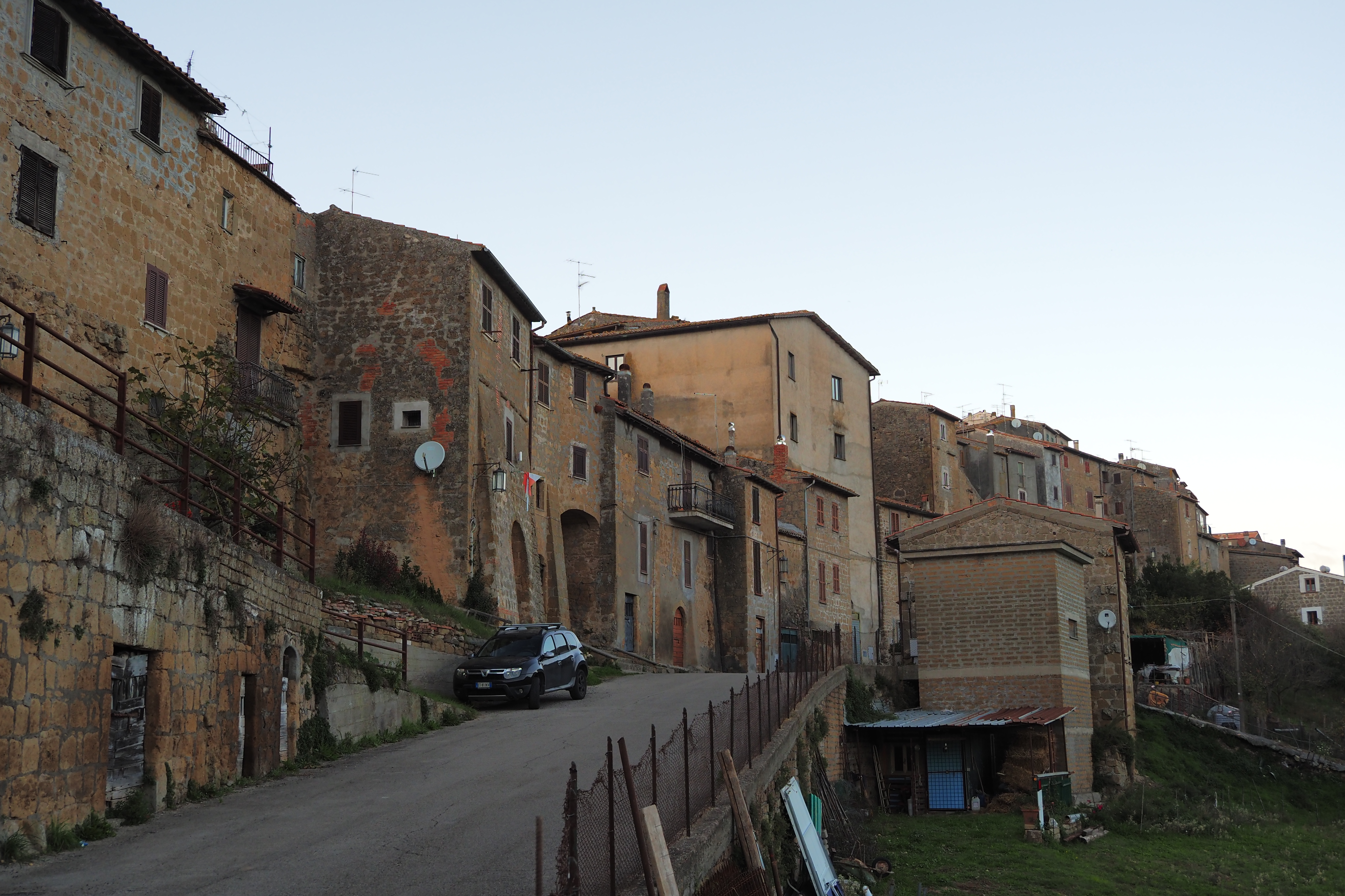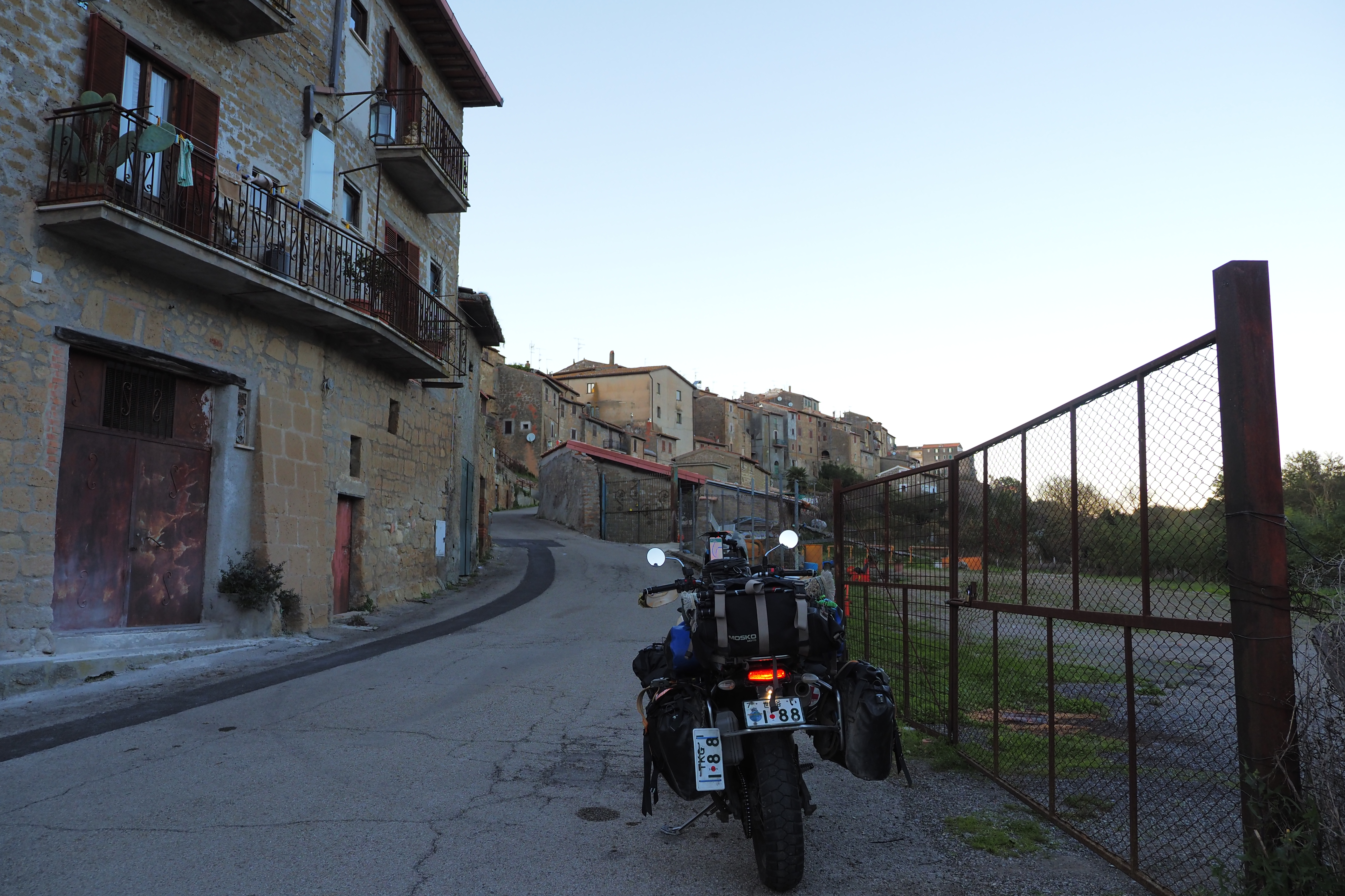 日が暮れそうなこの時間帯と、トゥスカーニアの味わい深いやれた壁面が相まって最高にいい雰囲気じゃないか。