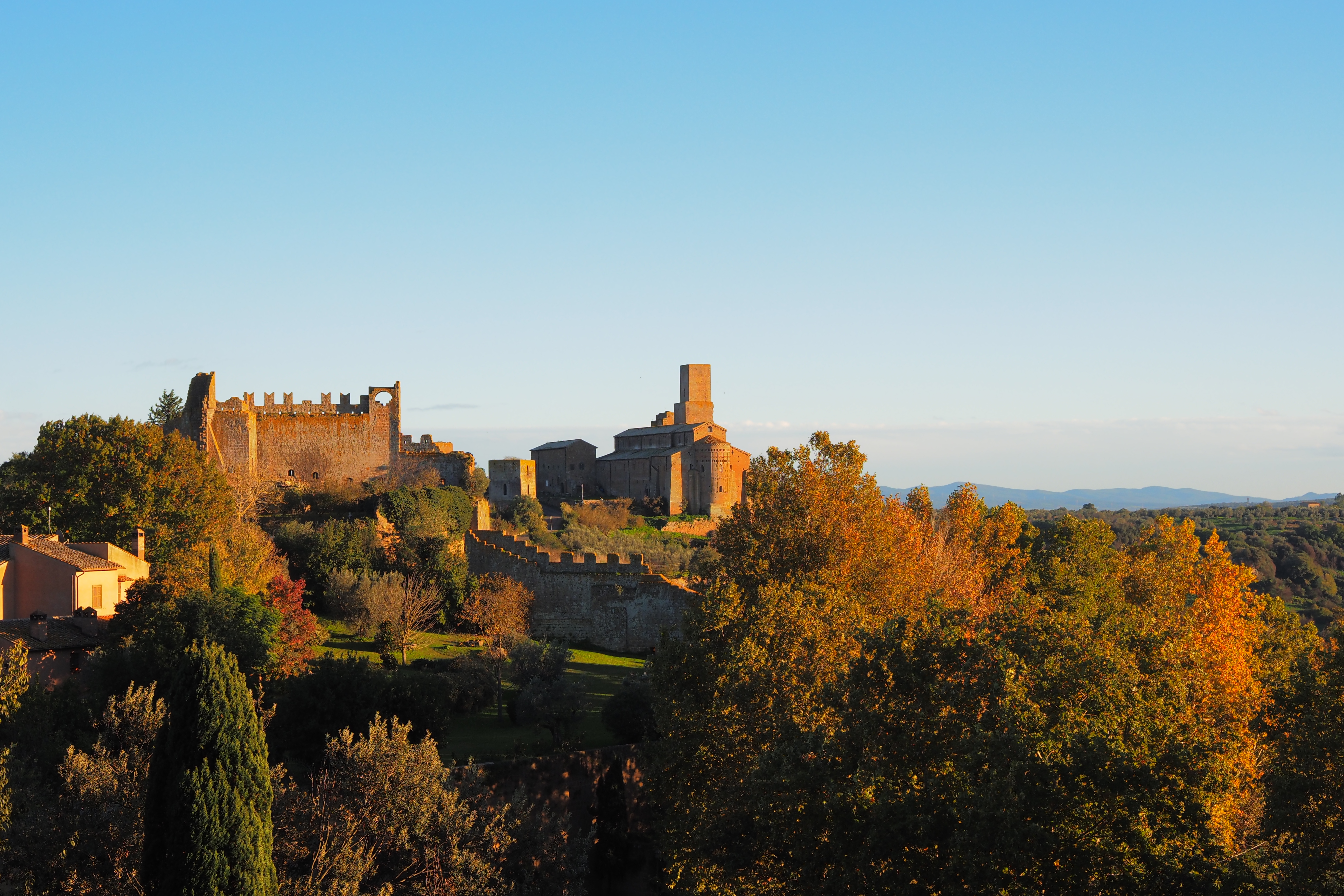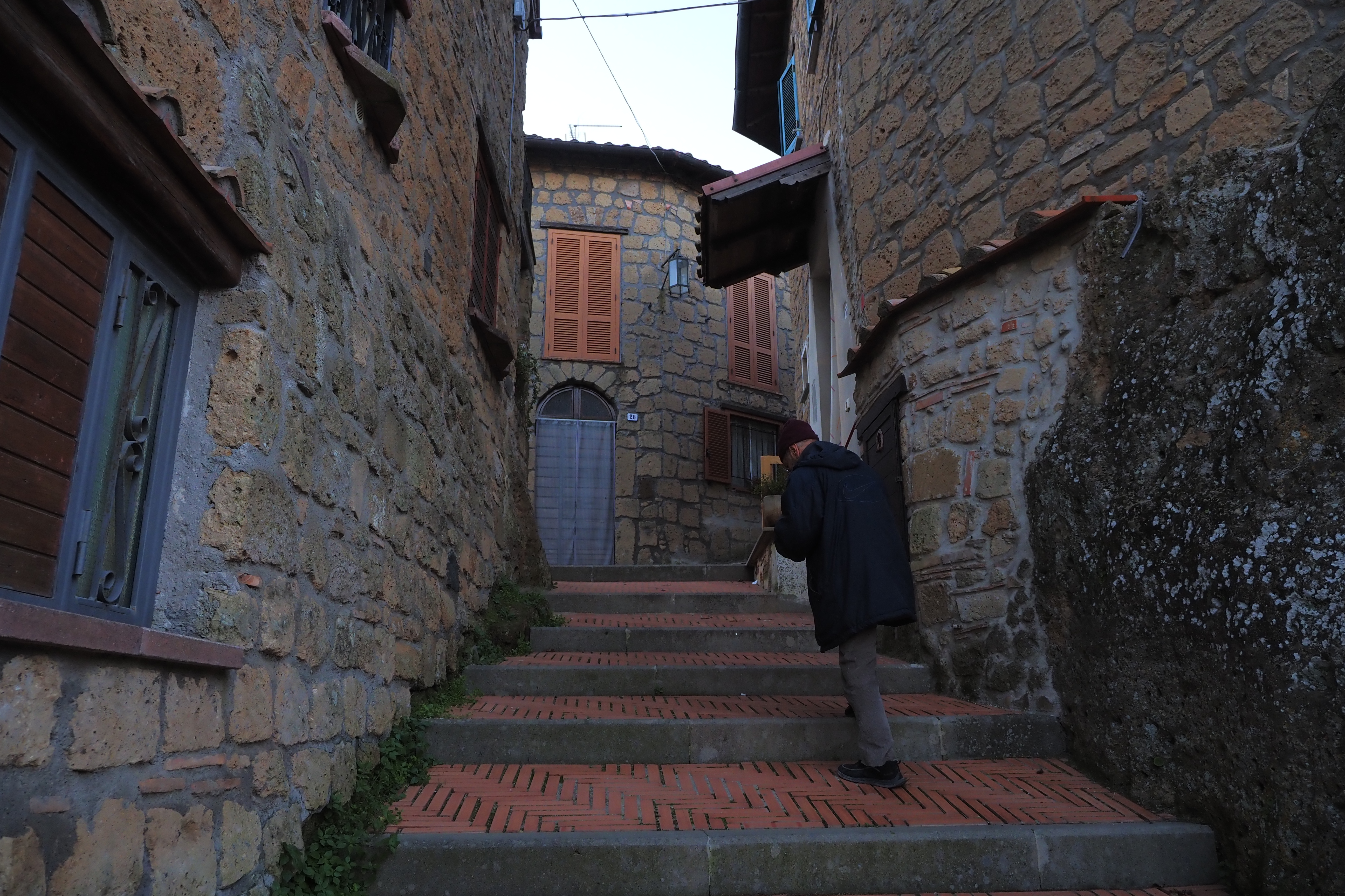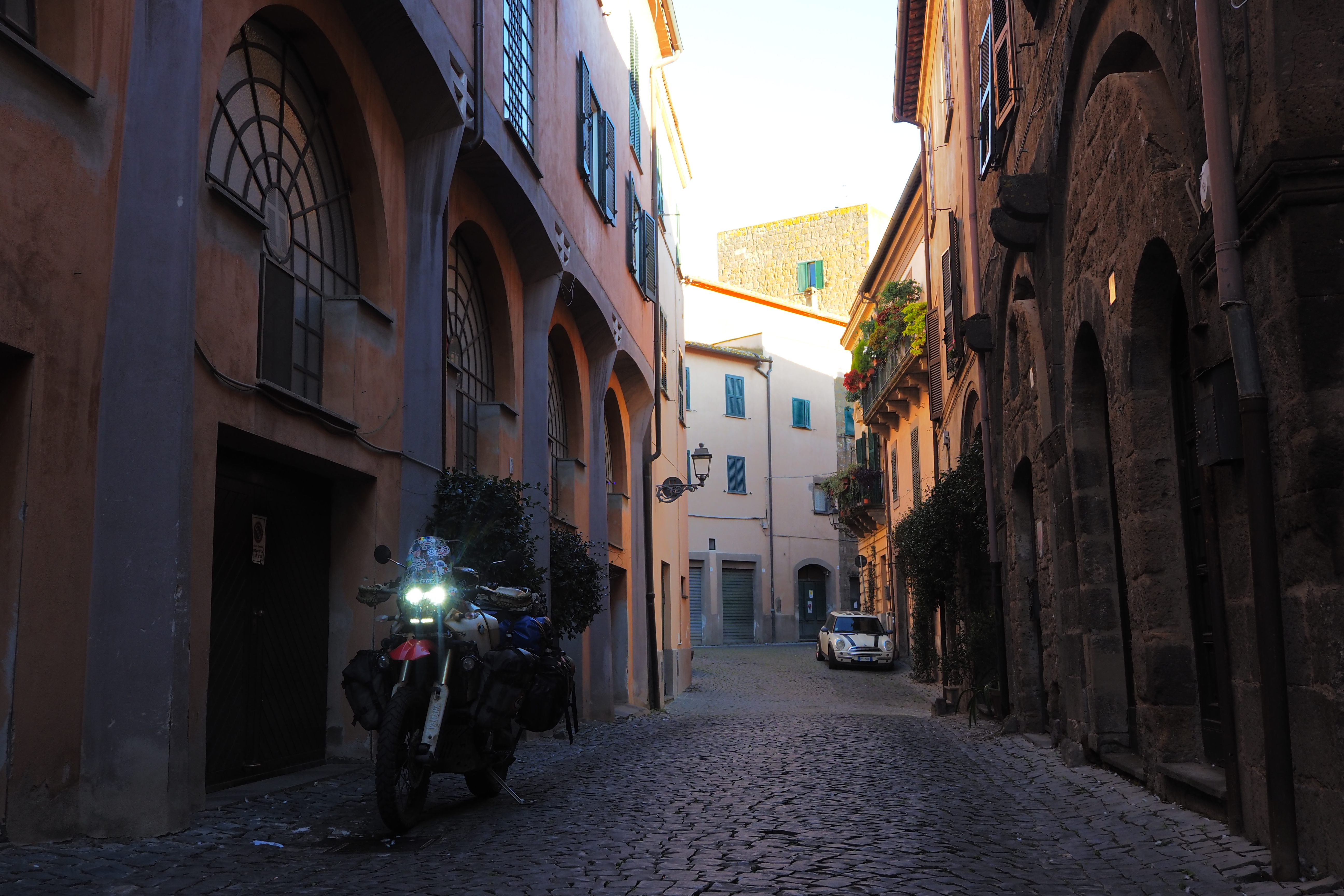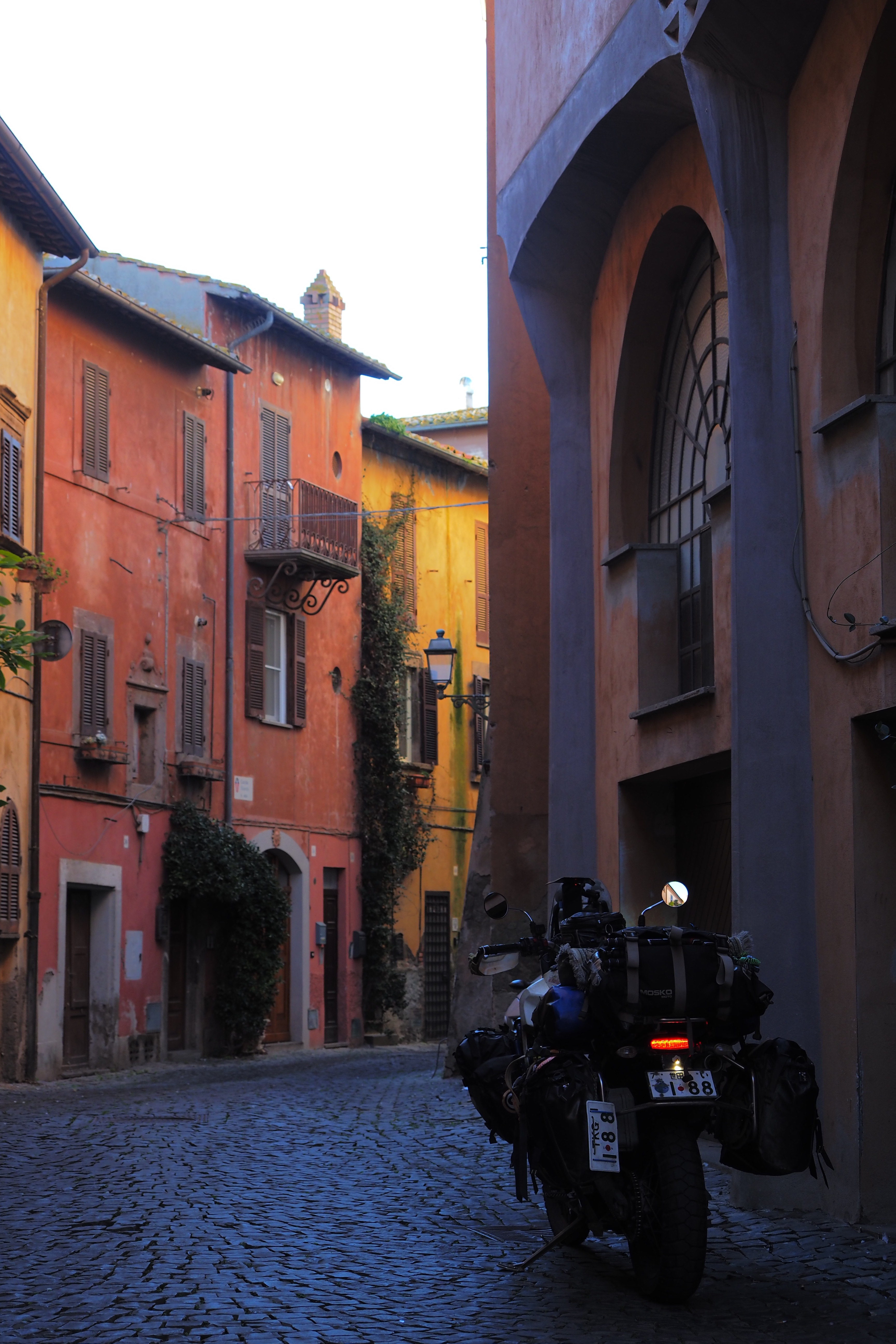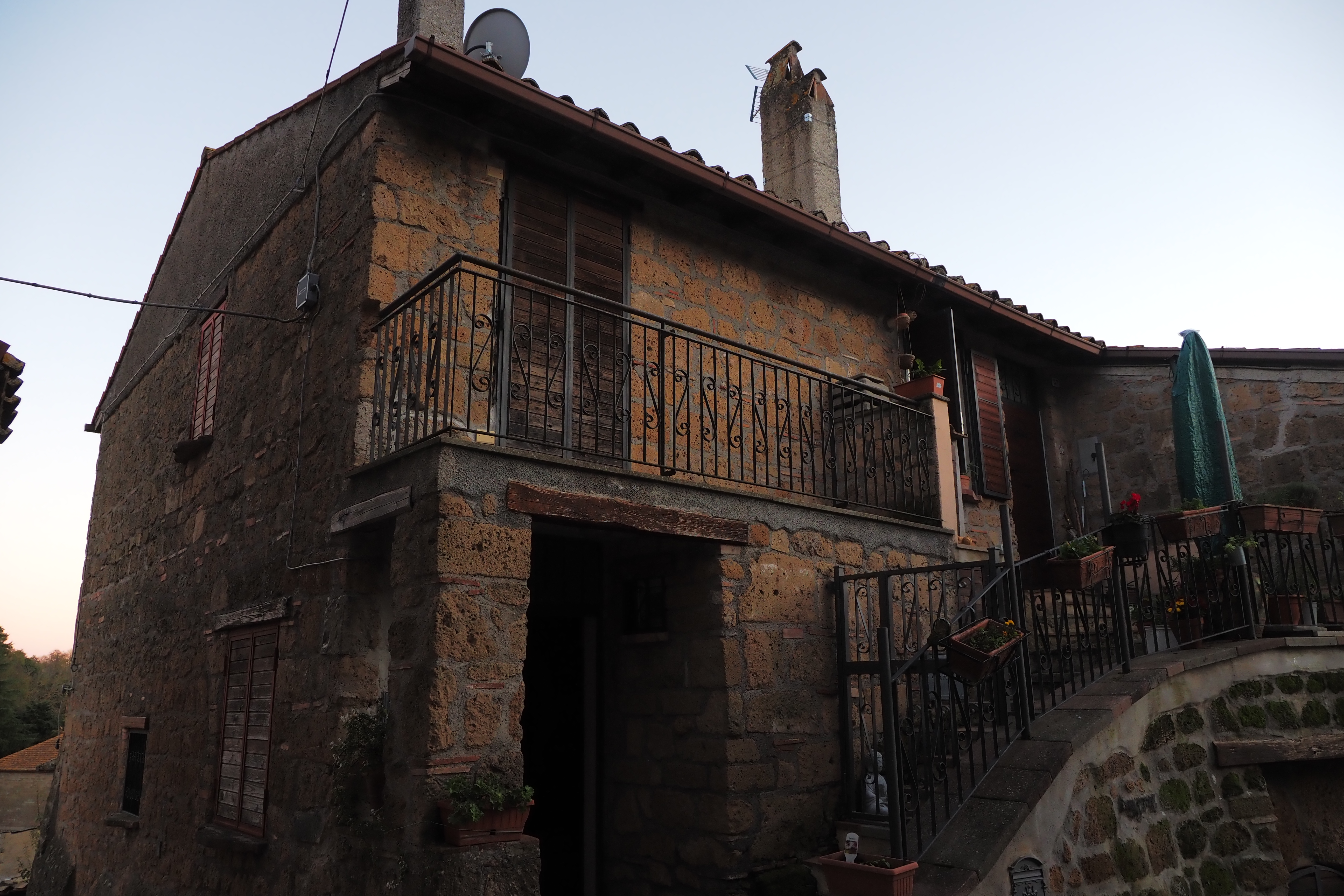 日が暮れそうなこの時間帯と、トゥスカーニアの味わい深いやれた壁面が相まって最高にいい雰囲気じゃないか。